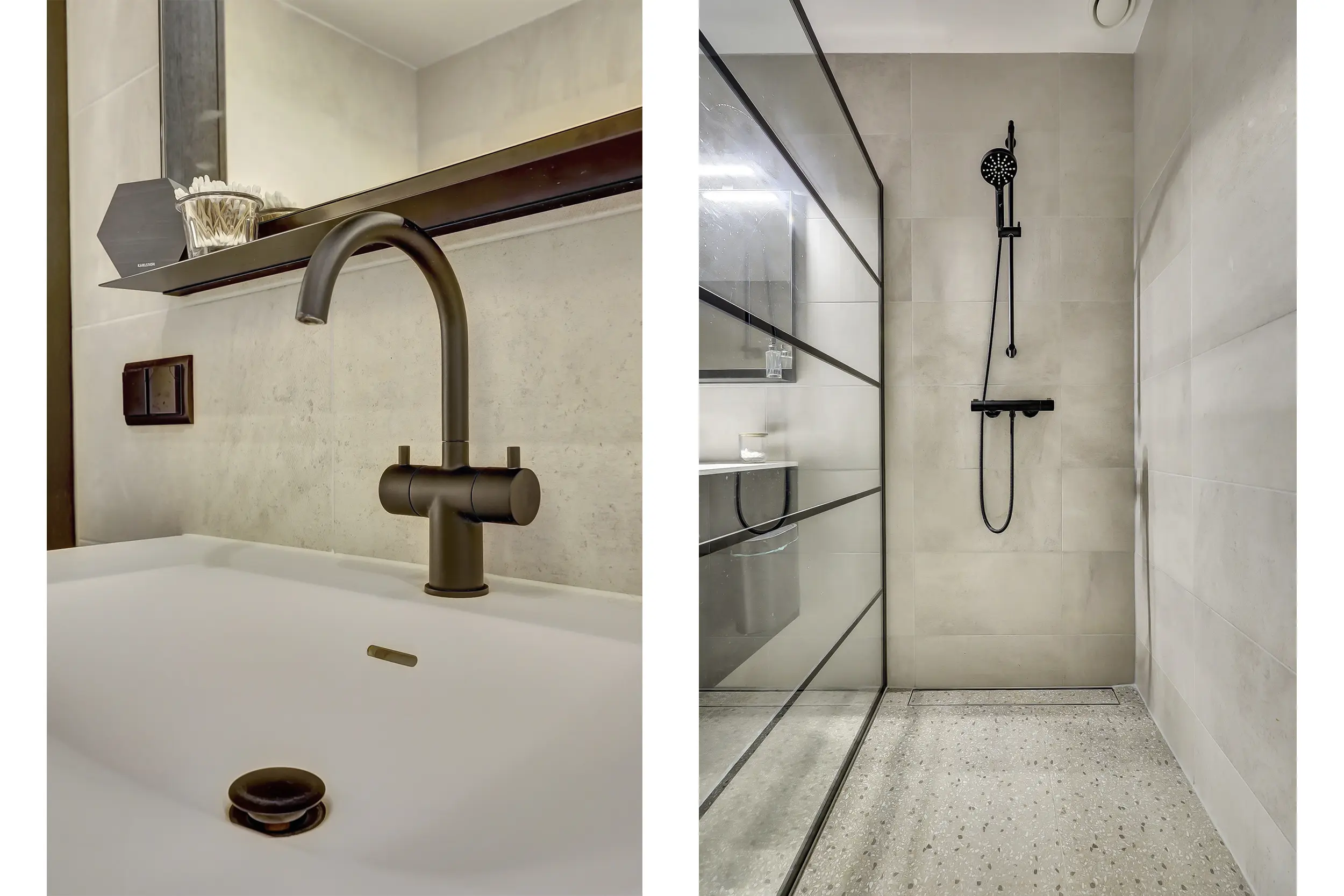 Hal met toegang tot vernieuwd toilet. De in 2023 vernieuwde badkamer is voorzien van een inlooppdouche en modern wastafelmeubel.