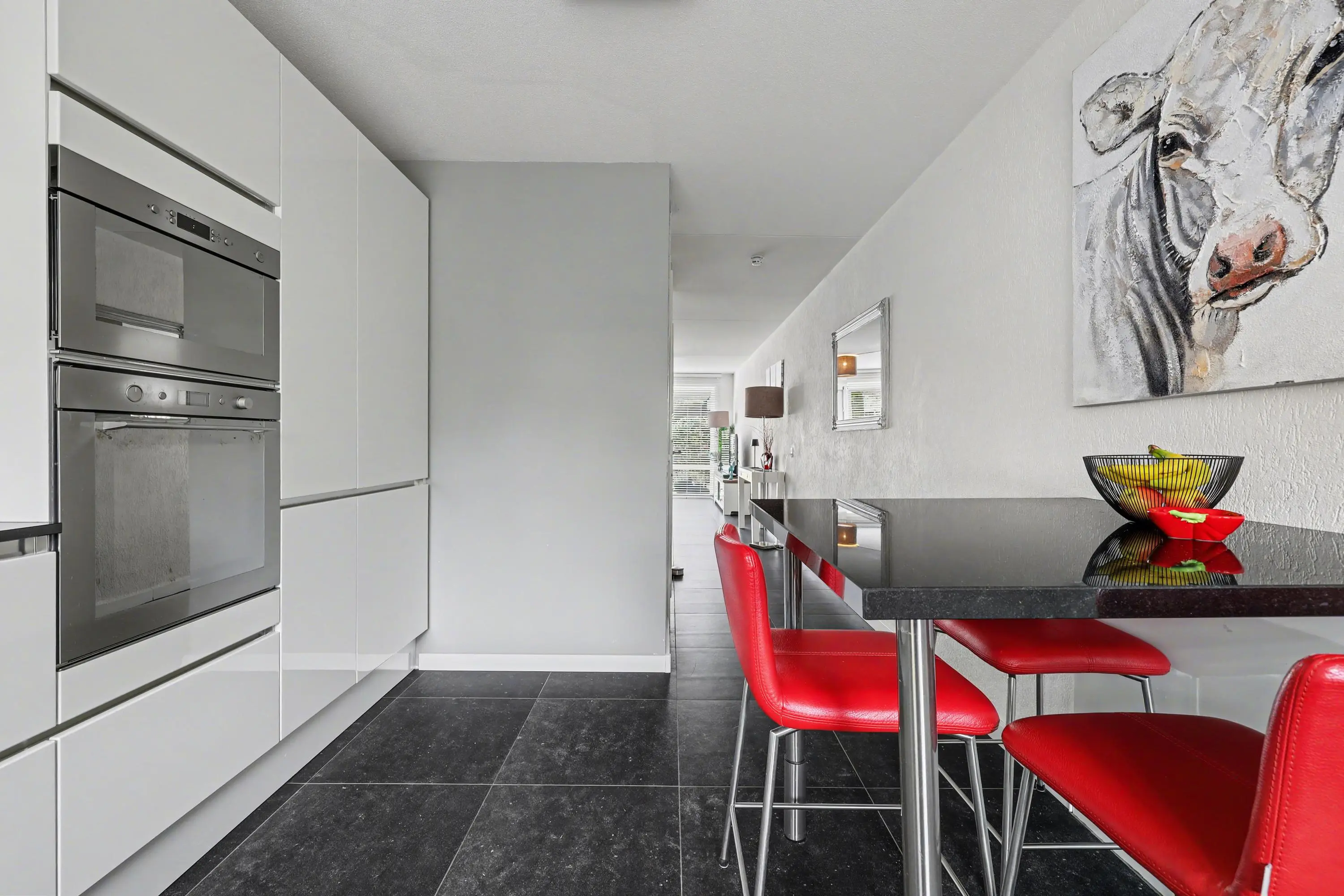 Zowel de woonkamer en keuken zijn voorzien van van een fraaie vloer met vloerverwarming.