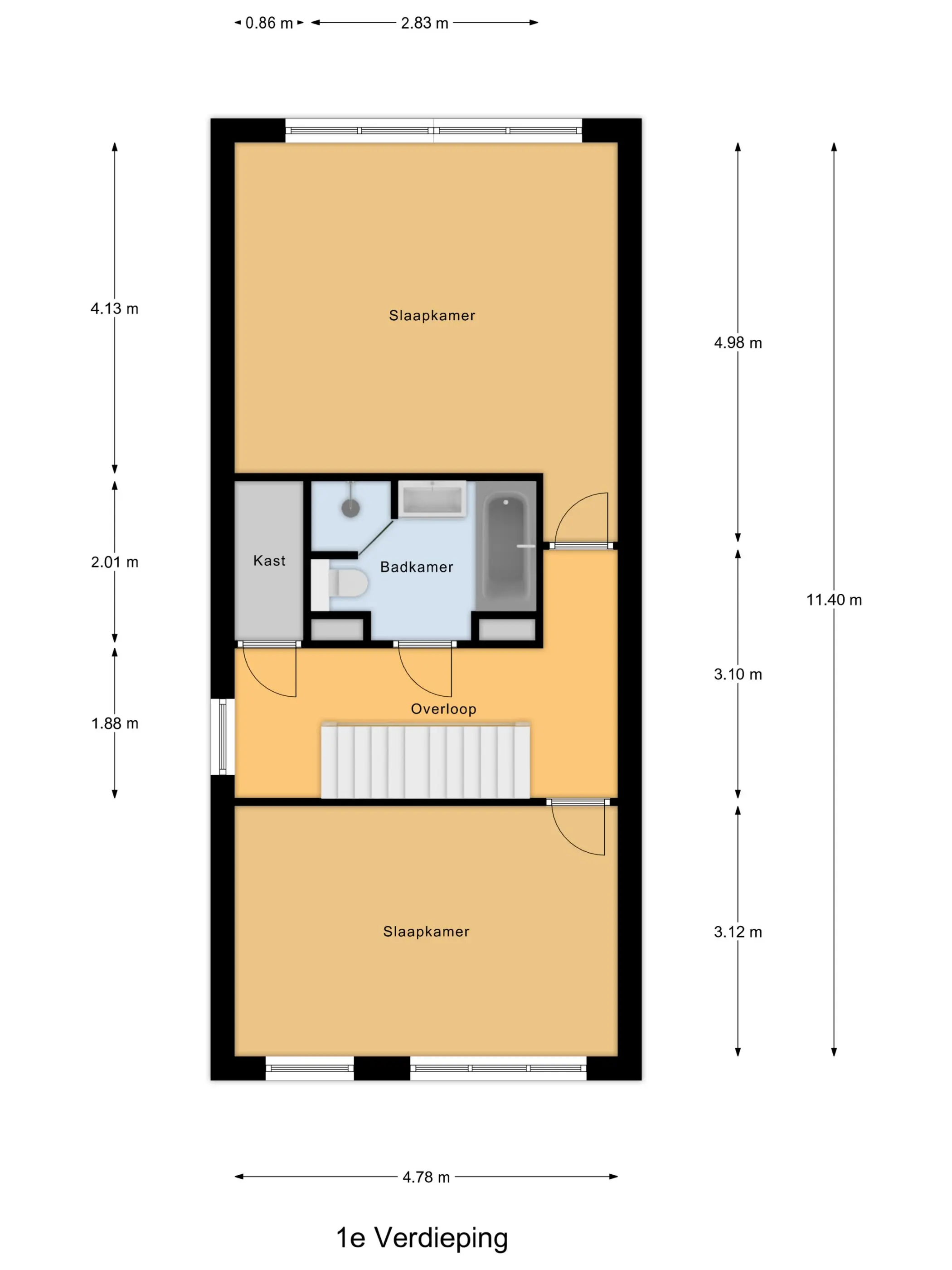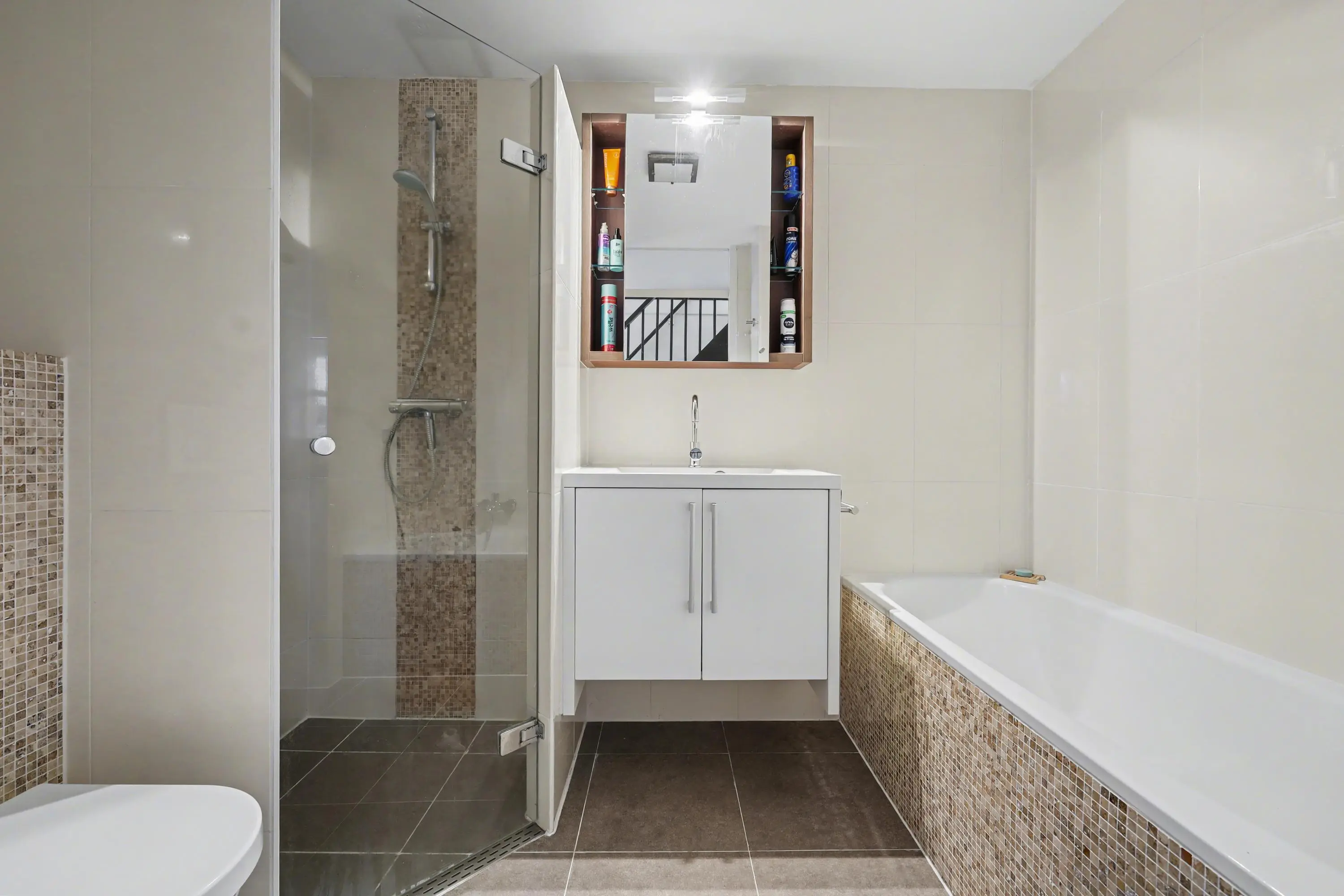Op de eerste etage vind je twee comfortabele slaapkamers en een compleet uitgeruste badkamer met ligbad, toilet, douche en wastafelmeubel.