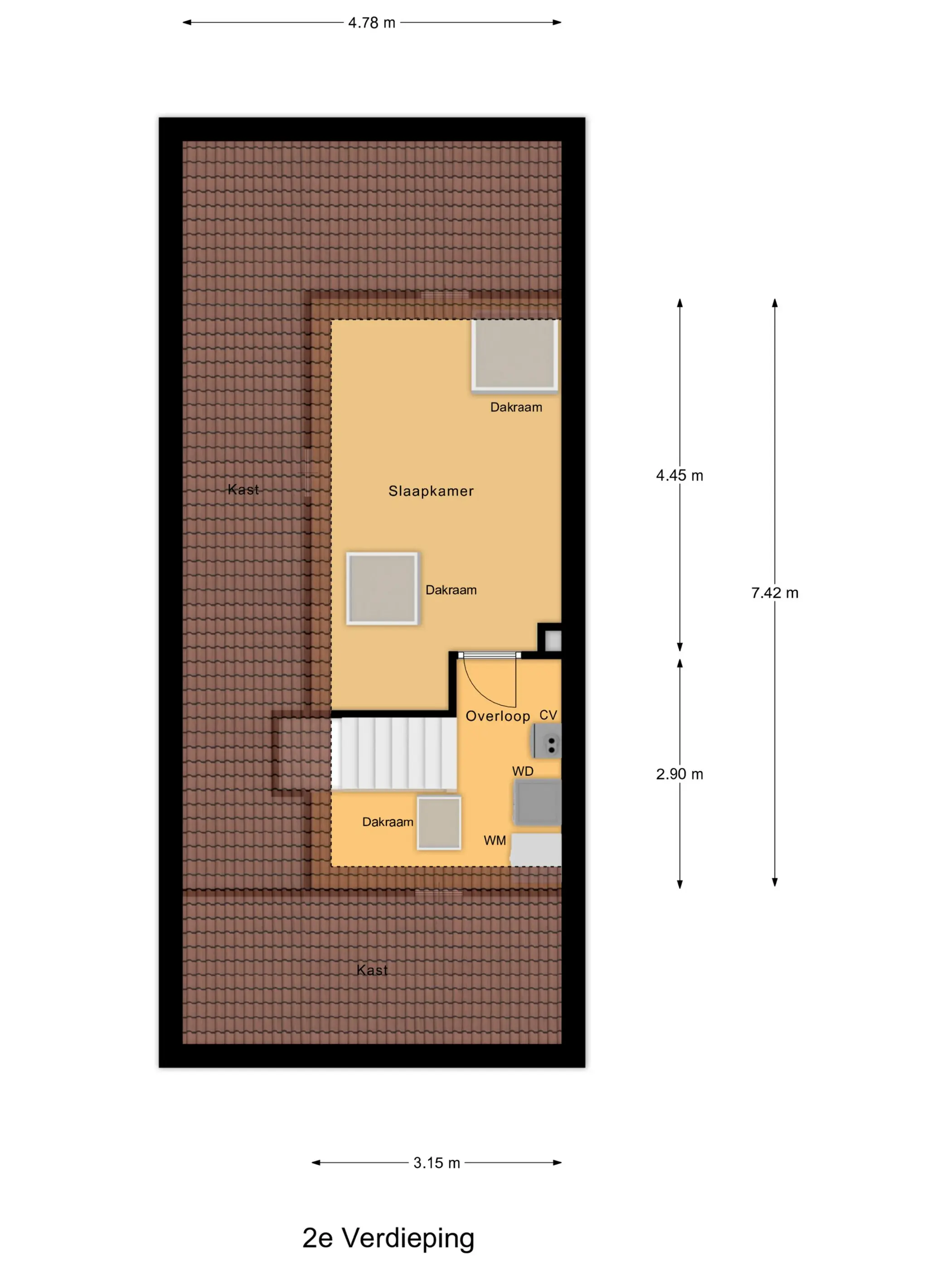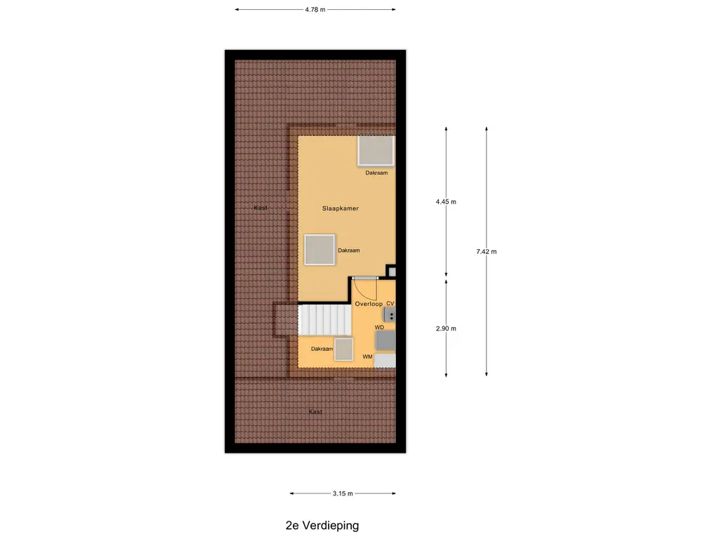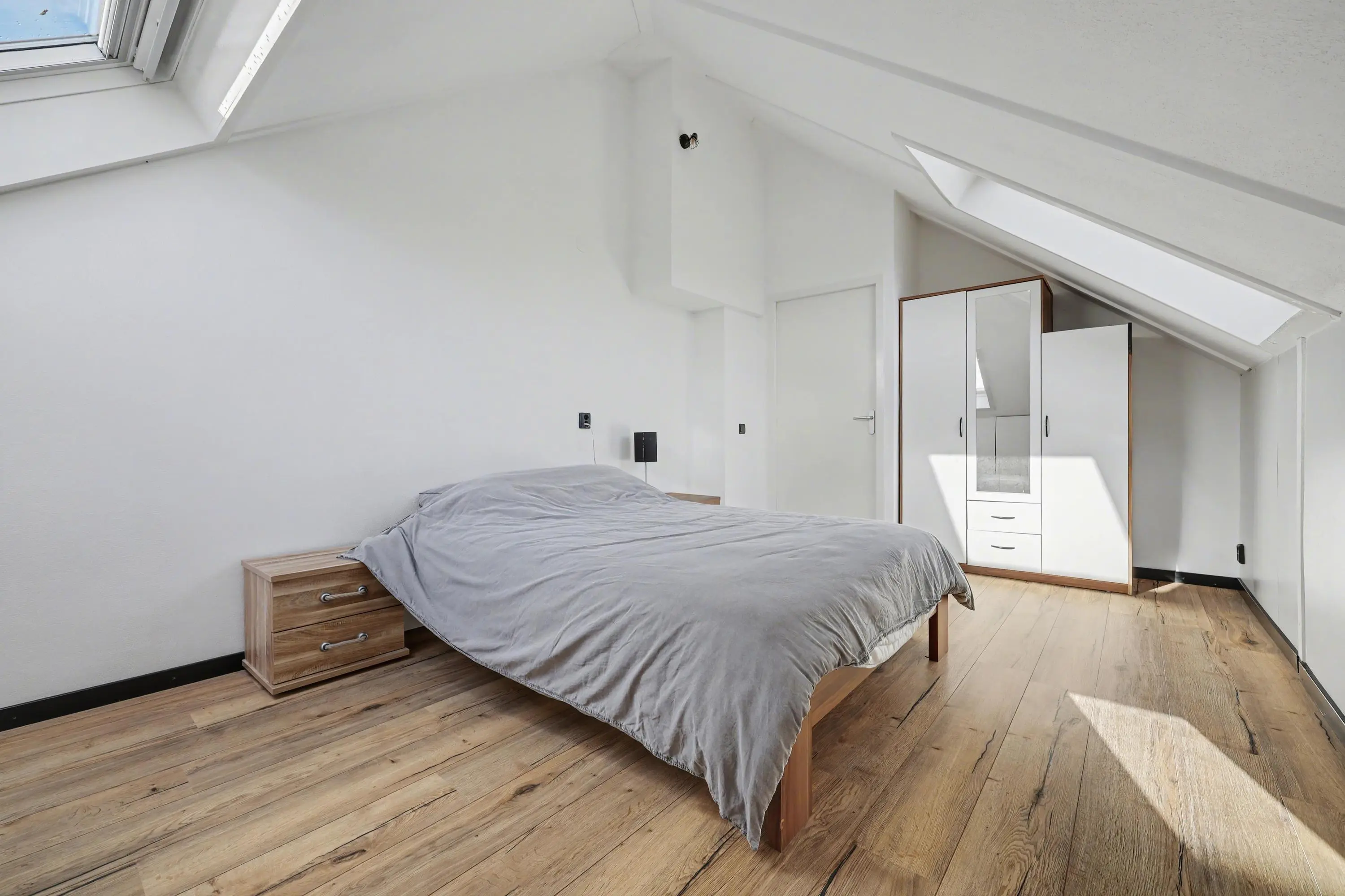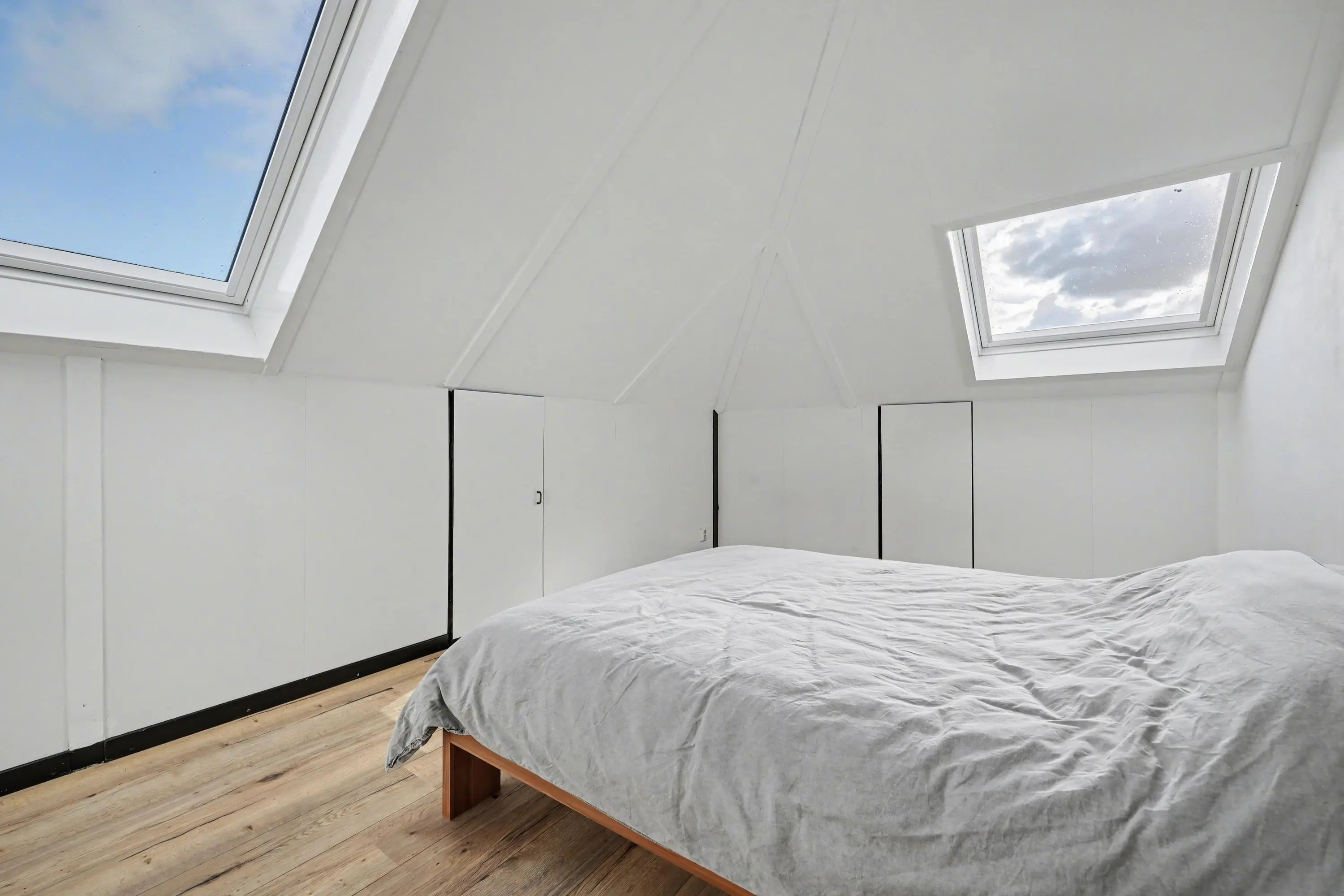 Slaapkamer met 2 dakramen en veel bergruimte in de kapkanten.