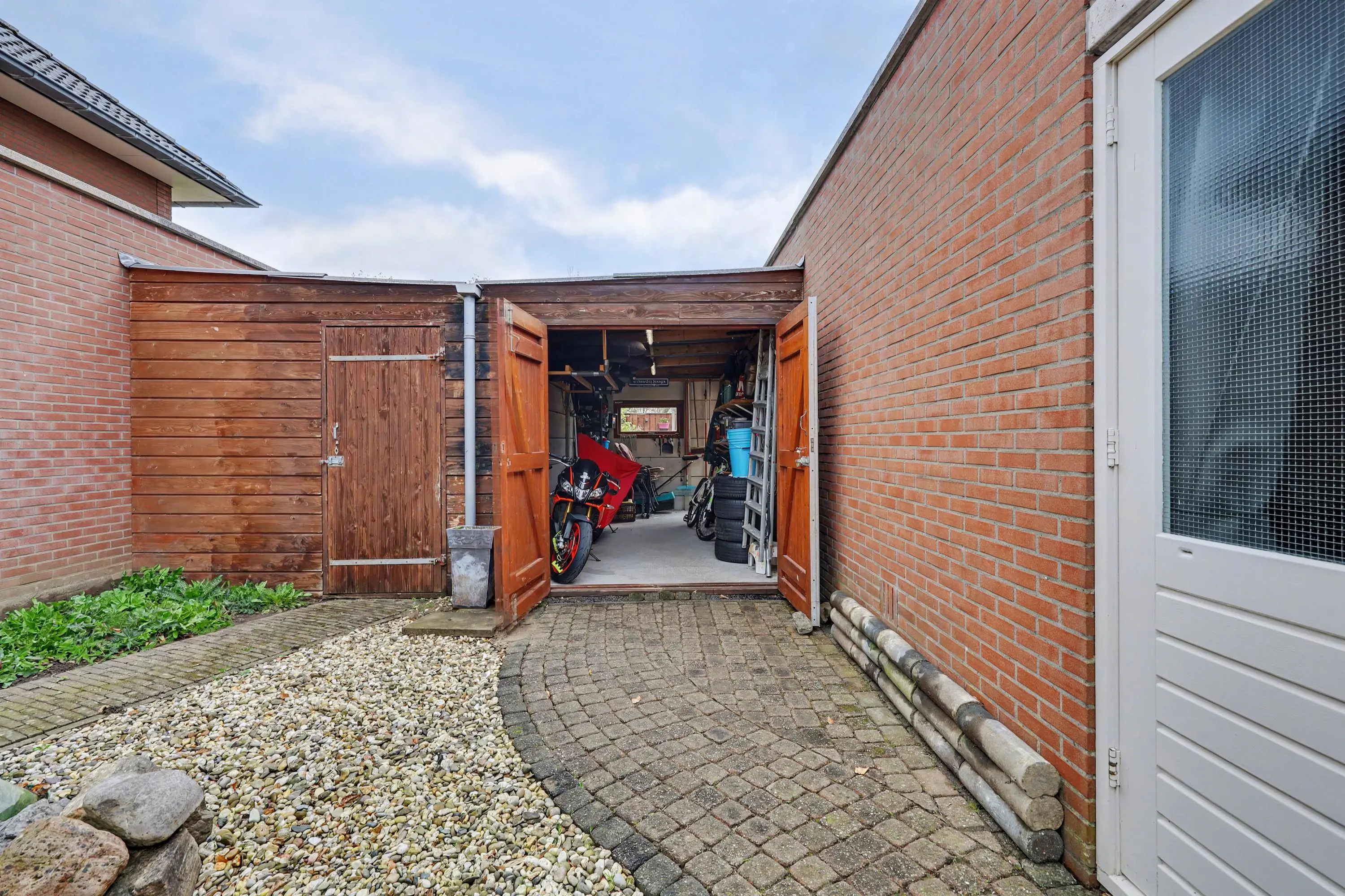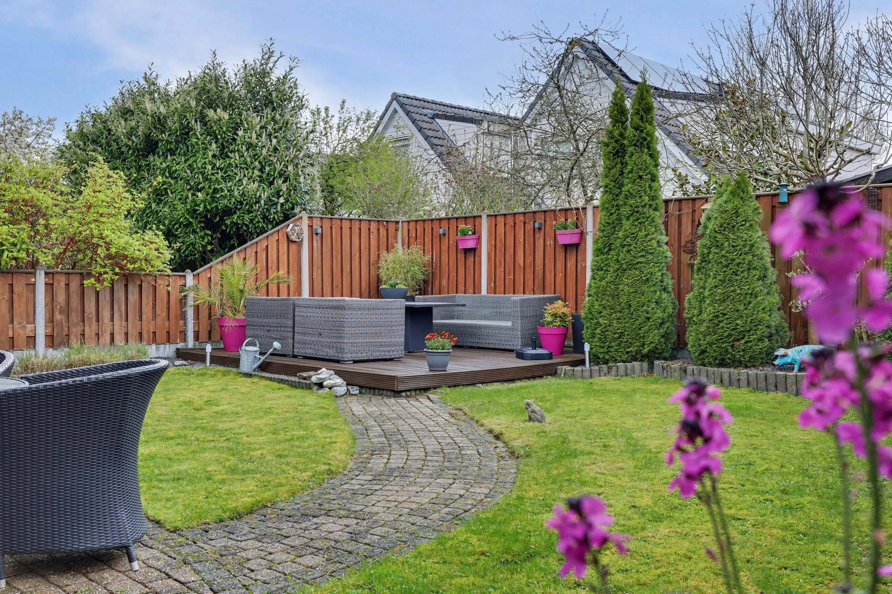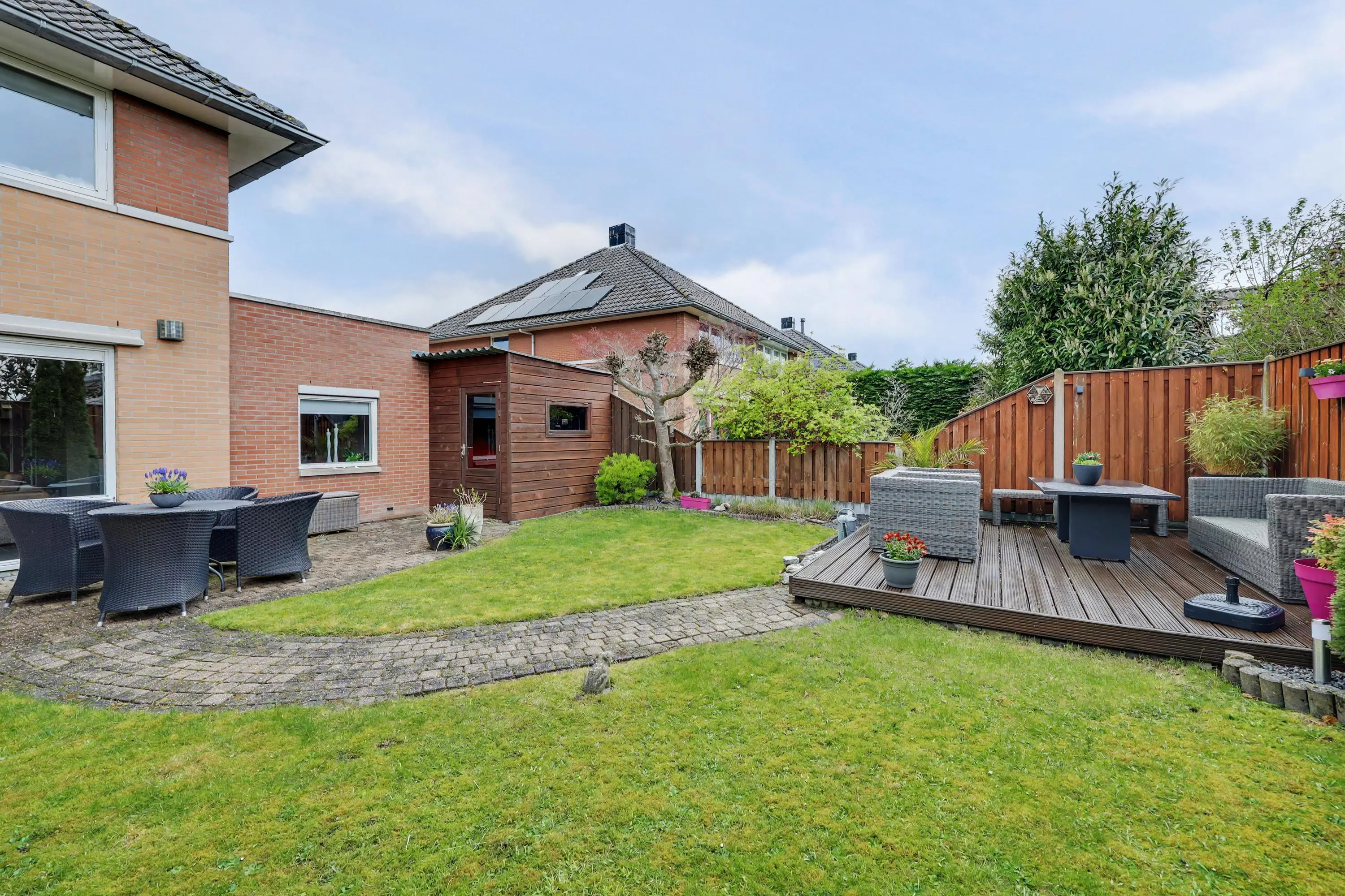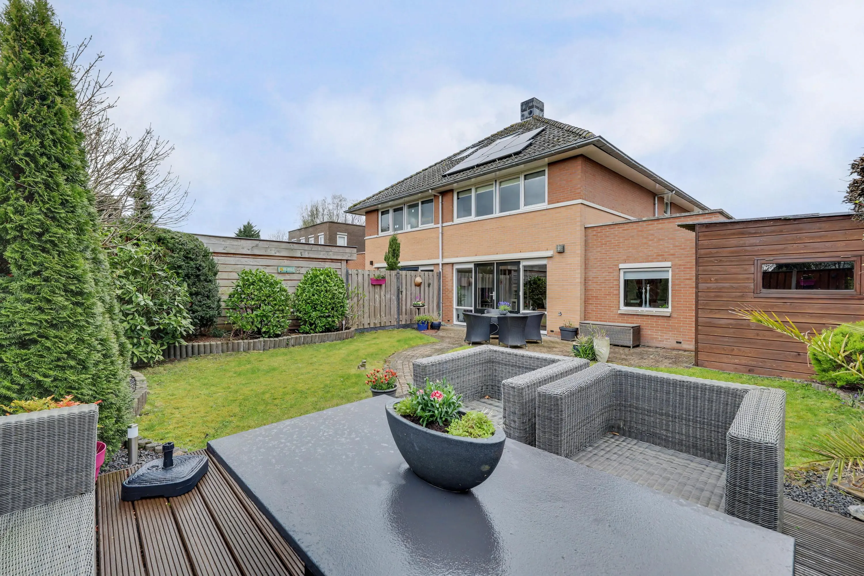 De voor- zij- en achtertuin bieden veel ruimte en altijd een plekje in de zon of schaduw. Parkeren kan aan de voorzijde op eigen grond. Aan de zijkant van de woning treft u een ruime berging van 14m2.