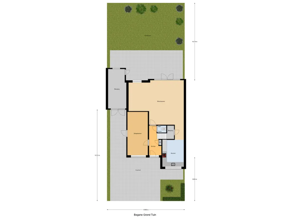 - Parkeerplaats op eigen grond (mogelijkheid 2e parkeerplaats).
