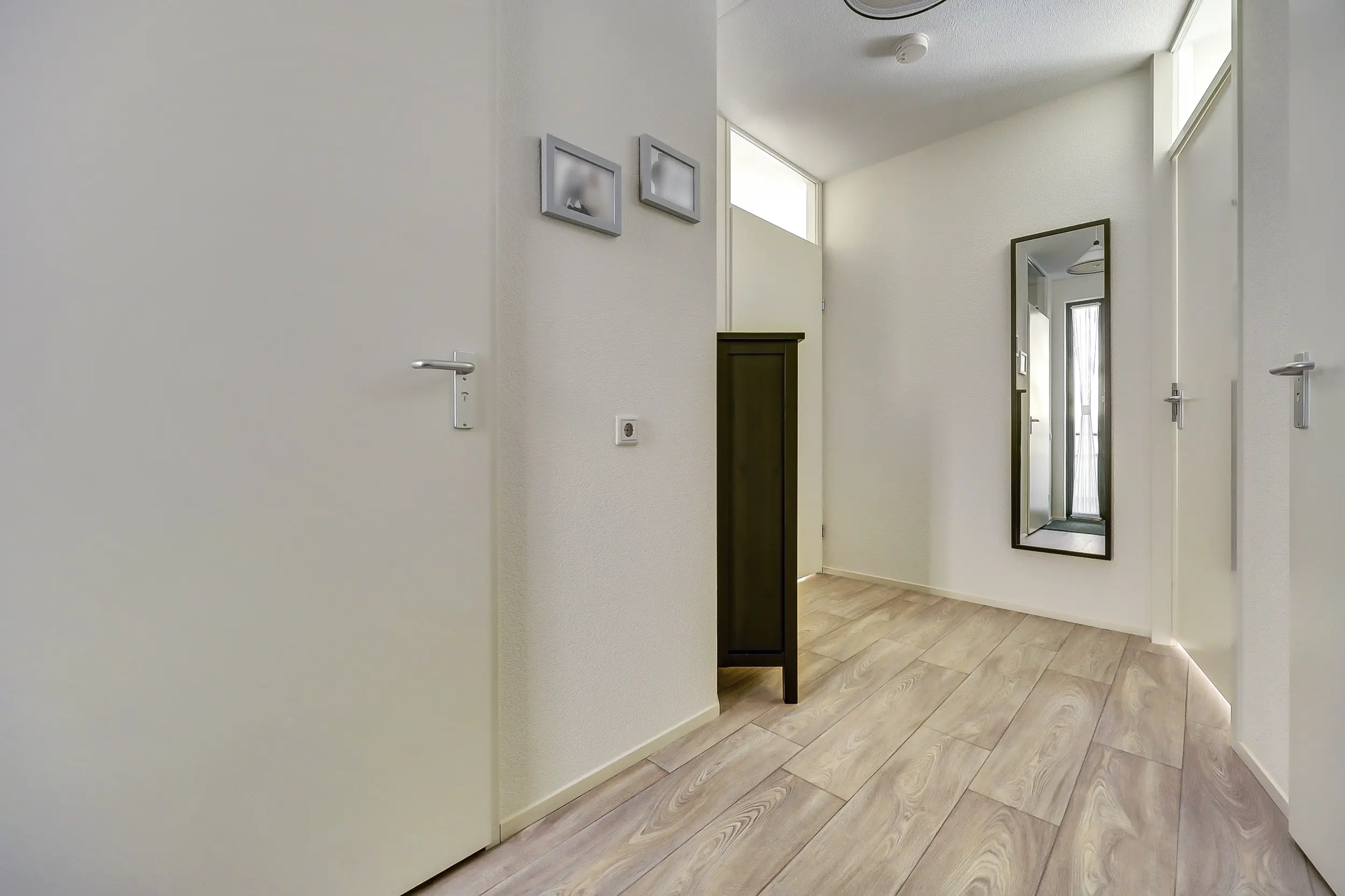 Op de derde verdieping kom je binnen via een brede, lichte galerij. De royale hal vormt het centrale punt van de woning en biedt toegang tot alle vertrekken.