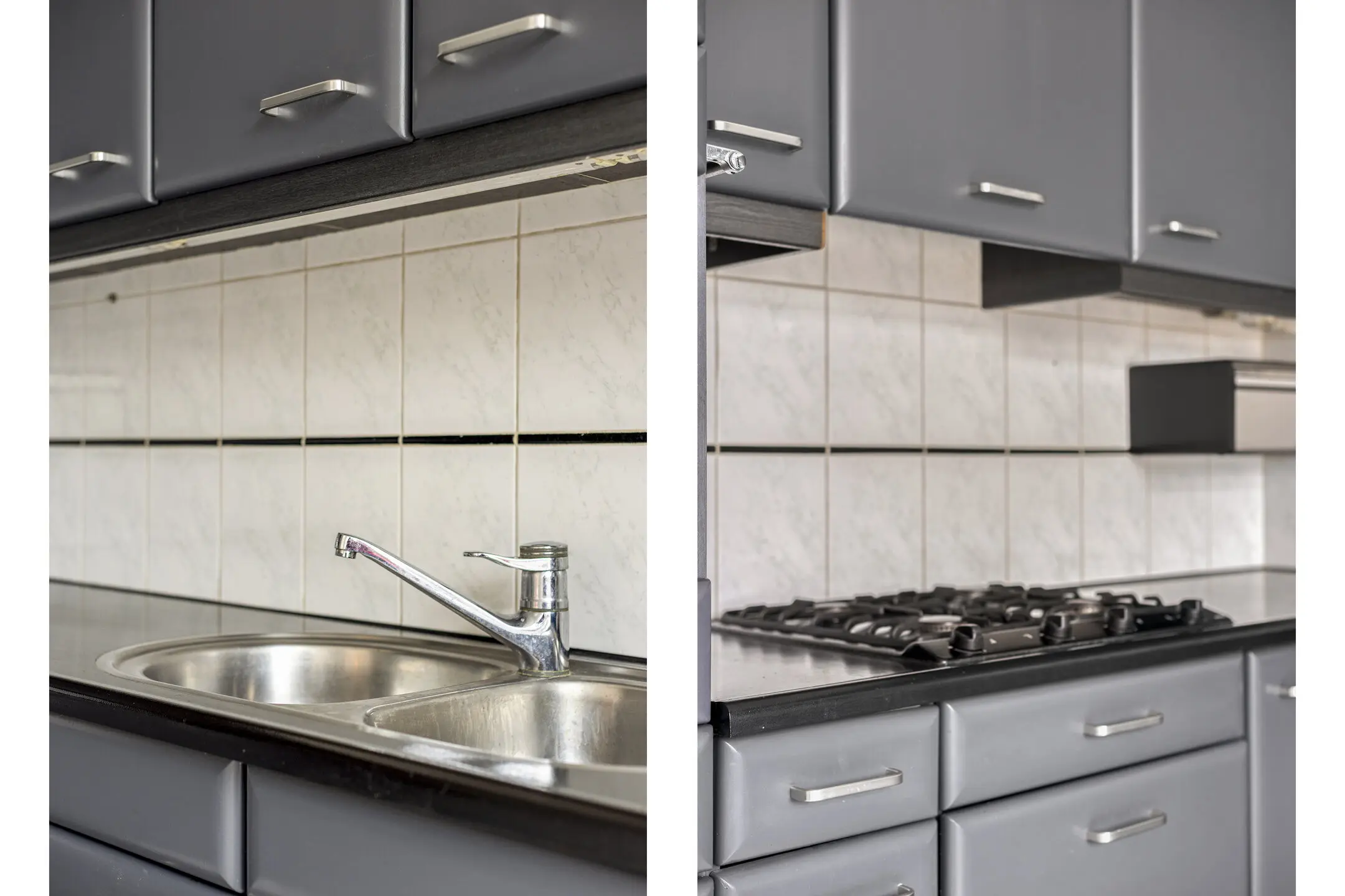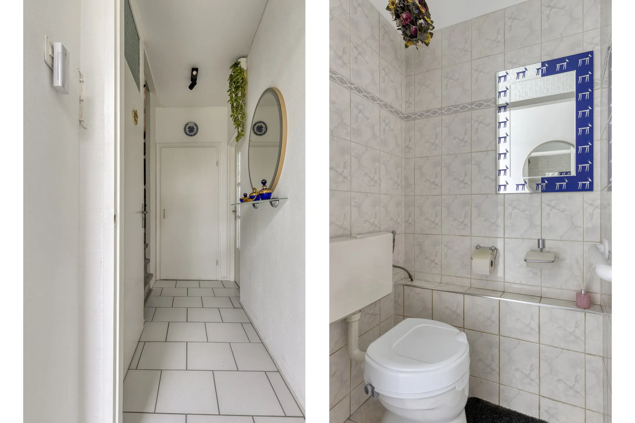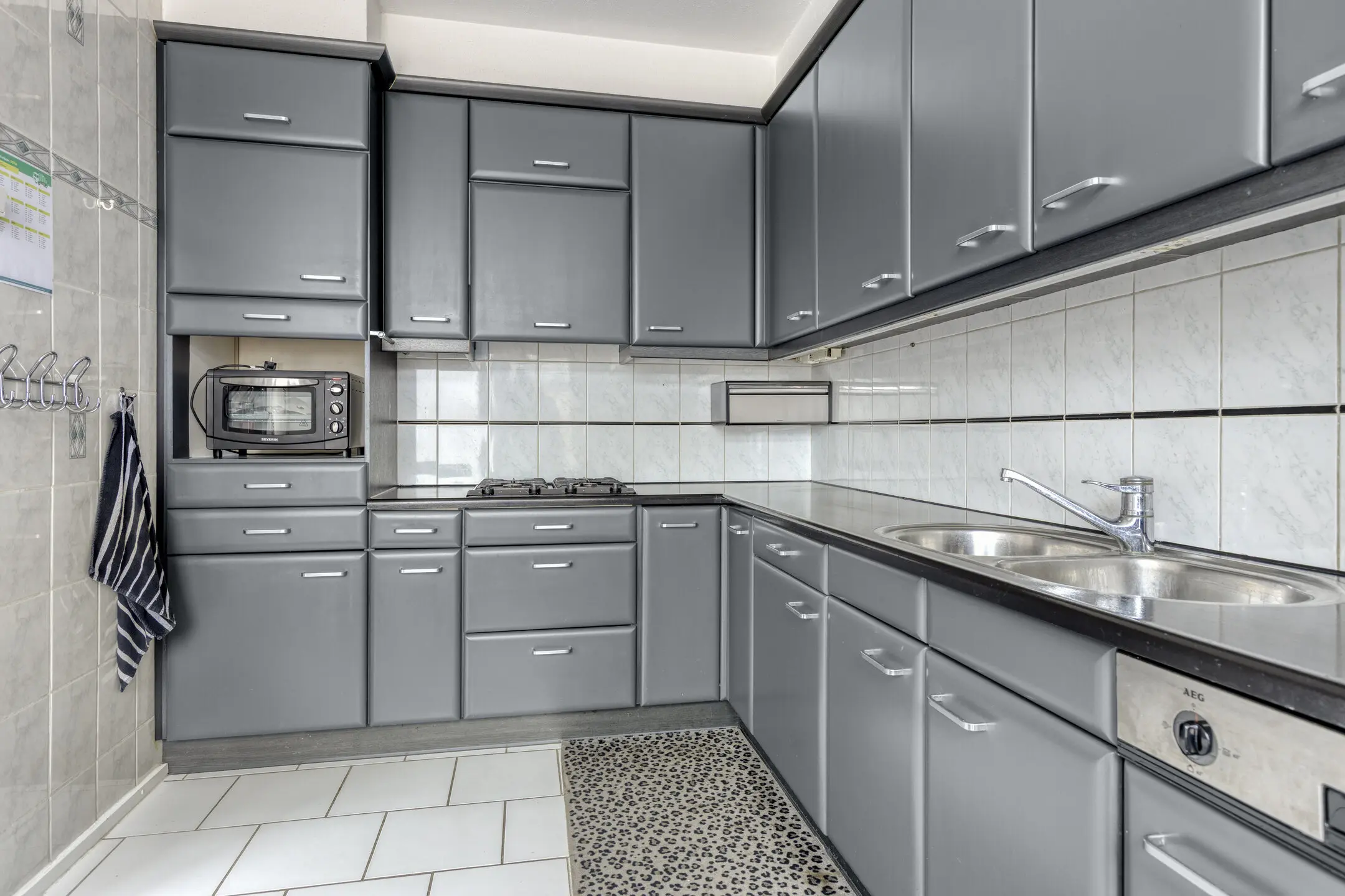 De entree geeft toegang tot de ruime en lichte woonkamer. Dankzij de grote raampartijen valt er veel natuurlijk licht binnen, wat zorgt voor een aangename en open sfeer. De keuken is voorzien van diverse inbouwapparatuur en biedt alle gemakken voor dagelijks gebruik.