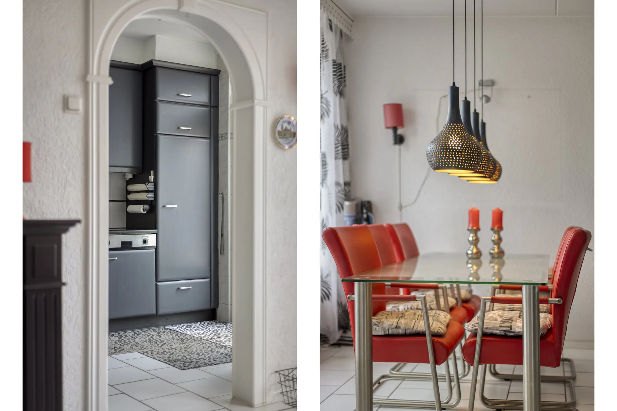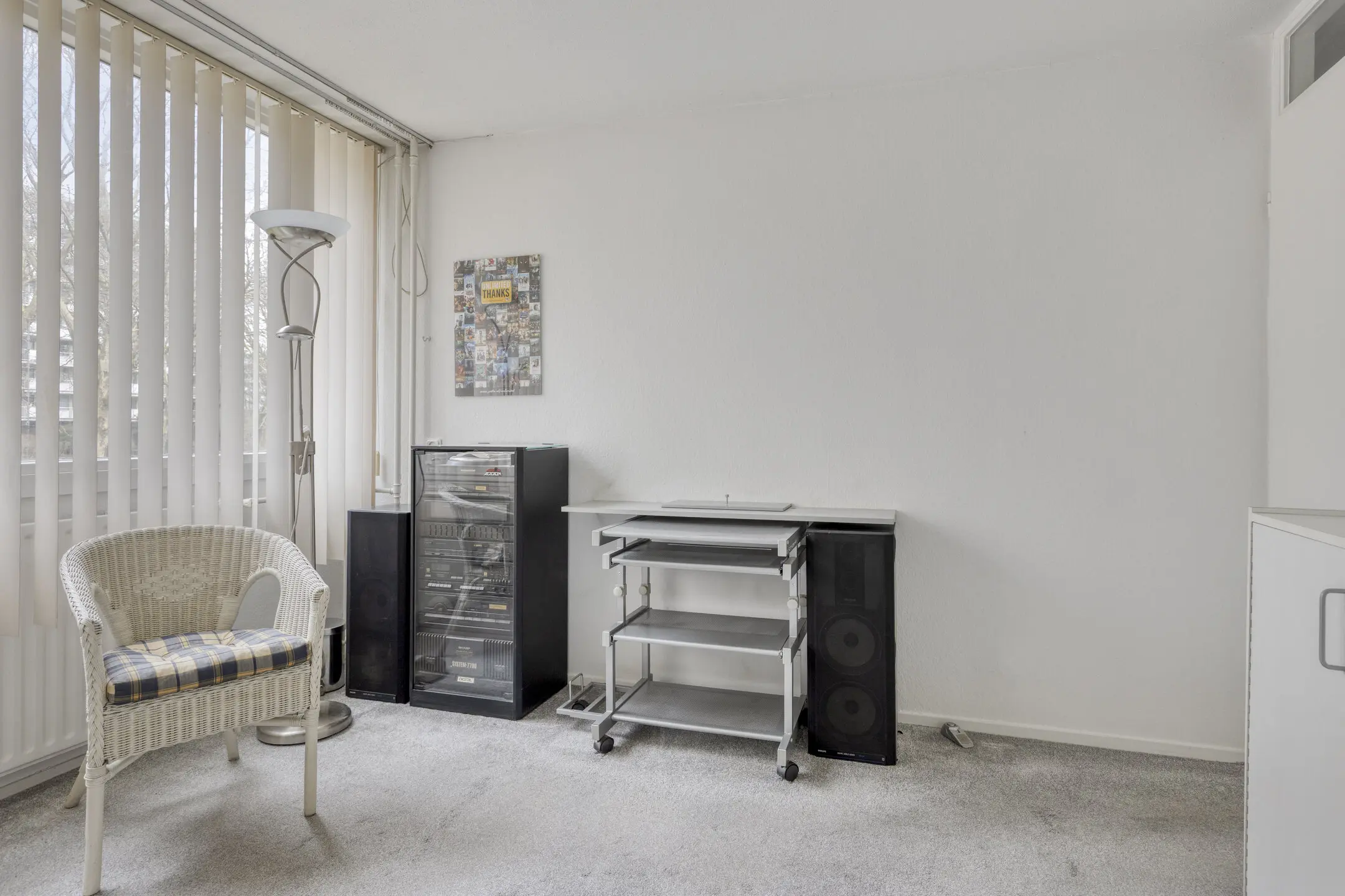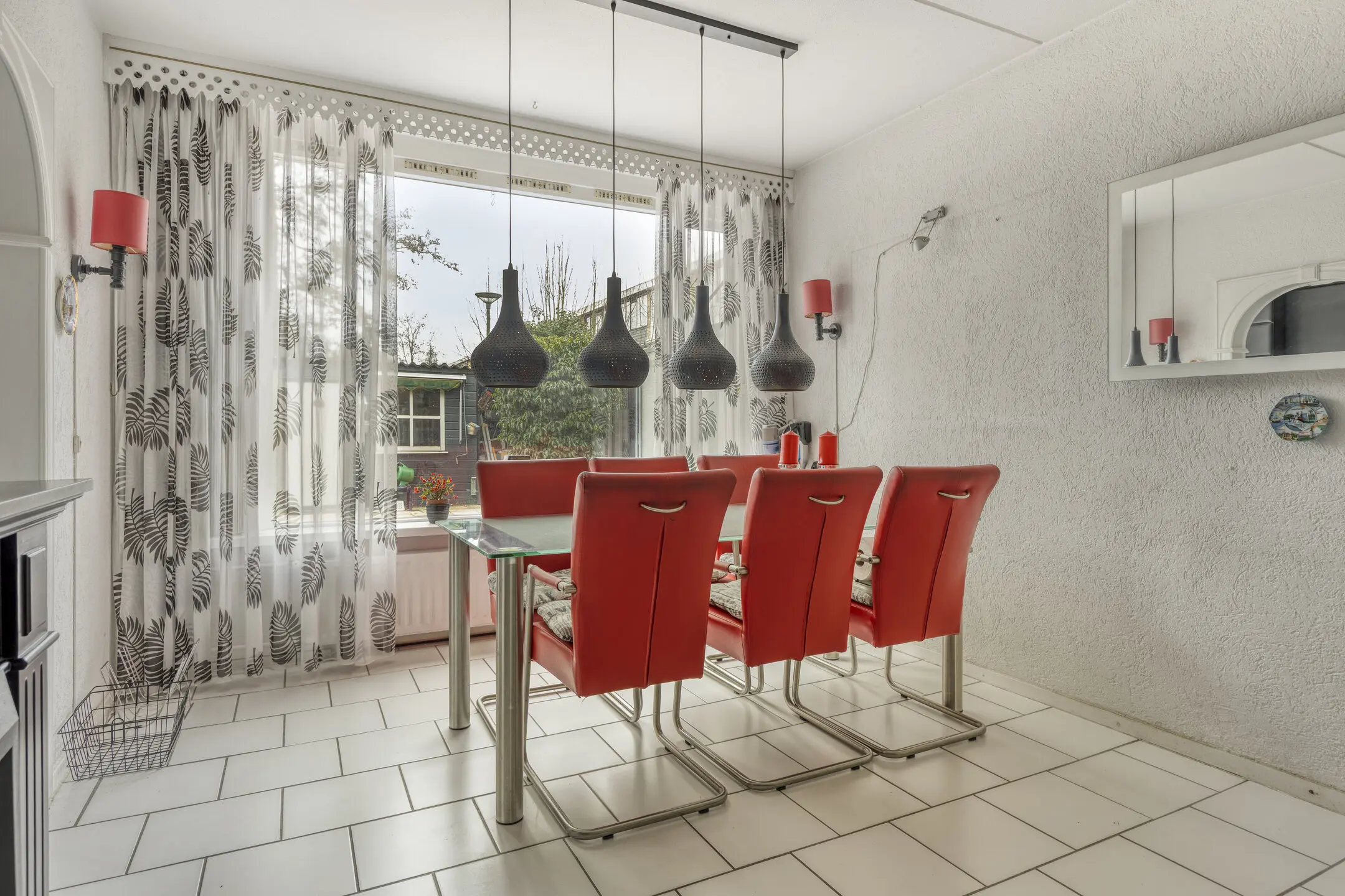 De entree geeft toegang tot de ruime en lichte woonkamer. Dankzij de grote raampartijen valt er veel natuurlijk licht binnen, wat zorgt voor een aangename en open sfeer. De keuken is voorzien van diverse inbouwapparatuur en biedt alle gemakken voor dagelijks gebruik.