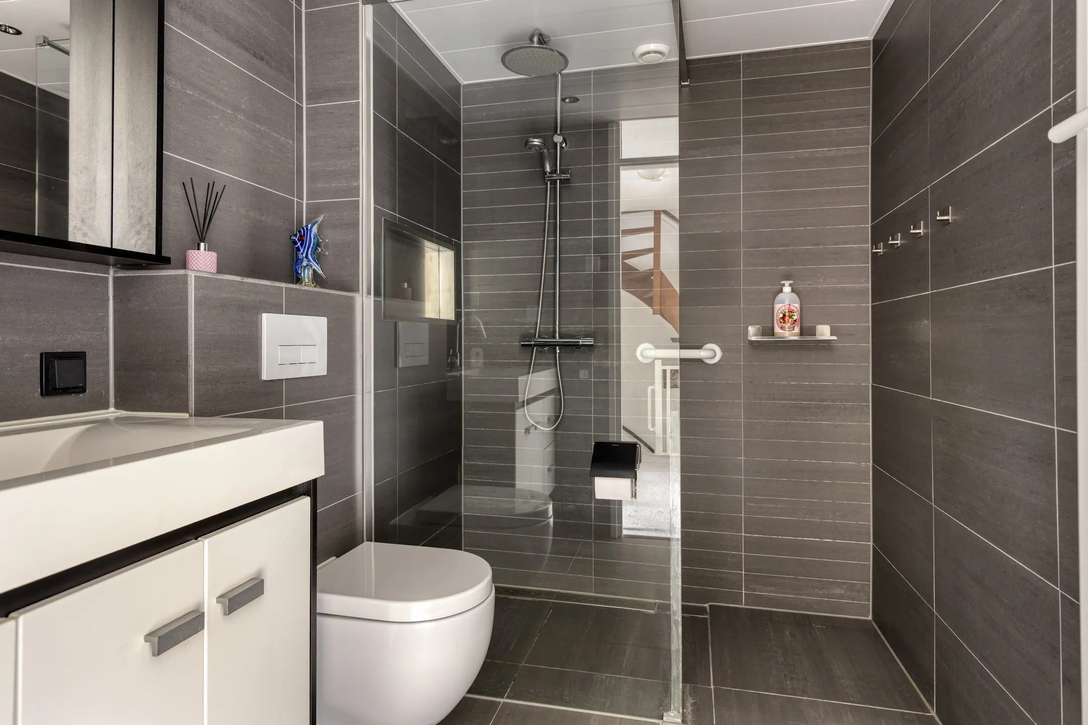 Op deze verdieping bevinden zich vier fijne slaapkamers. De moderne badkamer (circa 4 jaar oud) is stijlvol afgewerkt en voorzien van een inloopdouche, wastafelmeubel en toilet.