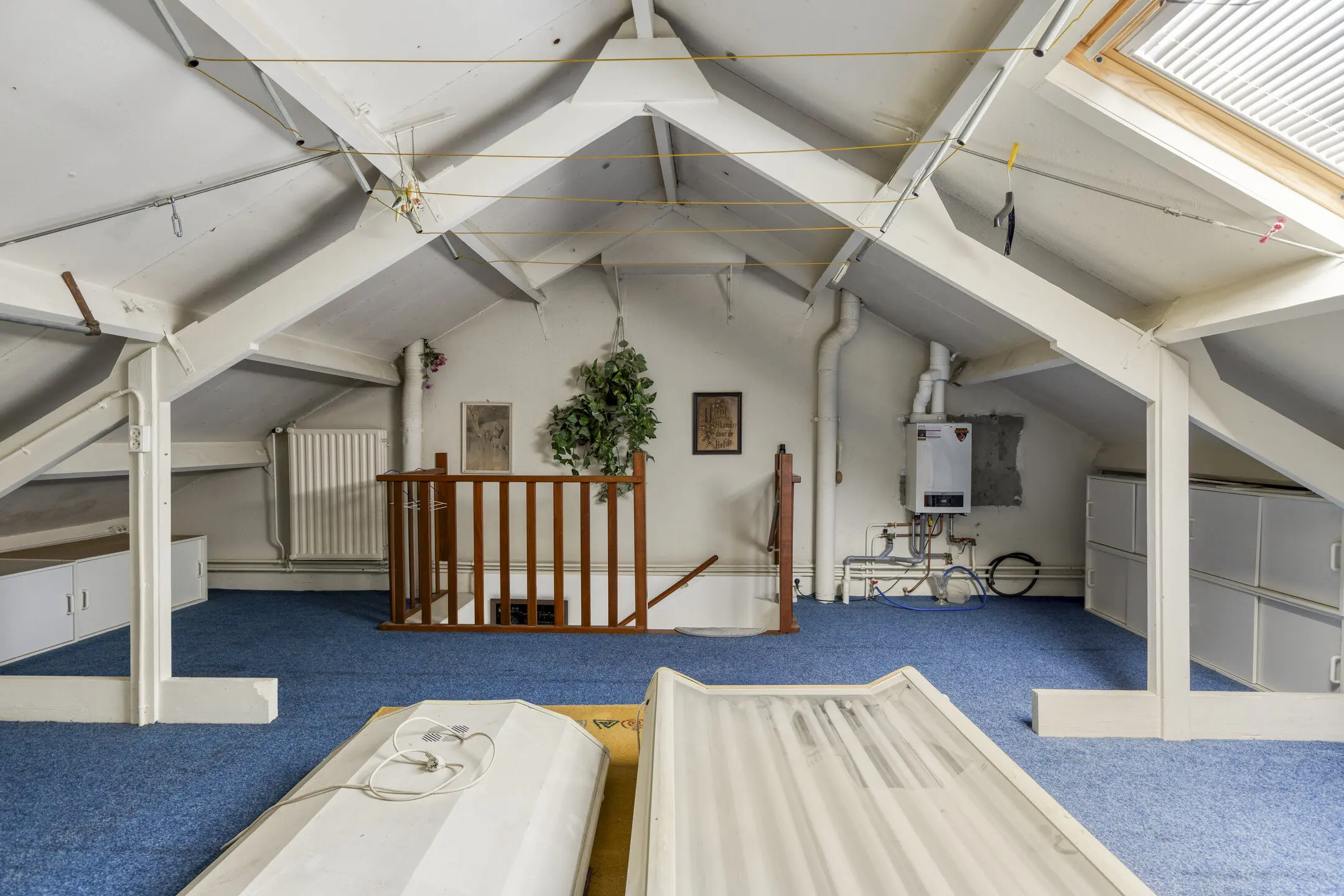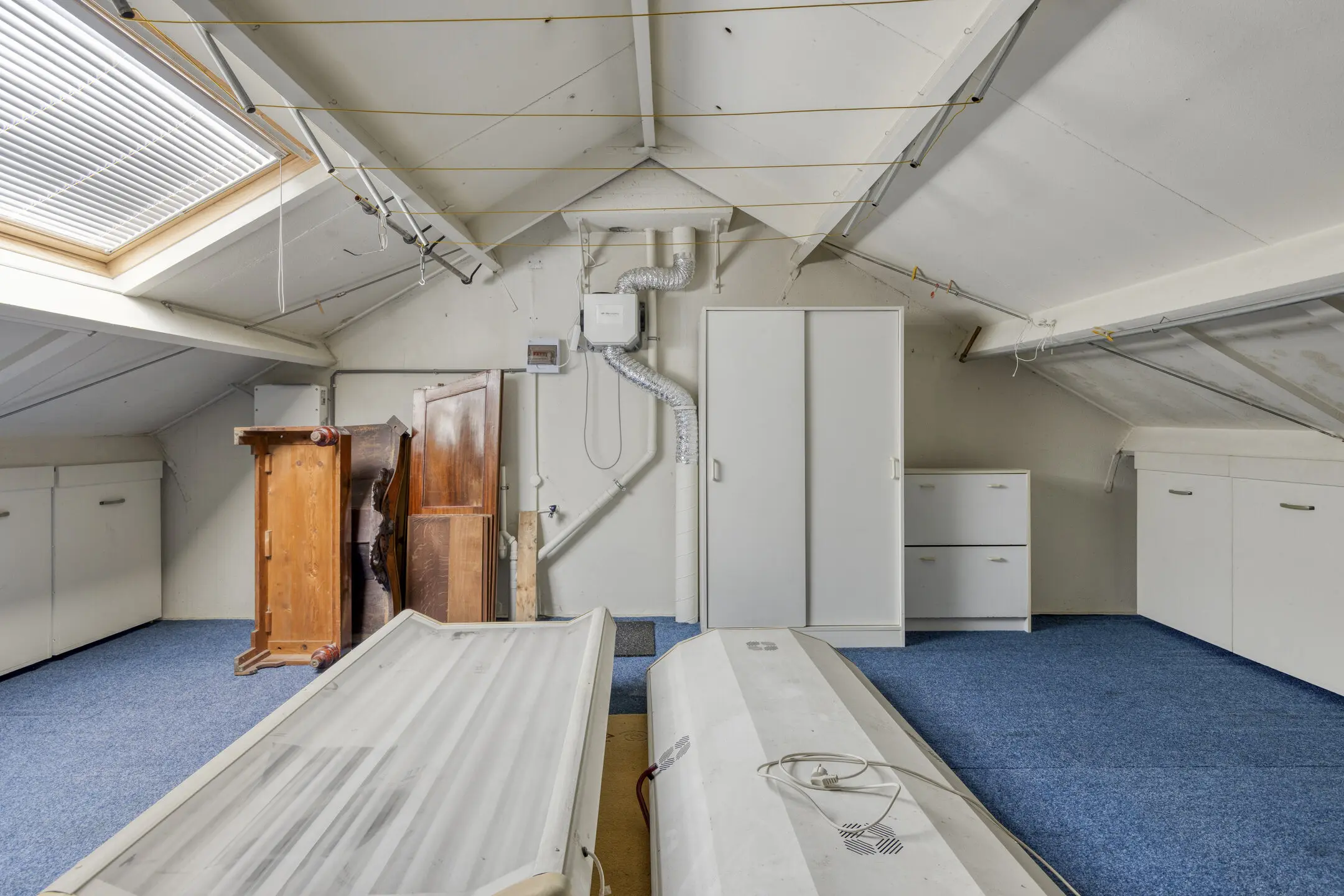 De ruime zolderverdieping biedt een volwaardige vijfde slaapkamer. Dankzij de royale afmetingen is deze verdieping multifunctioneel te gebruiken, bijvoorbeeld als extra slaapkamer, werkruimte, hobbykamer of logeerkamer.