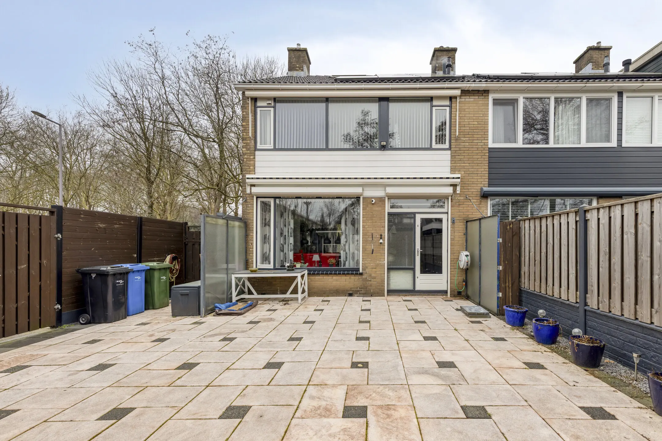 De woning beschikt over een ruime betegelde voortuin en een smal zijpad dat toegang biedt tot de achtertuin, ideaal om te ontspannen of om kinderen buiten te laten spelen. Dankzij de hoekligging geniet u van extra privacy en een ruimtelijk gevoel. Direct naast de woning bevindt zich een openbare parkeerplaats, en daarnaast is er volop parkeergelegenheid in de wijk.
