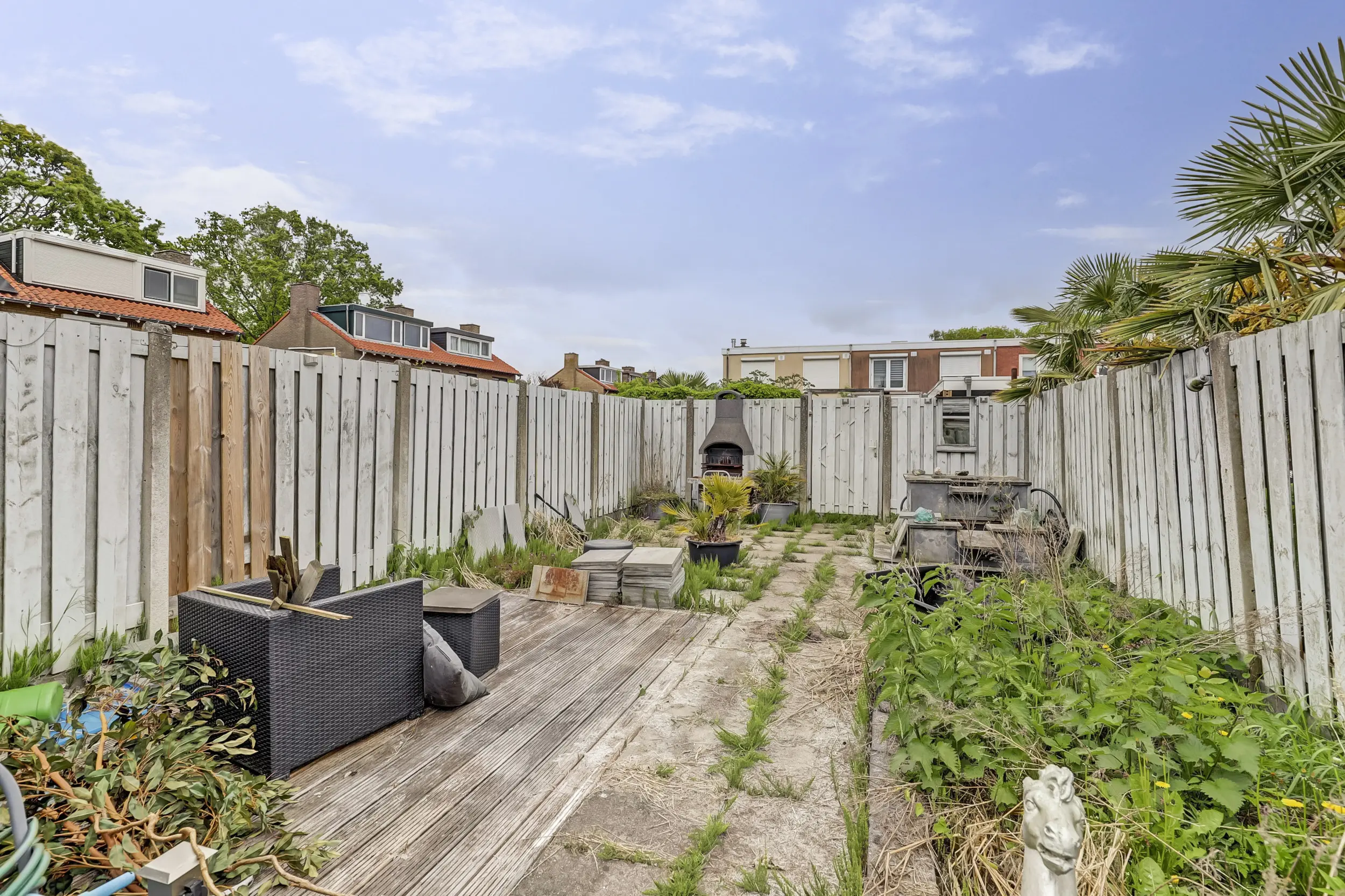De achtertuin is diep en biedt veel mogelijkheden om een heerlijke buitenruimte te creëren.