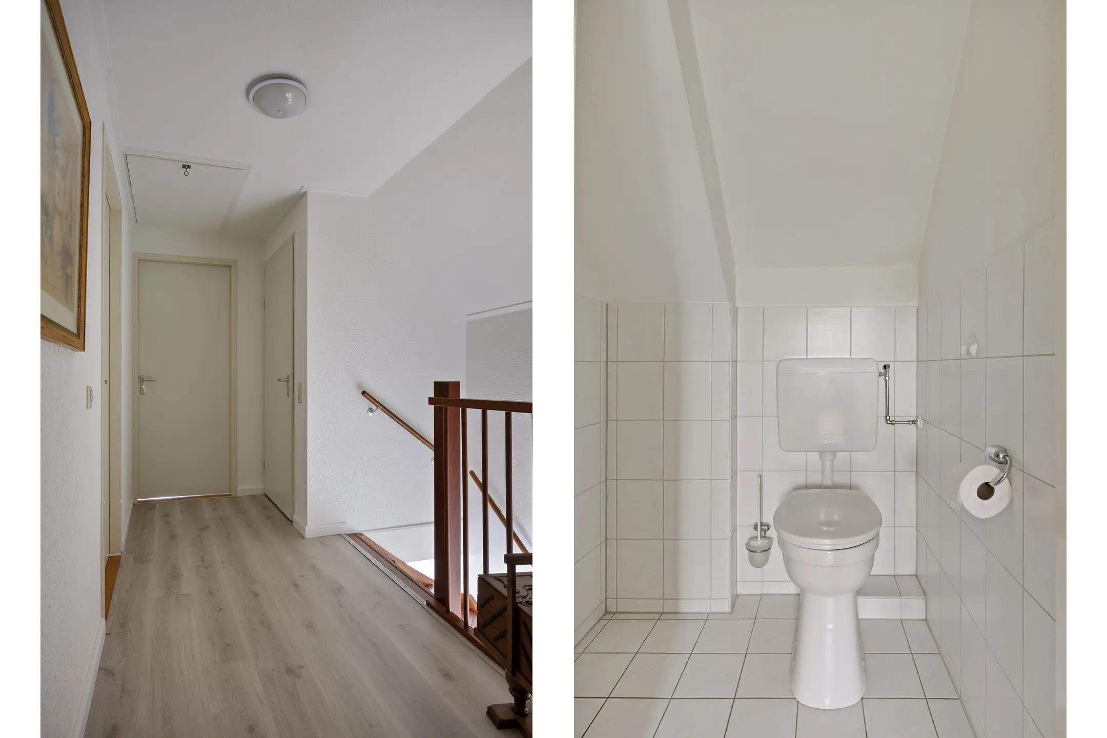 Op de eerste verdieping treft u de overige 3 comfortabele slaapkamers aan. De ruime badkamer op deze verdieping is voorzien van een ligbad, douche en wastafel, waardoor het perfect is om te ontspannen na een lange dag. De eerste verdieping heeft ook een apart toilet. Er is tevens een zolder die nog verdere mogelijkheden biedt.