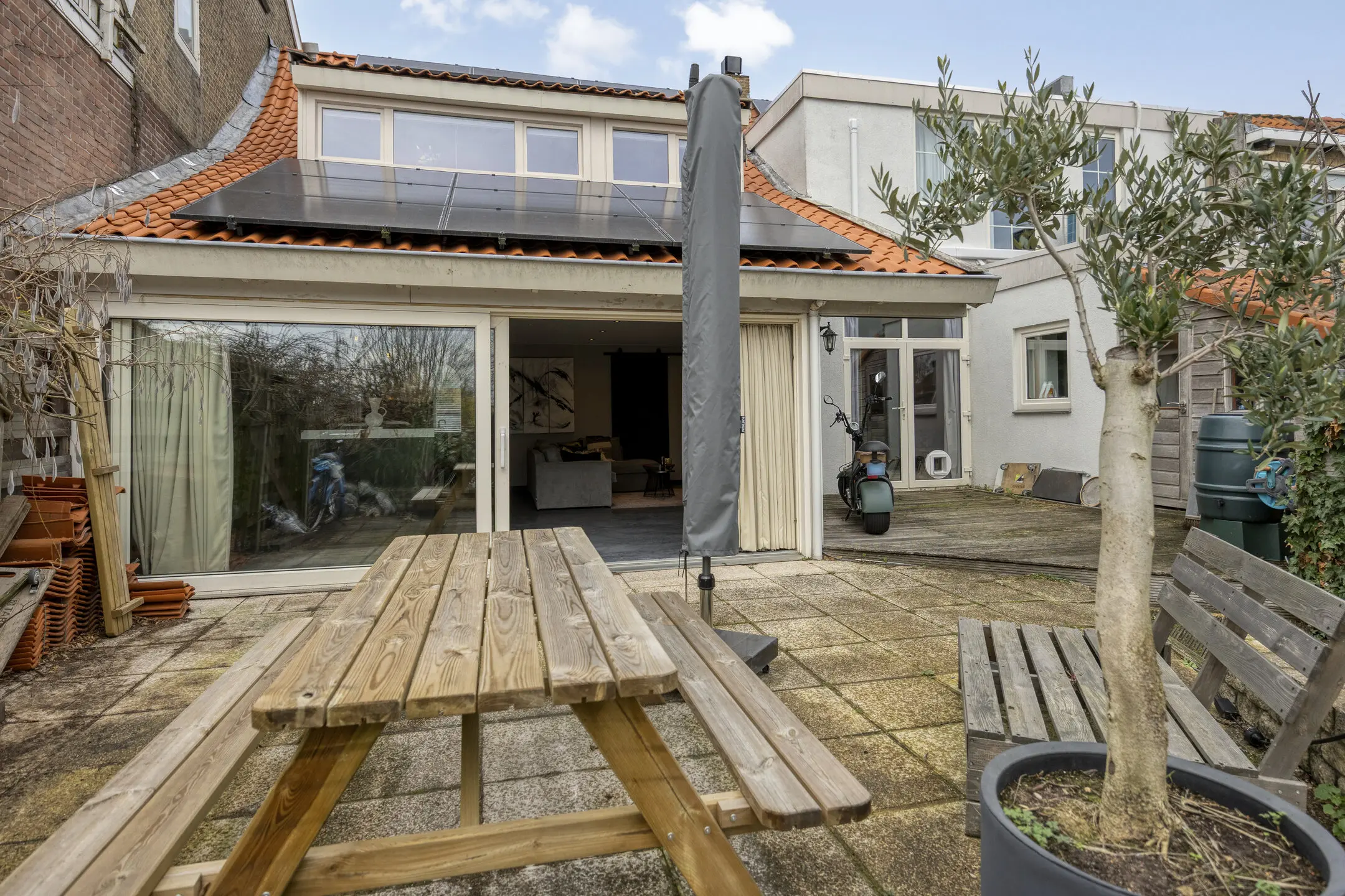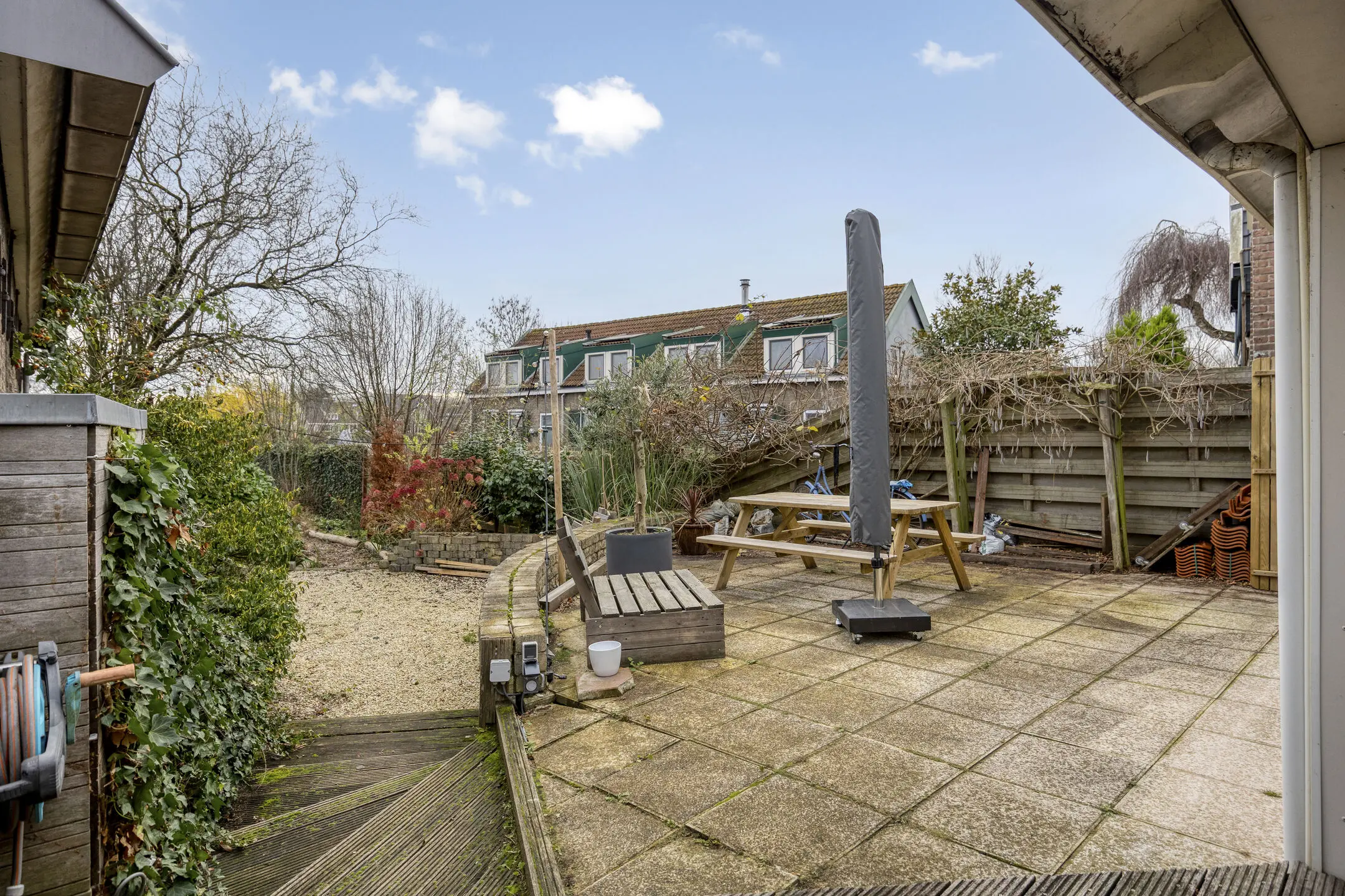 - Hottub in de tuin blijft achter;