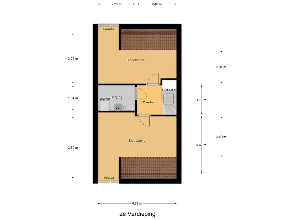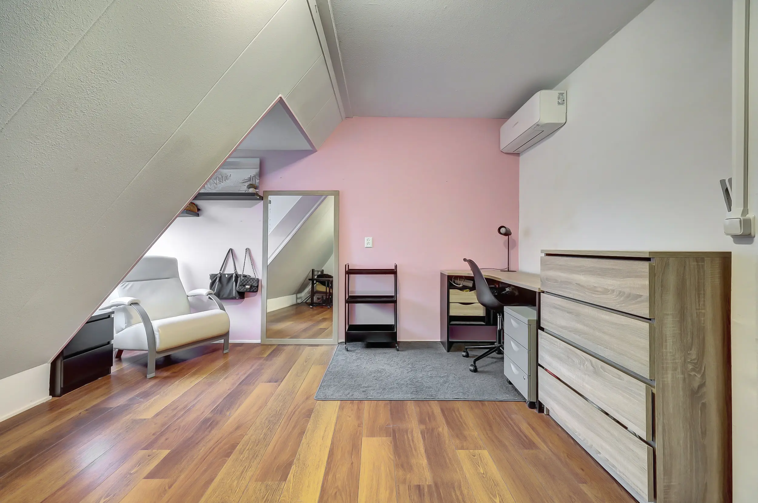 Door de vaste trap kom je op de overloop met toegang tot de twee slaapkamers van deze verdieping. De slaapkamers zijn voorzien van een dakkapel, parketvloer en hebben elk een airco voor warmen en koelen. In de technische ruimte is de opstelplaats voor de CV-ketel (Remeha 2019) en ruimte voor de wasmachine en wasdroger.