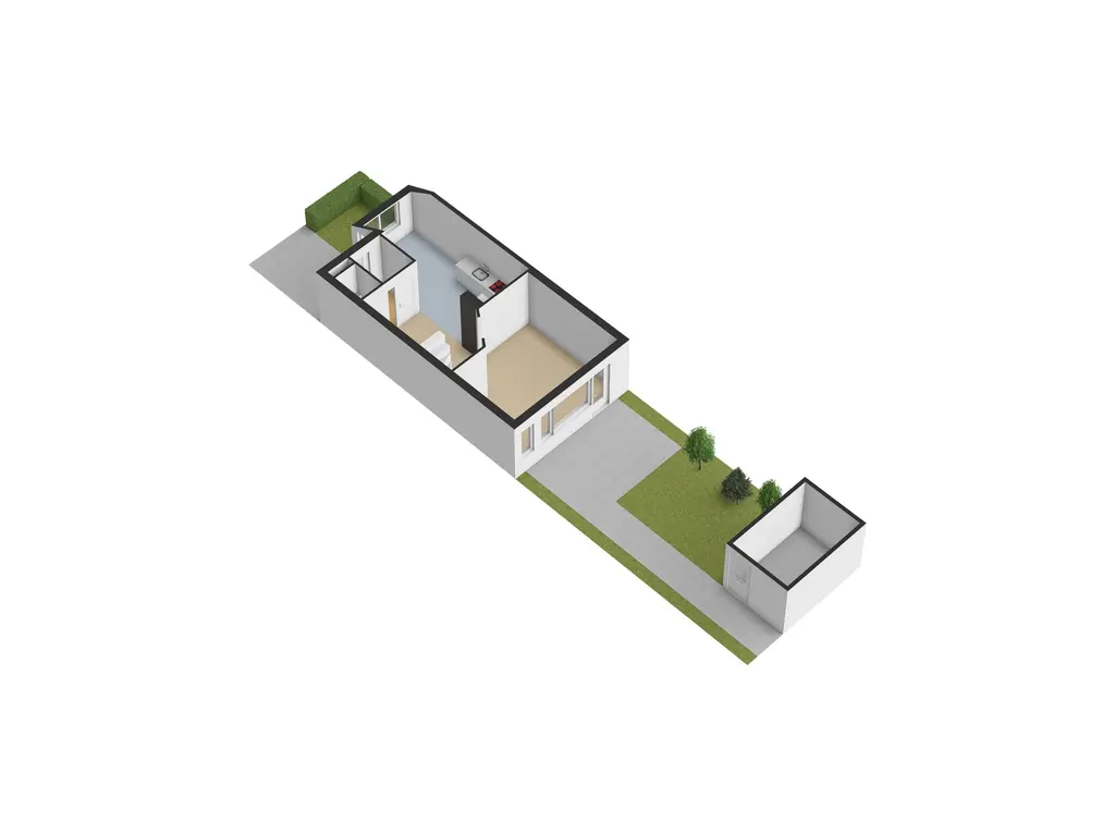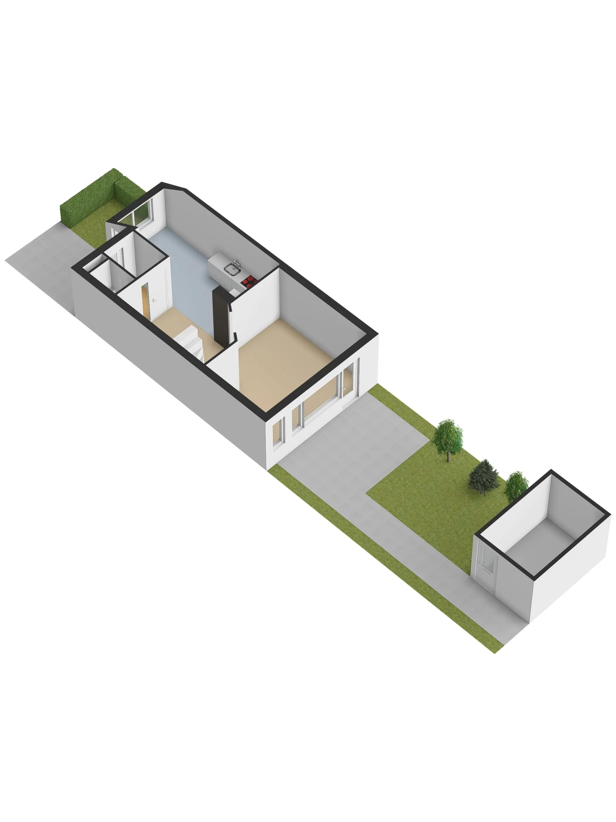 Achter de woning vind je een fijne tuin met borders, een terras en een houten berging. Aan de achtergevel is een zonwering aanwezig. Tevens kun je via de poort aan de achterzijde via het pad naar de openbare weg. In de directe omgeving is voldoende plaats om te parkeren. Aan de voorzijde is de tuin voorzien van bestrating.
