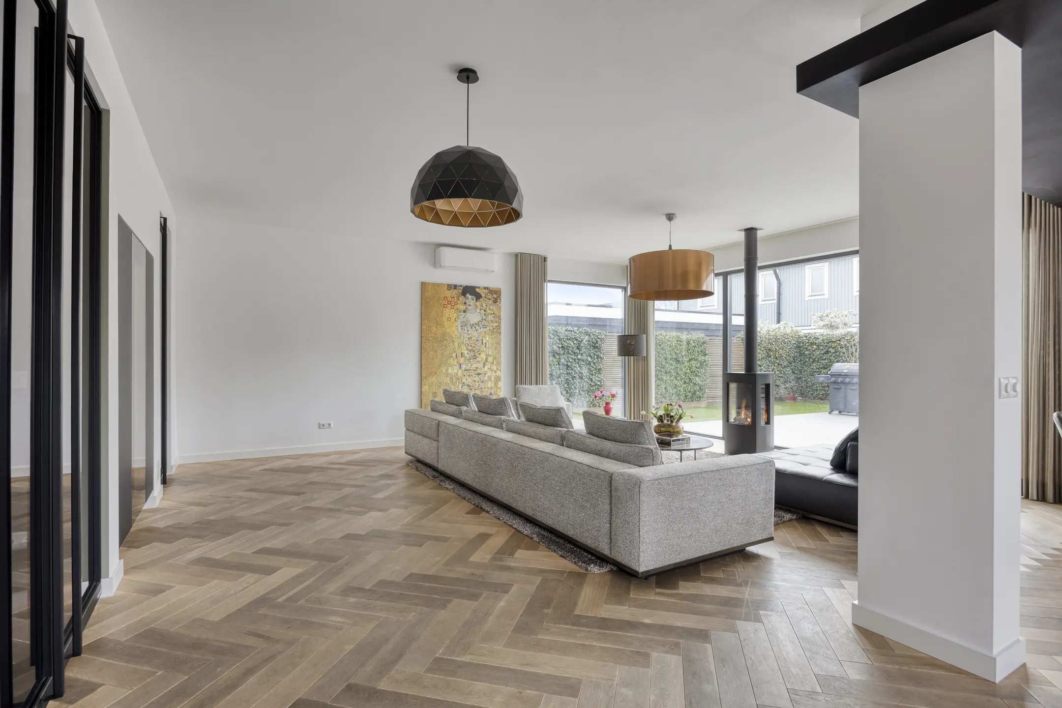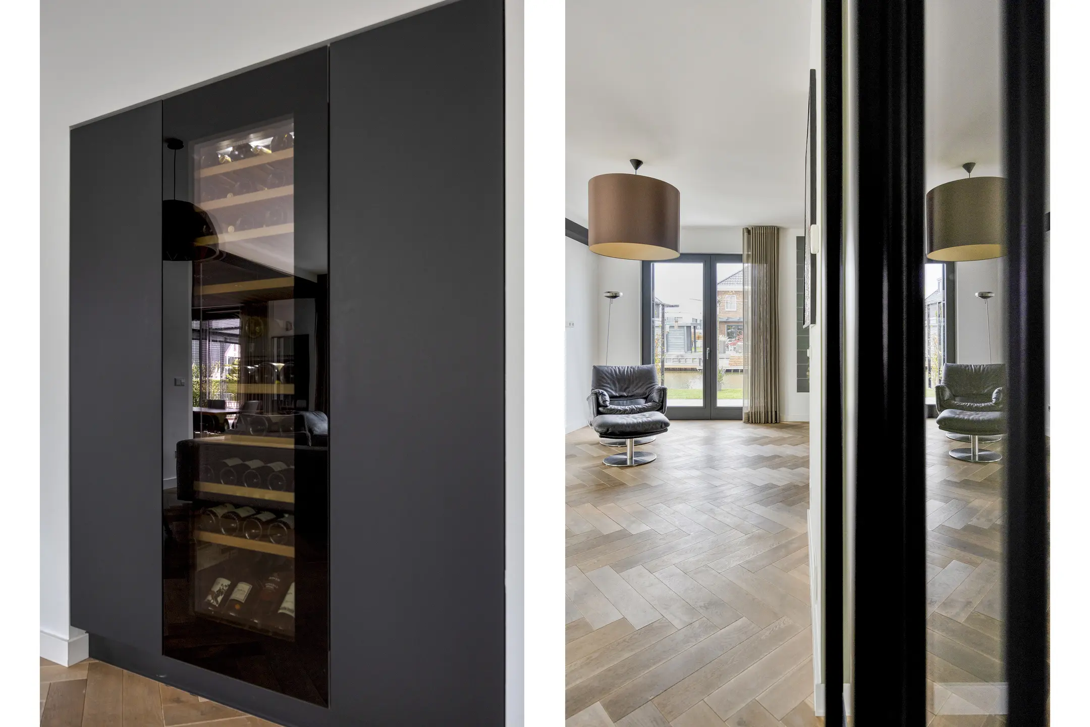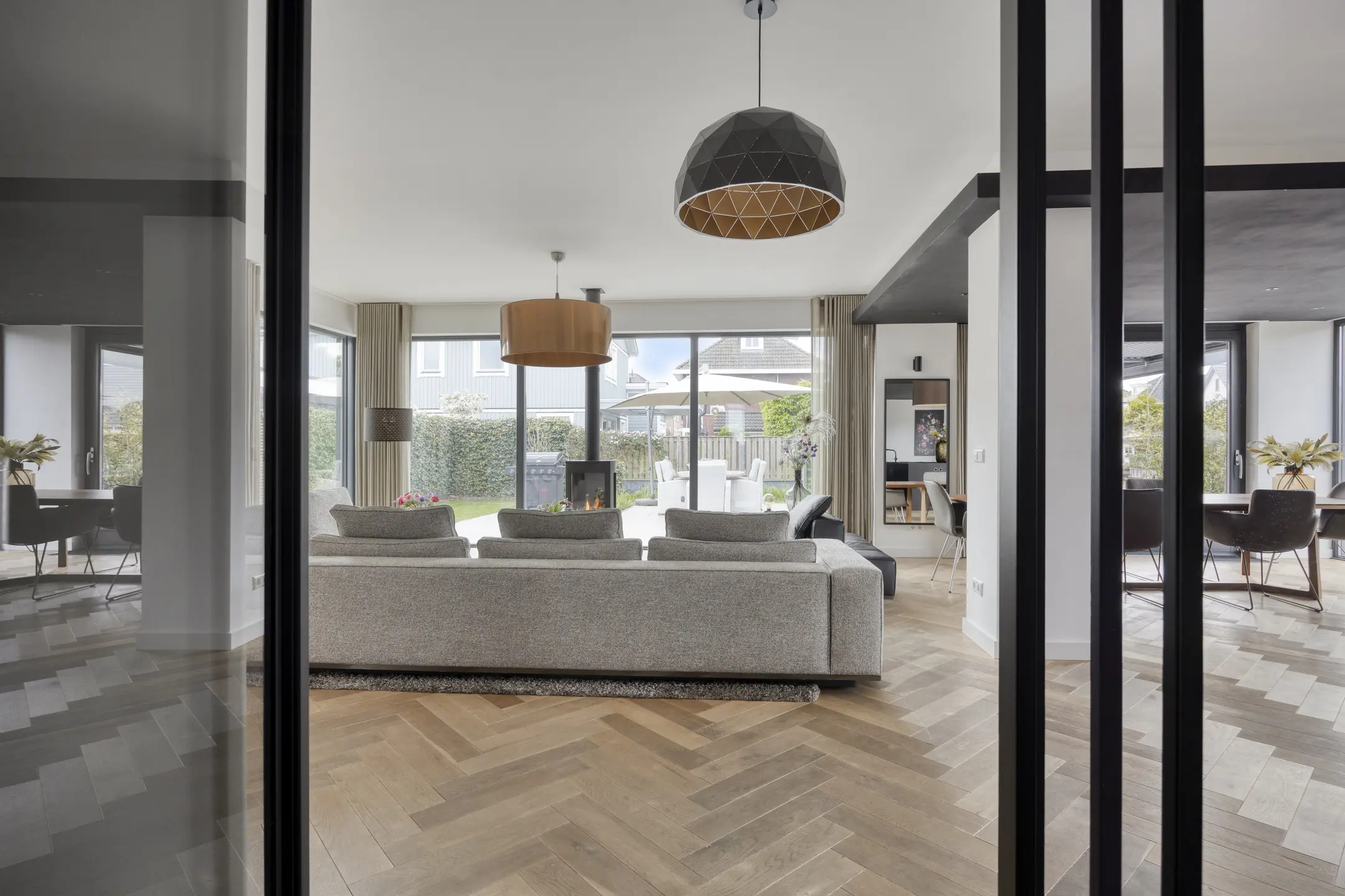 Samen met onze architect hebben we daarna dit strak vormgegeven huis ontworpen: licht en modern, maar ook warm en uitnodigend, volledig afgestemd op hoe wij wilden leven. Daarbij horen grote raampartijen, veel openheid en altijd die connectie met onze tuin op het zonnige zuidwesten.