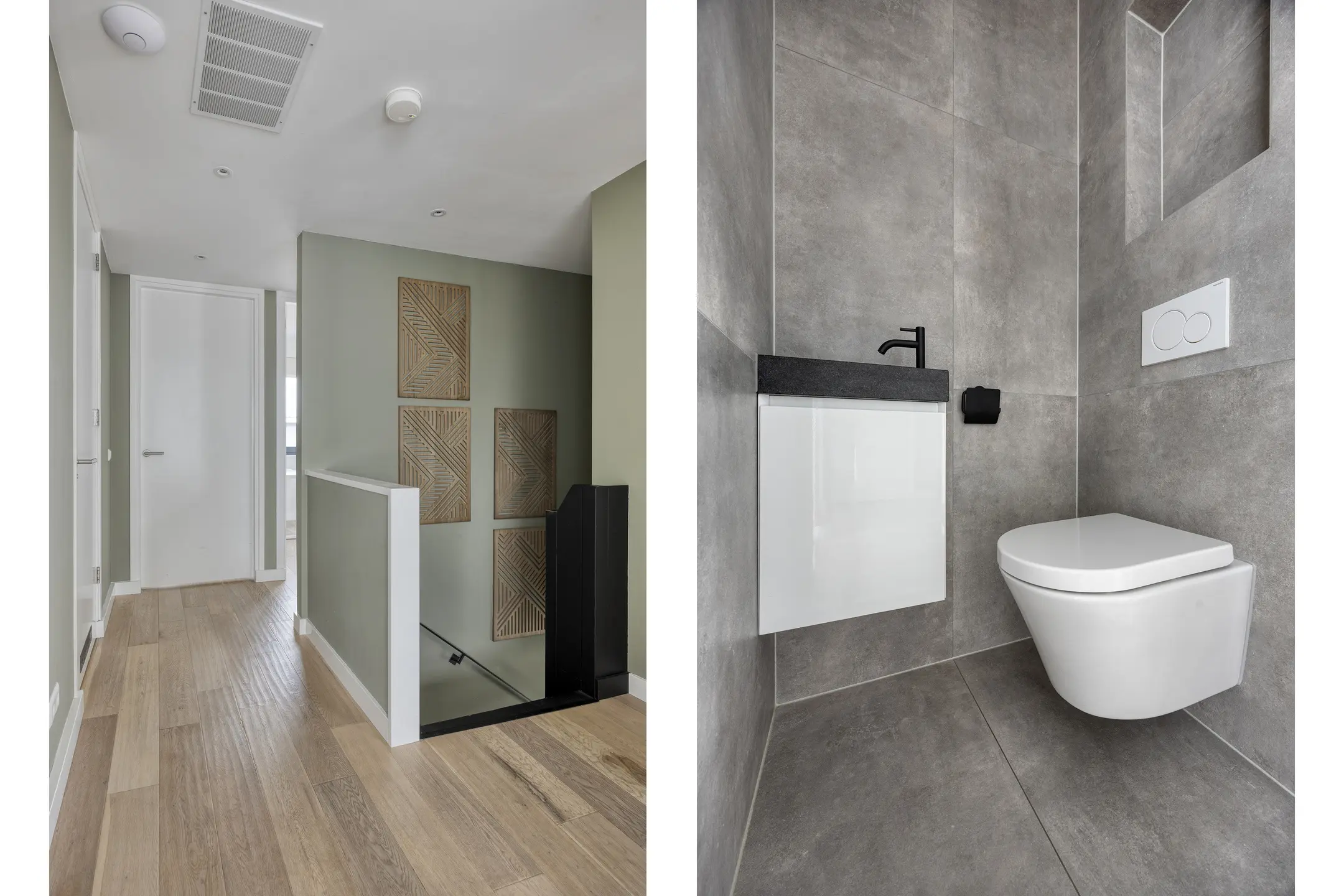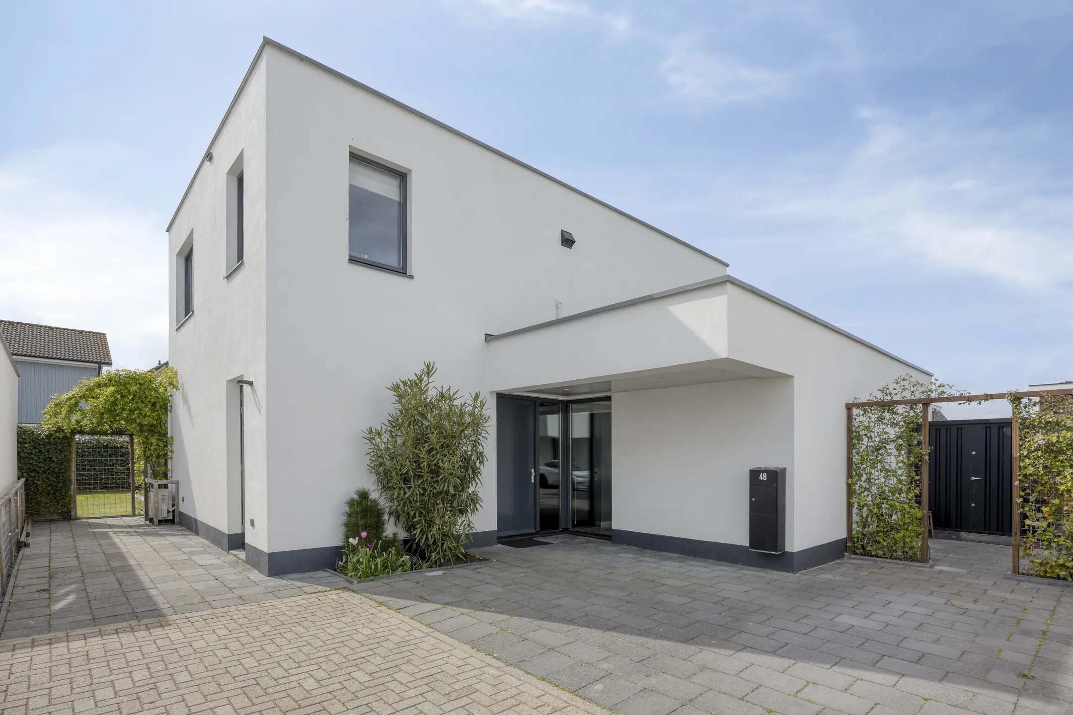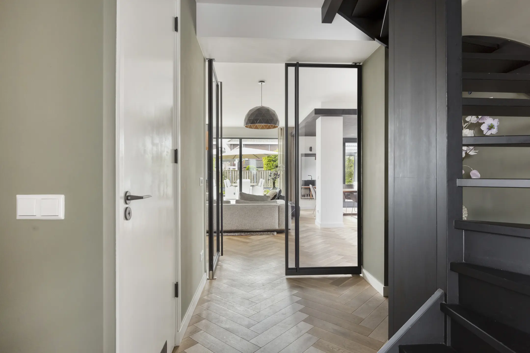 Samen met onze architect hebben we daarna dit strak vormgegeven huis ontworpen: licht en modern, maar ook warm en uitnodigend, volledig afgestemd op hoe wij wilden leven. Daarbij horen grote raampartijen, veel openheid en altijd die connectie met onze tuin op het zonnige zuidwesten.