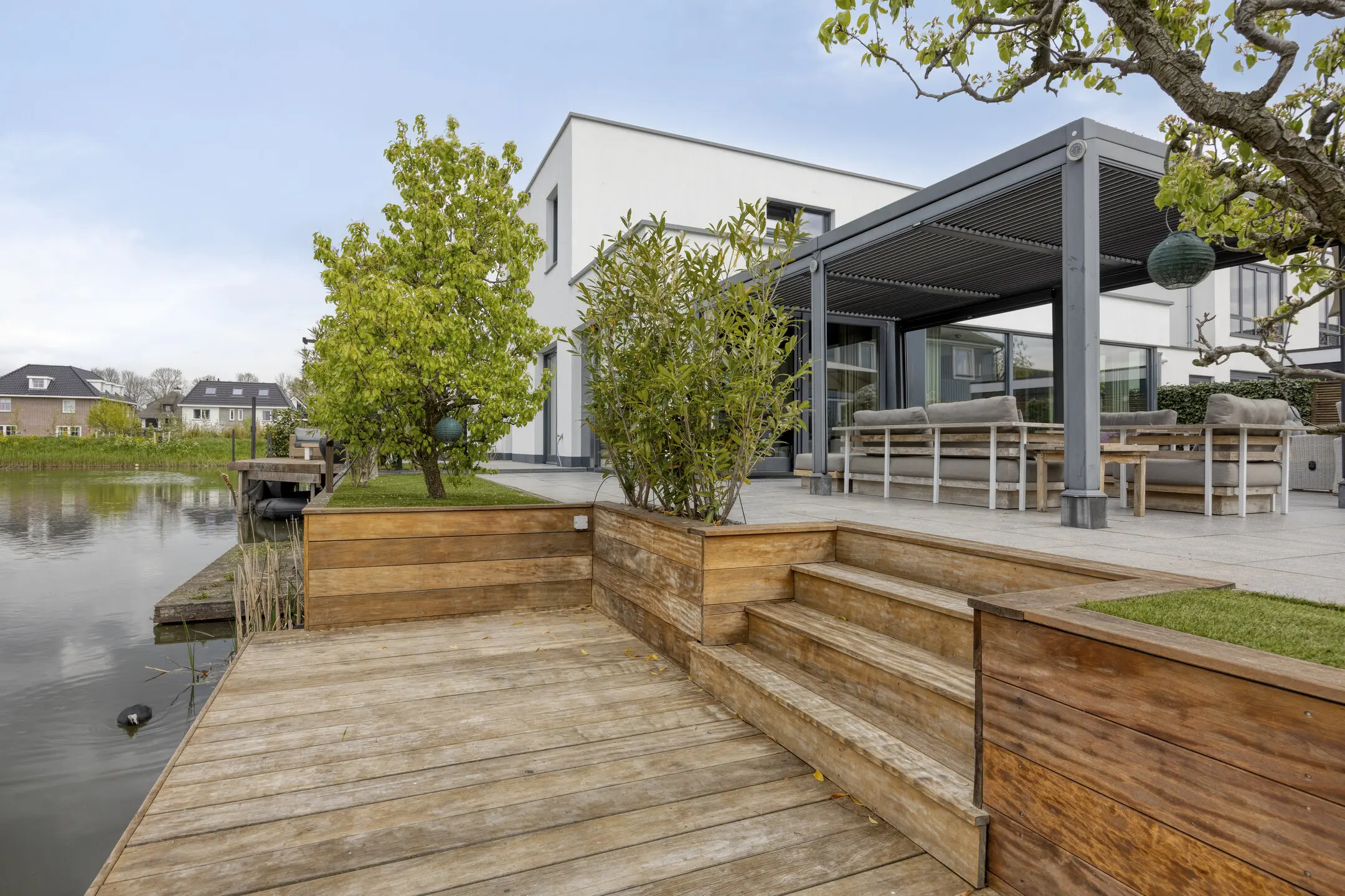 * Zeer ruime en exclusieve tuin met twee hardhouten steigers aan het water, voorzien van elektriciteit