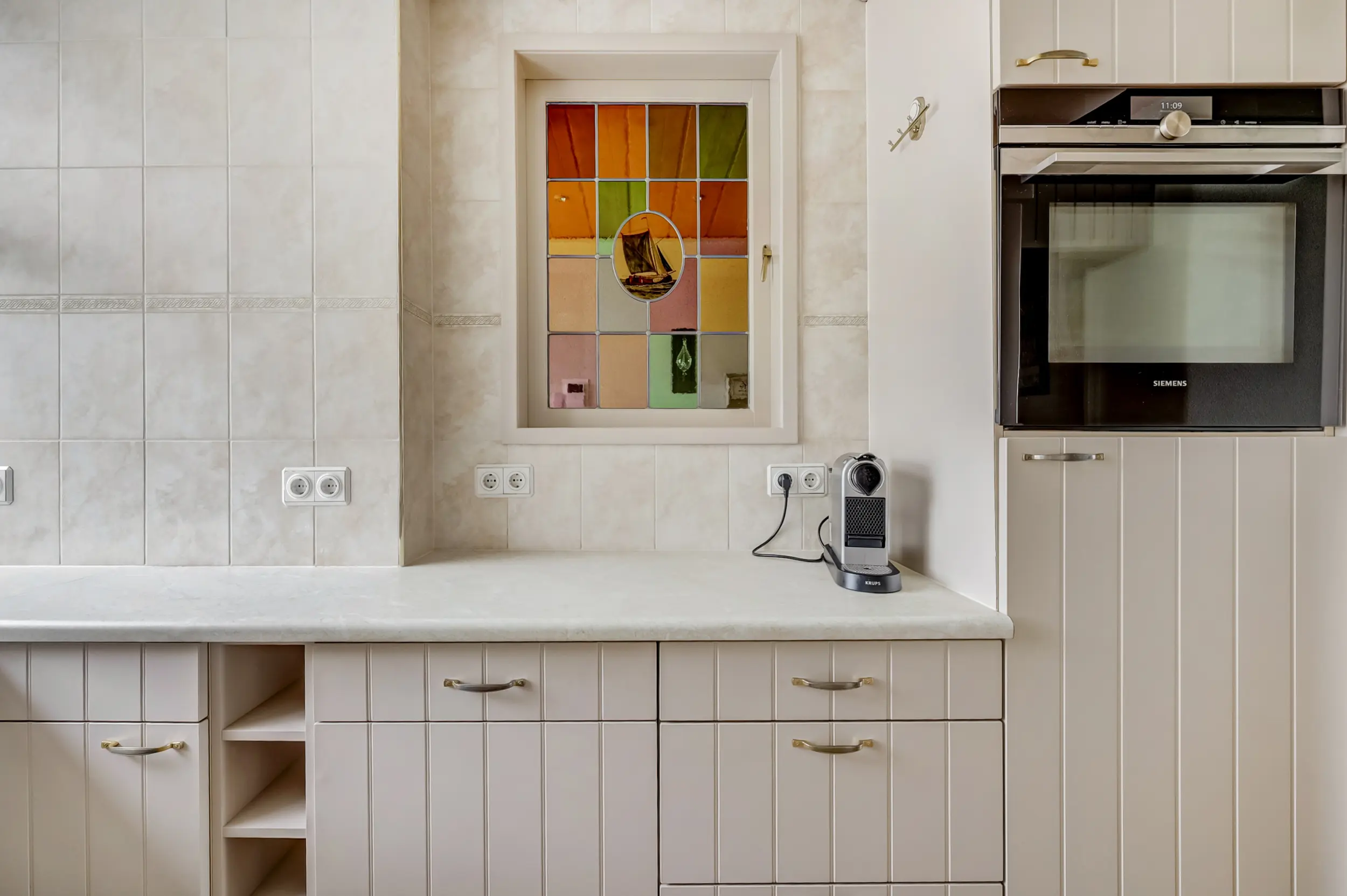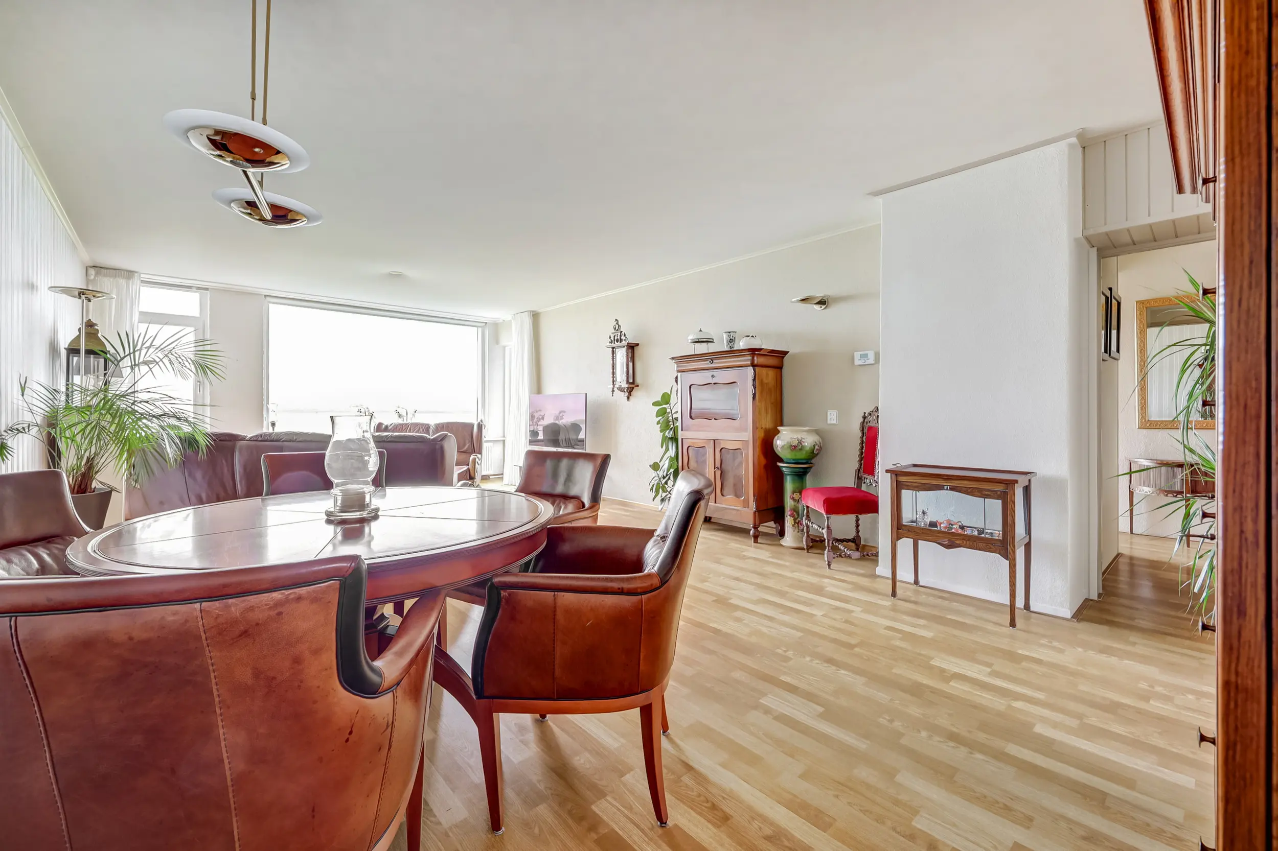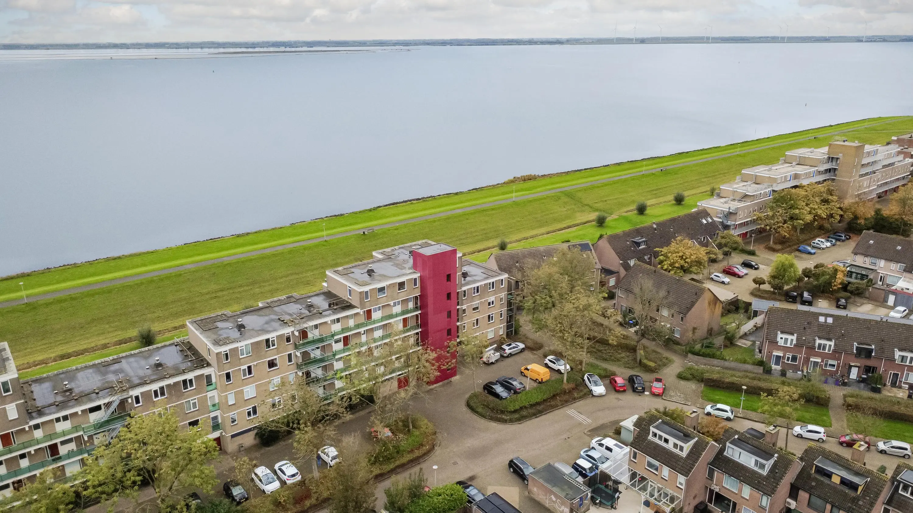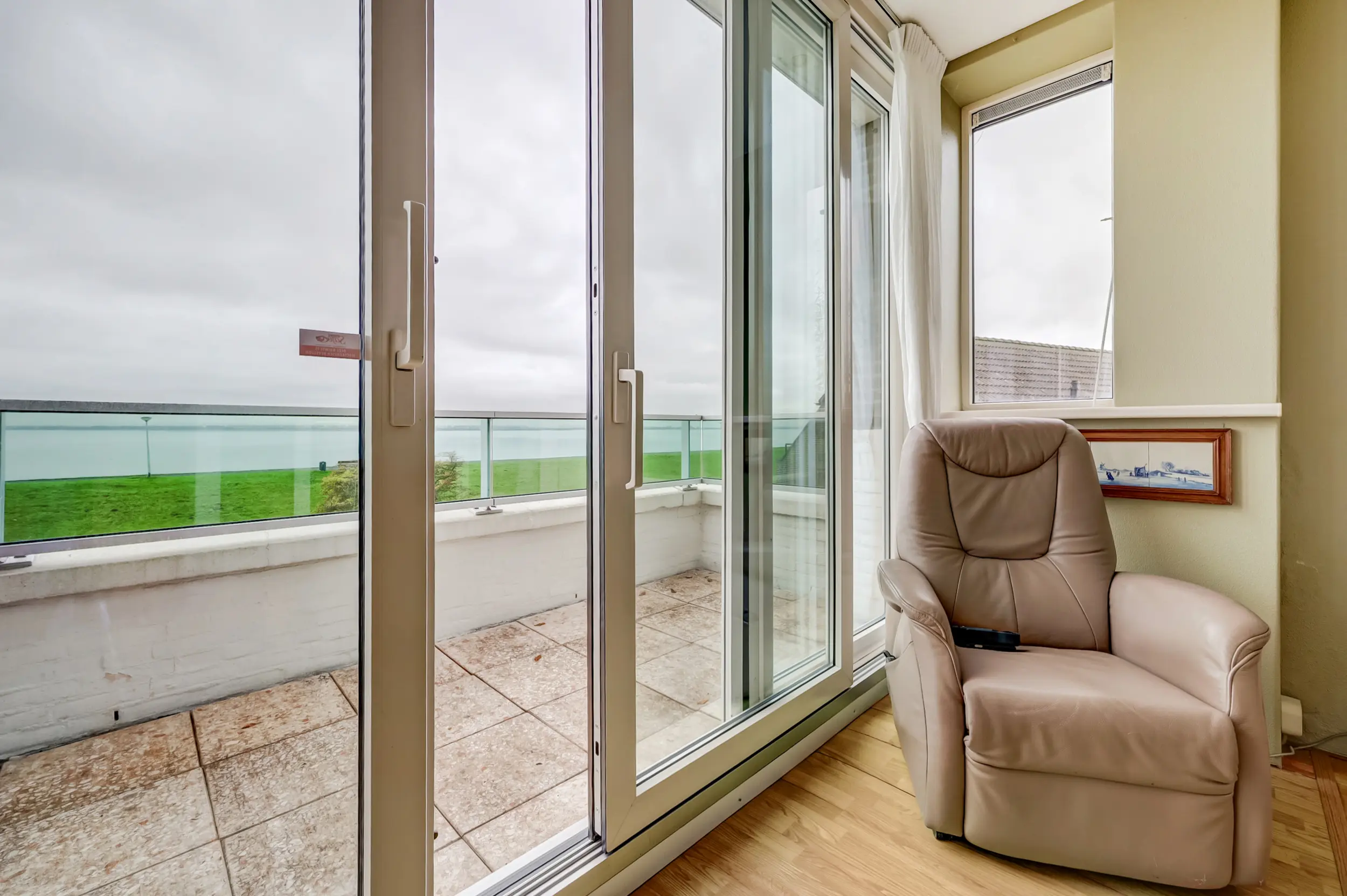 Aan het einde van de galerij, waaraan slechts 2 appartementen zijn, ligt dit hoekappartement. De entree van het appartement is ruim en doet zowel dienst als garderobe als bijkeuken. De wasmachine en droger zijn in het geheel uit zicht geplaatst. Vanuit hier kom je in de woonkamer met zicht op het Haringvliet. Dit uitzicht verveelt nooit! Elk jaargetijde is het anders. Bootjes, flora en fauna voor de deur! De keuken in U-opstelling met inbouwapparatuur is in een neutrale kleurstelling. De open keuken is gelegen aan de voorzijde van het appartement.