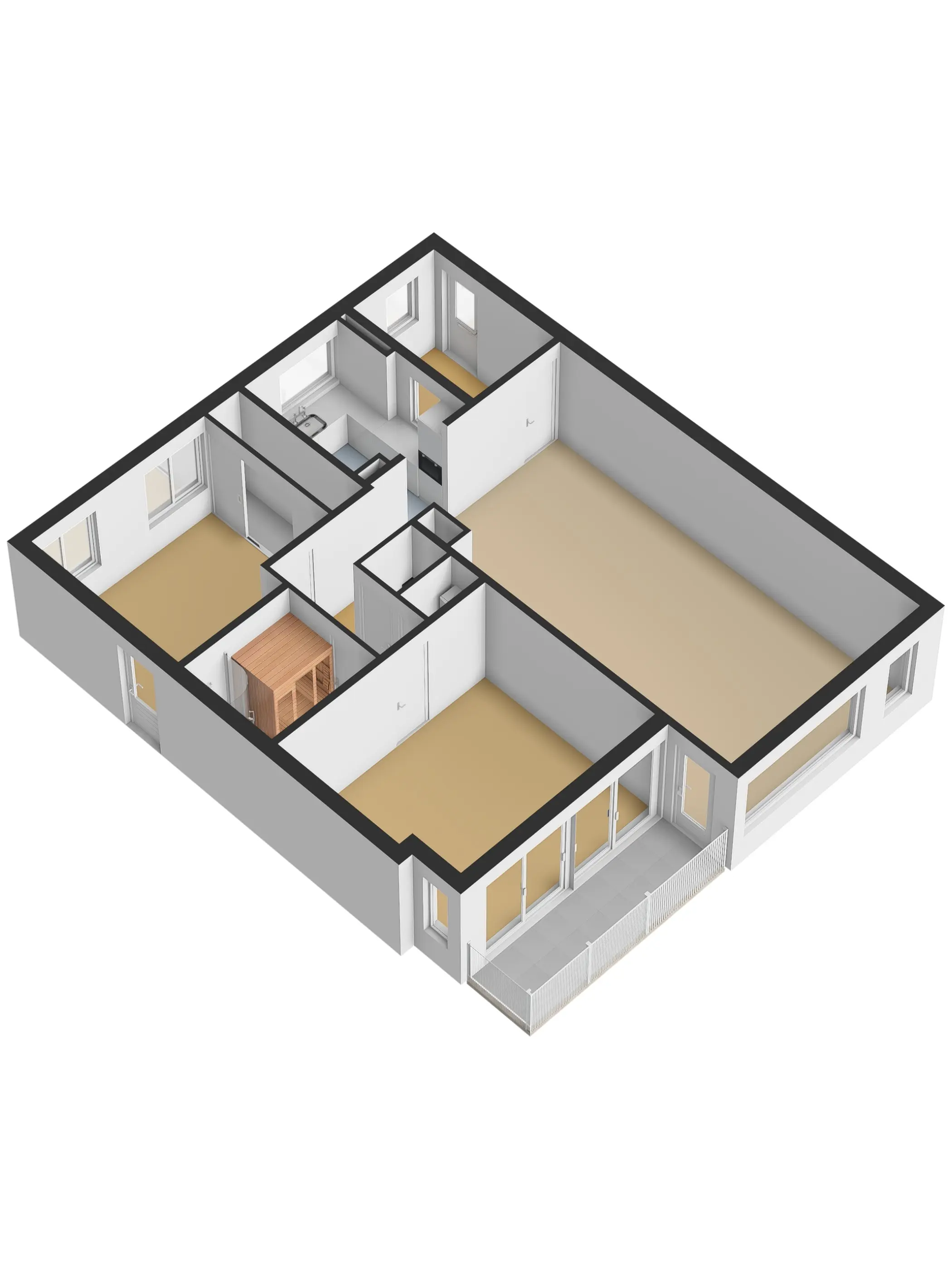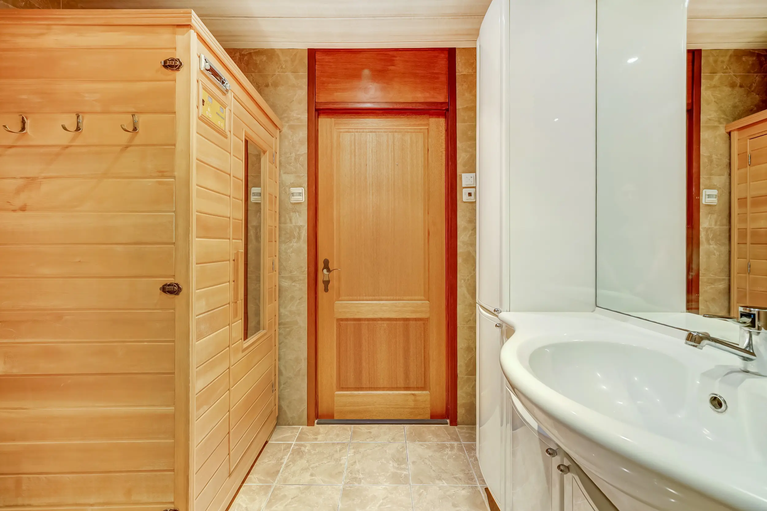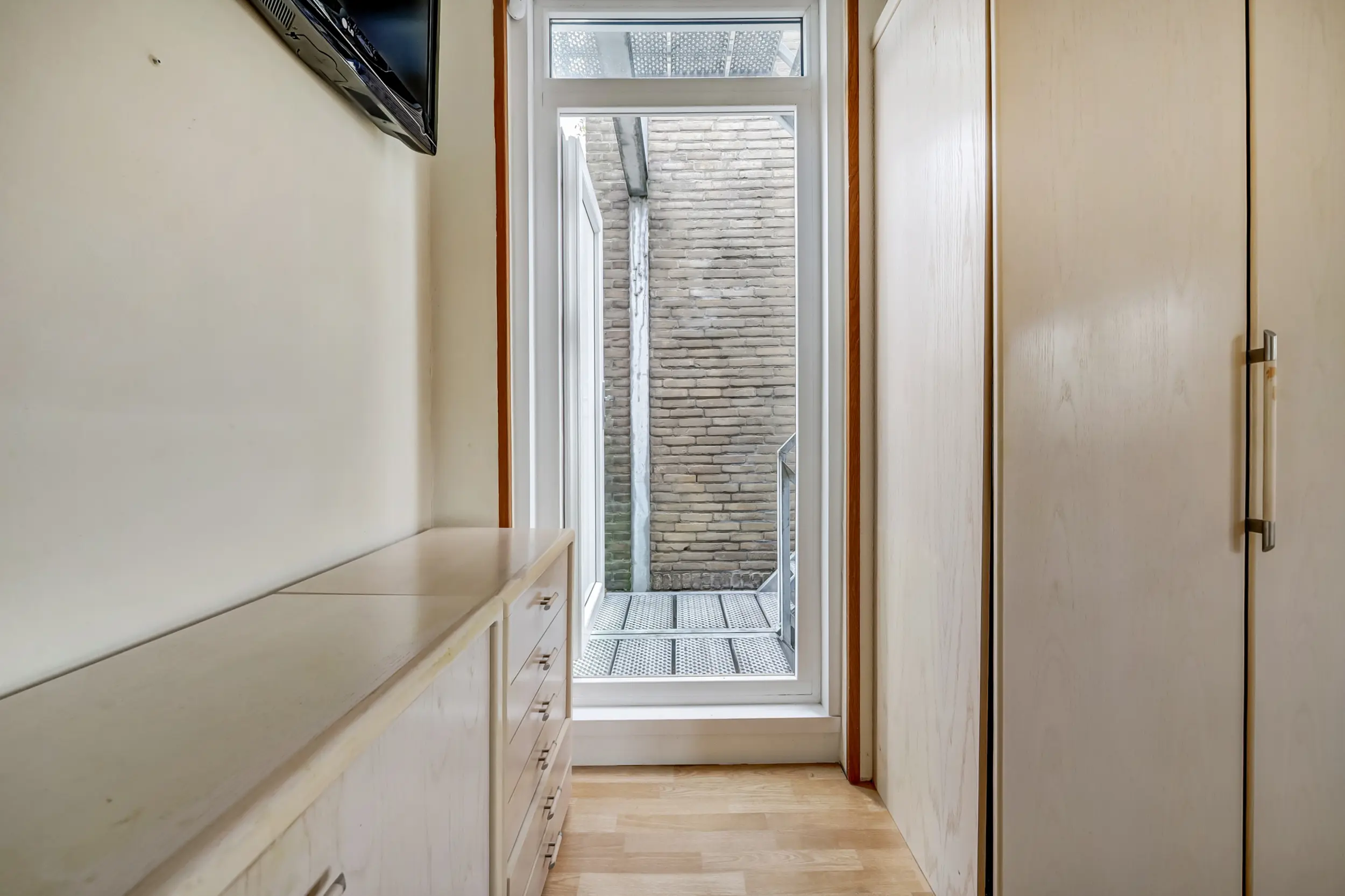 Een gang brengt je bij de 2 slaapkamers, de badkamer en het separate toilet. De badkamer is luxe! Deze is uitgerust met een eigen sauna, stoomdouchecabine, wastafelmeubel en is voorzien van vloerverwarming. Ideaal is dat in dit appartement een separaat toilet aanwezig is. Voor de CV-ketel (Vaillant 2024) en de mechanische ventilatie box is een aparte bergruimte. De slaapkamers zijn ruim. De slaapkamer aan de voorzijde heeft een deur naar de noodtrap en de andere slaapkamer met kastenwand grenst aan het dakterras. Deze kamer is vergroot waardoor er nog meer woonruimte is gecreëerd.