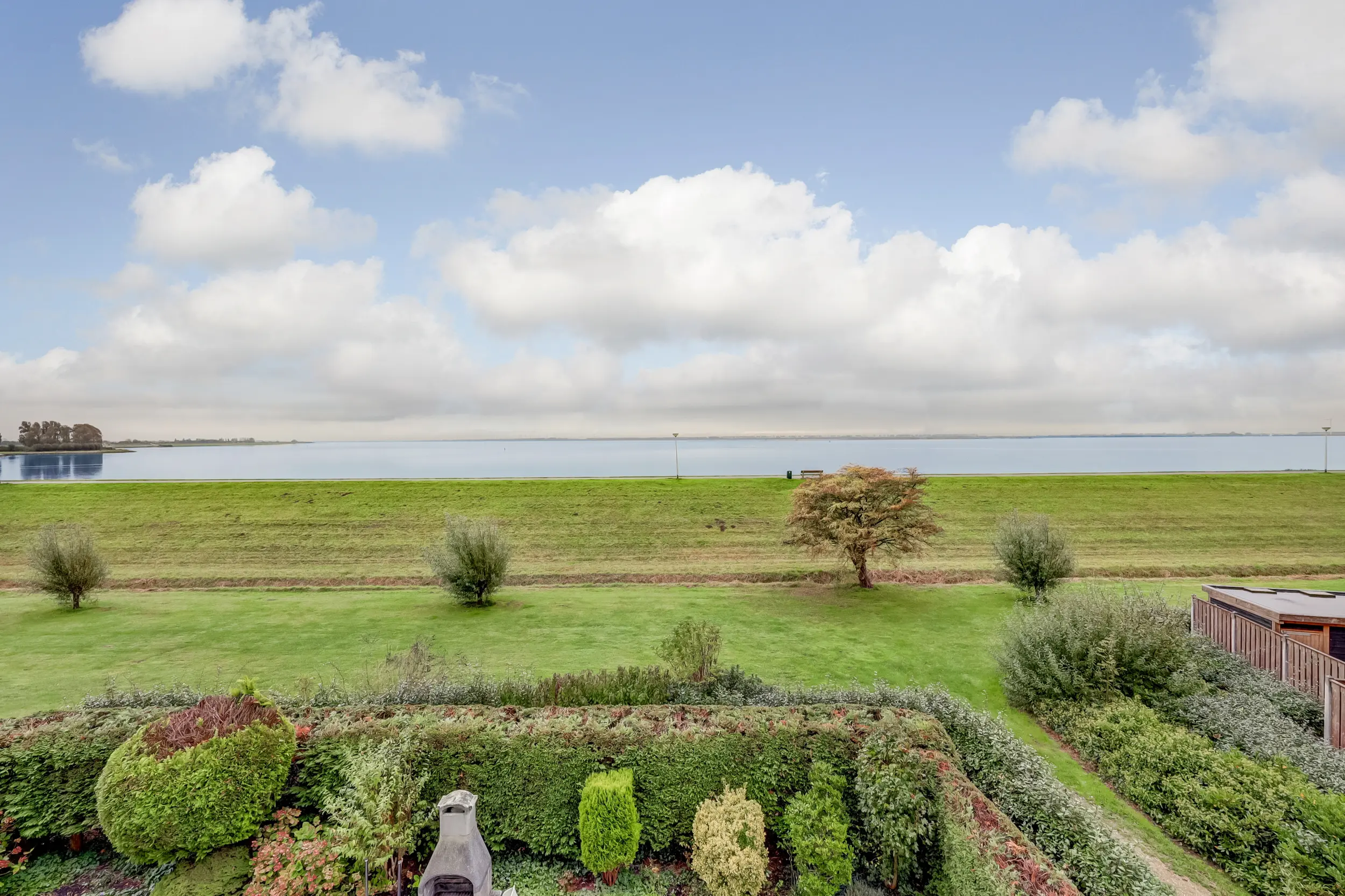 Het dakterras biedt voldoende plaats om heerlijk met elkaar te genieten van het uitzicht: De wandelaars en fietsers over de buitendijk; De voorbijvarende bootjes, de vogels op het water. En dat alles vanaf het eigen dakterras!