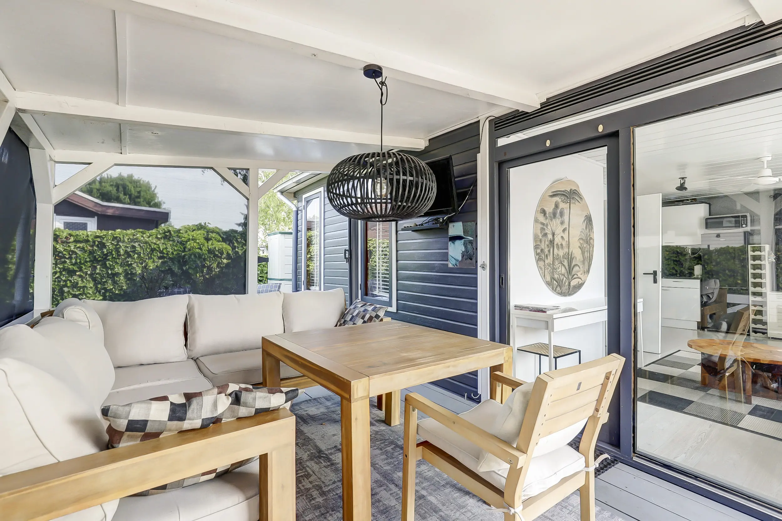 Via de keuken is de derde slaapkamer met vast 2-persoonsbed bereikbaar. De ruime veranda grenst aan de woonkamer.
