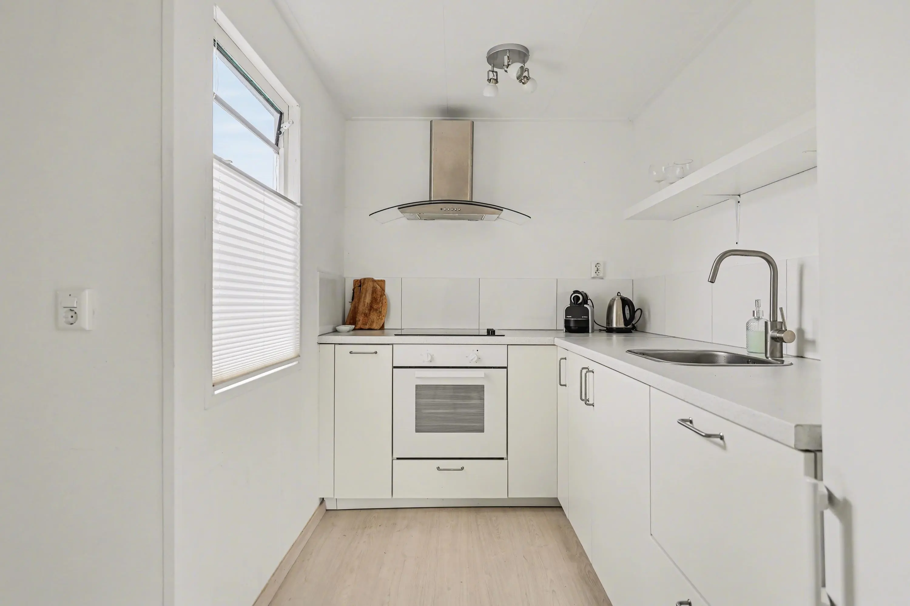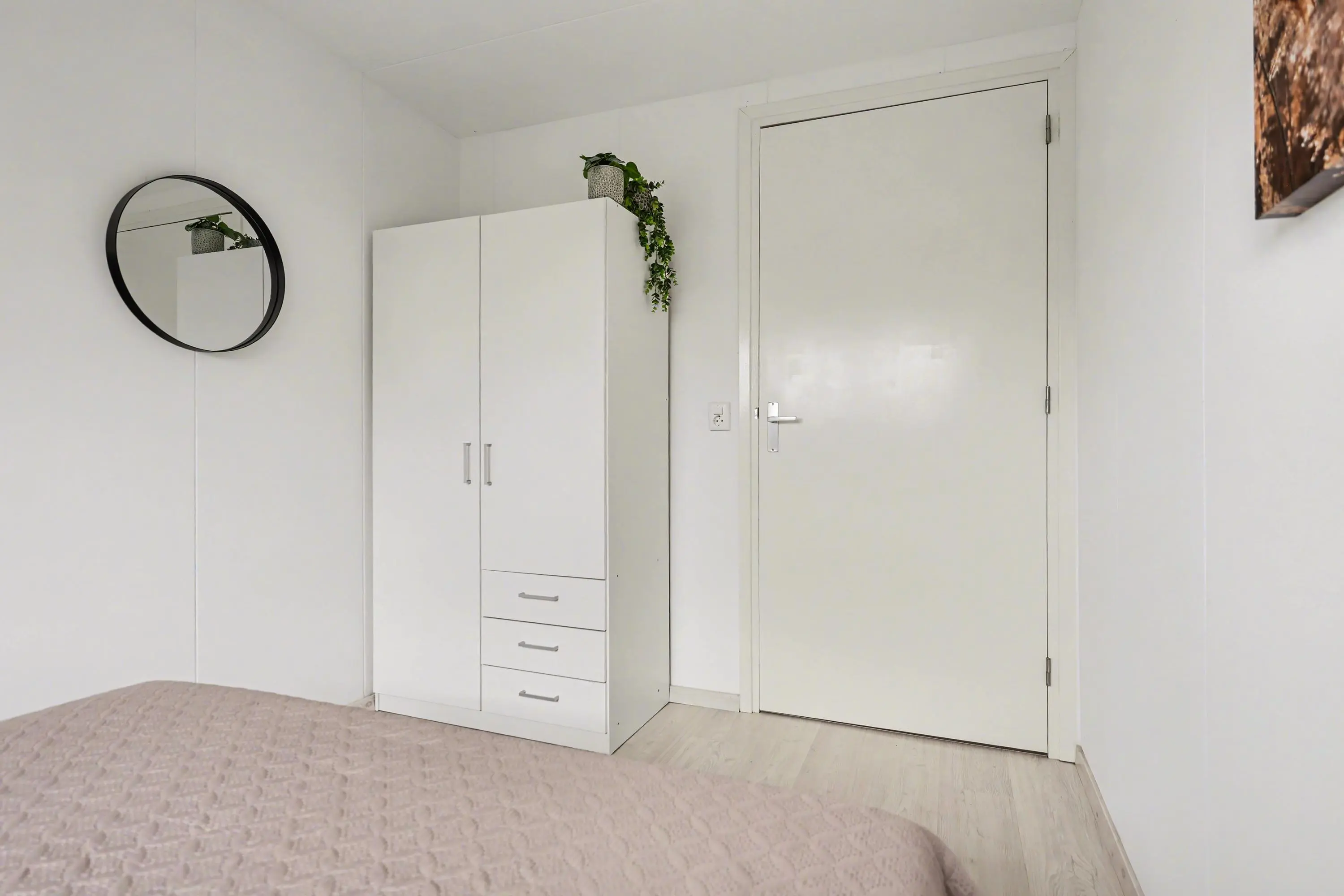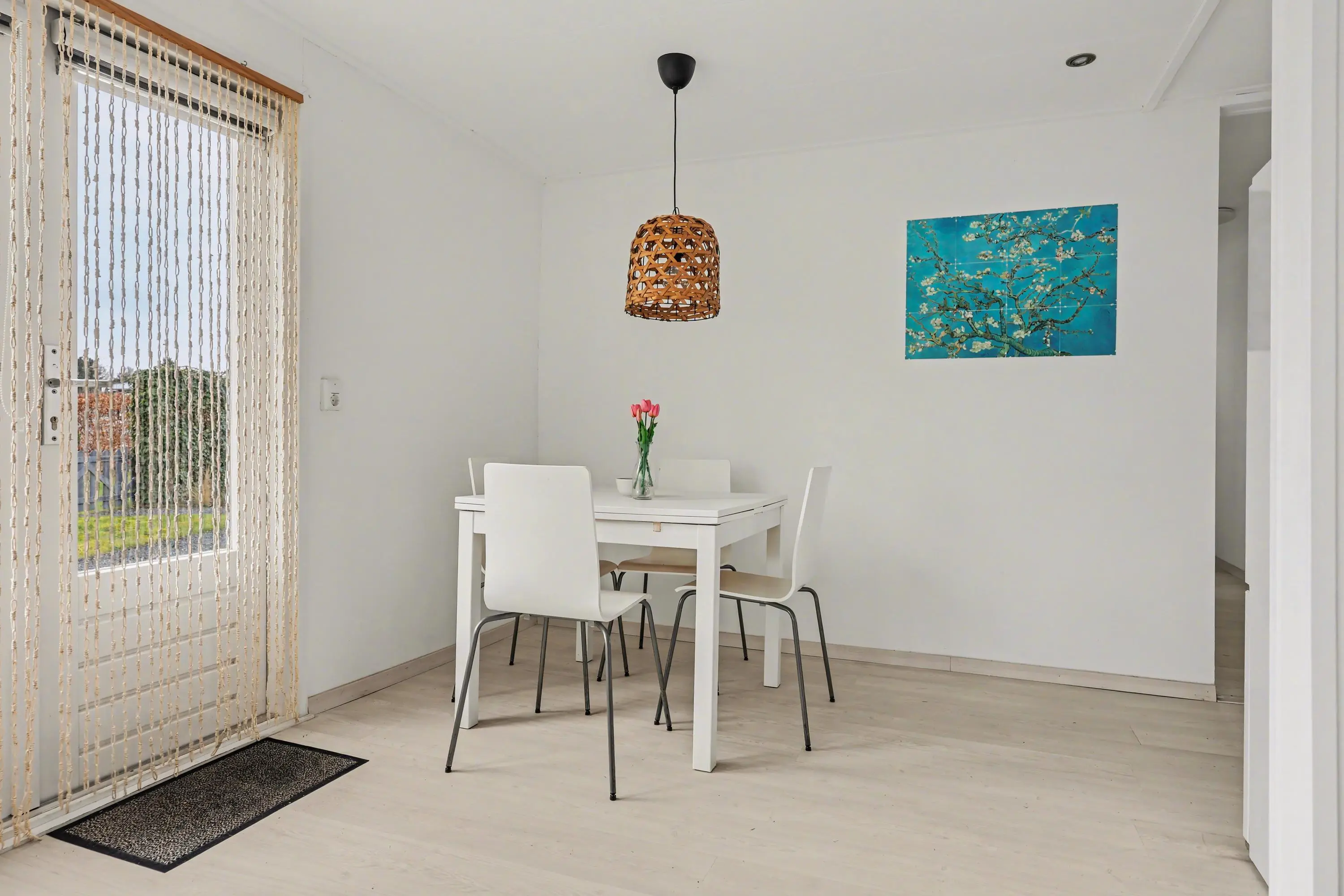 De dubbele tuindeuren geven je toegang tot de woonkamer van de woning. Door de verschillende ramen en de frisse inrichting maakt dit een fijne lichte ruimte. De open keuken in een hoekopstelling van 2019 is voorzien van (inbouw-) apparatuur zoals de inductiekookplaat, oven, afzuigkap, koelkast en vriezer. De woning heeft drie slaapkamers. Twee daarvan zijn ingericht met een 2-persoonsbed en kasten. De derde slaapkamer heeft een stapelbed en een kast.
