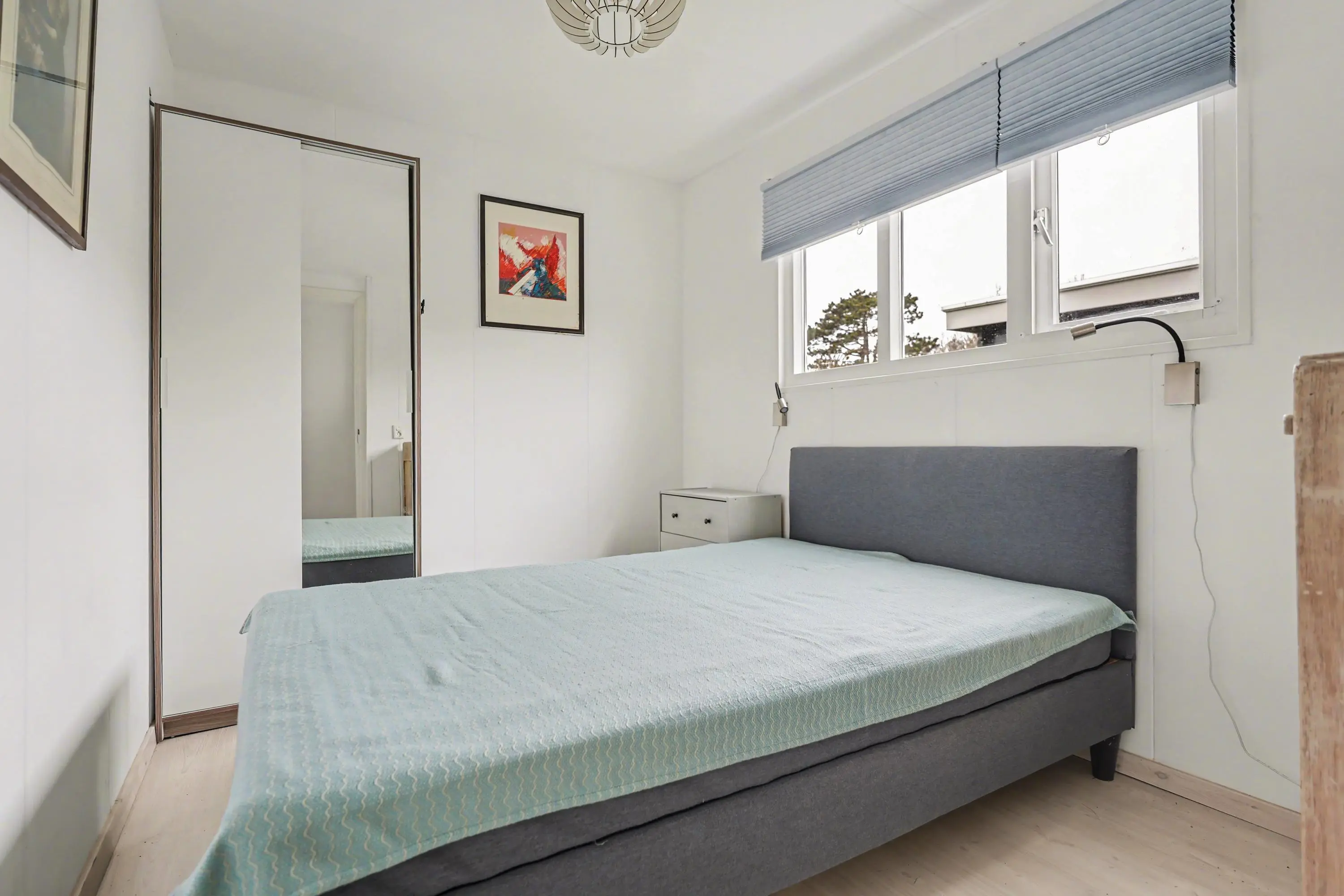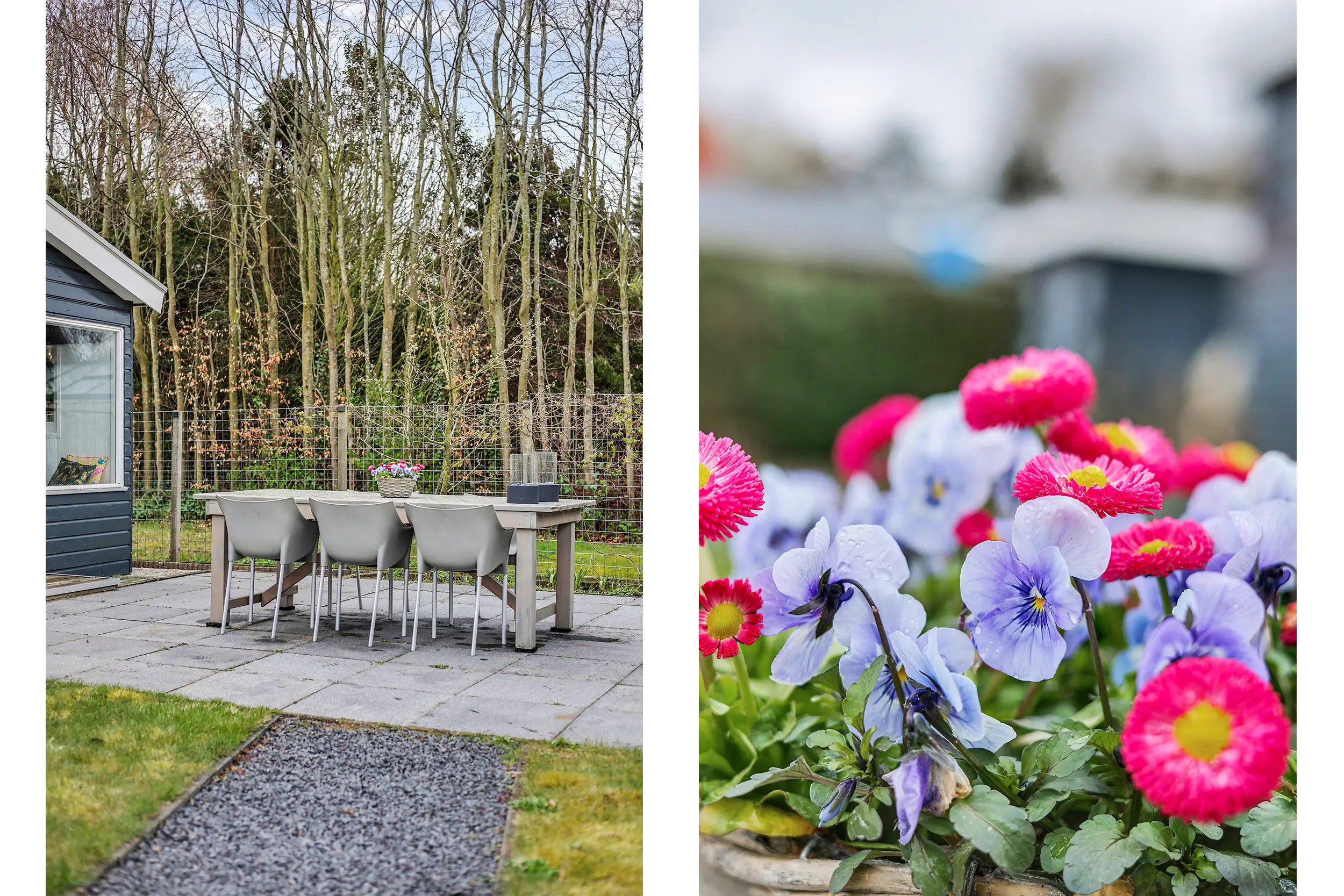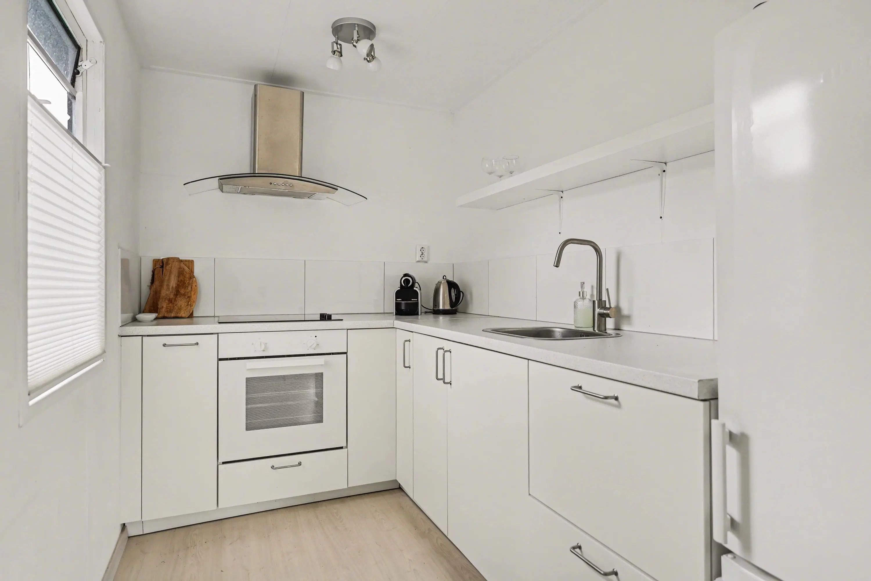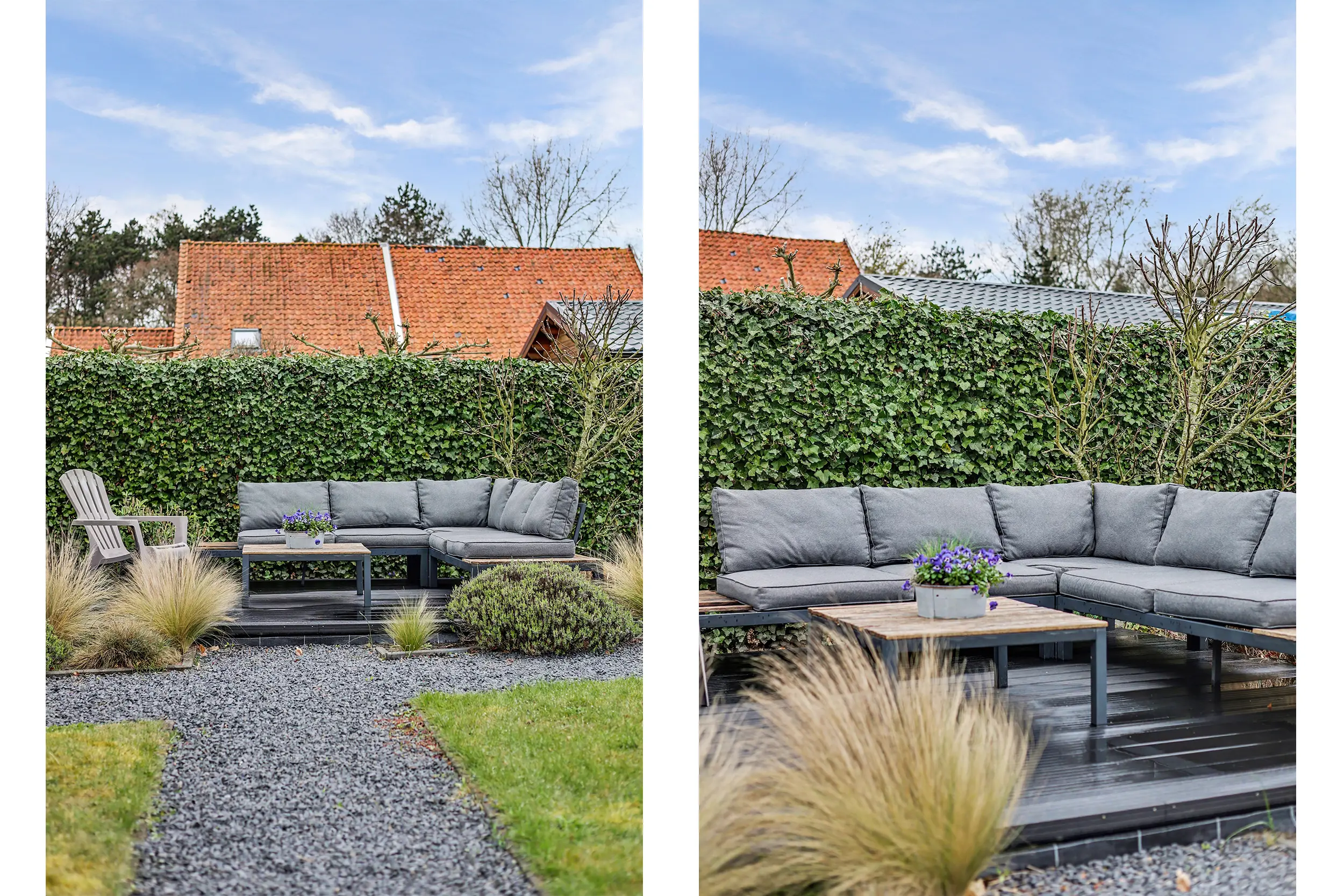 De dubbele tuindeuren geven je toegang tot de woonkamer van de woning. Door de verschillende ramen en de frisse inrichting maakt dit een fijne lichte ruimte. De open keuken in een hoekopstelling van 2019 is voorzien van (inbouw-) apparatuur zoals de inductiekookplaat, oven, afzuigkap, koelkast en vriezer. De woning heeft drie slaapkamers. Twee daarvan zijn ingericht met een 2-persoonsbed en kasten. De derde slaapkamer heeft een stapelbed en een kast.