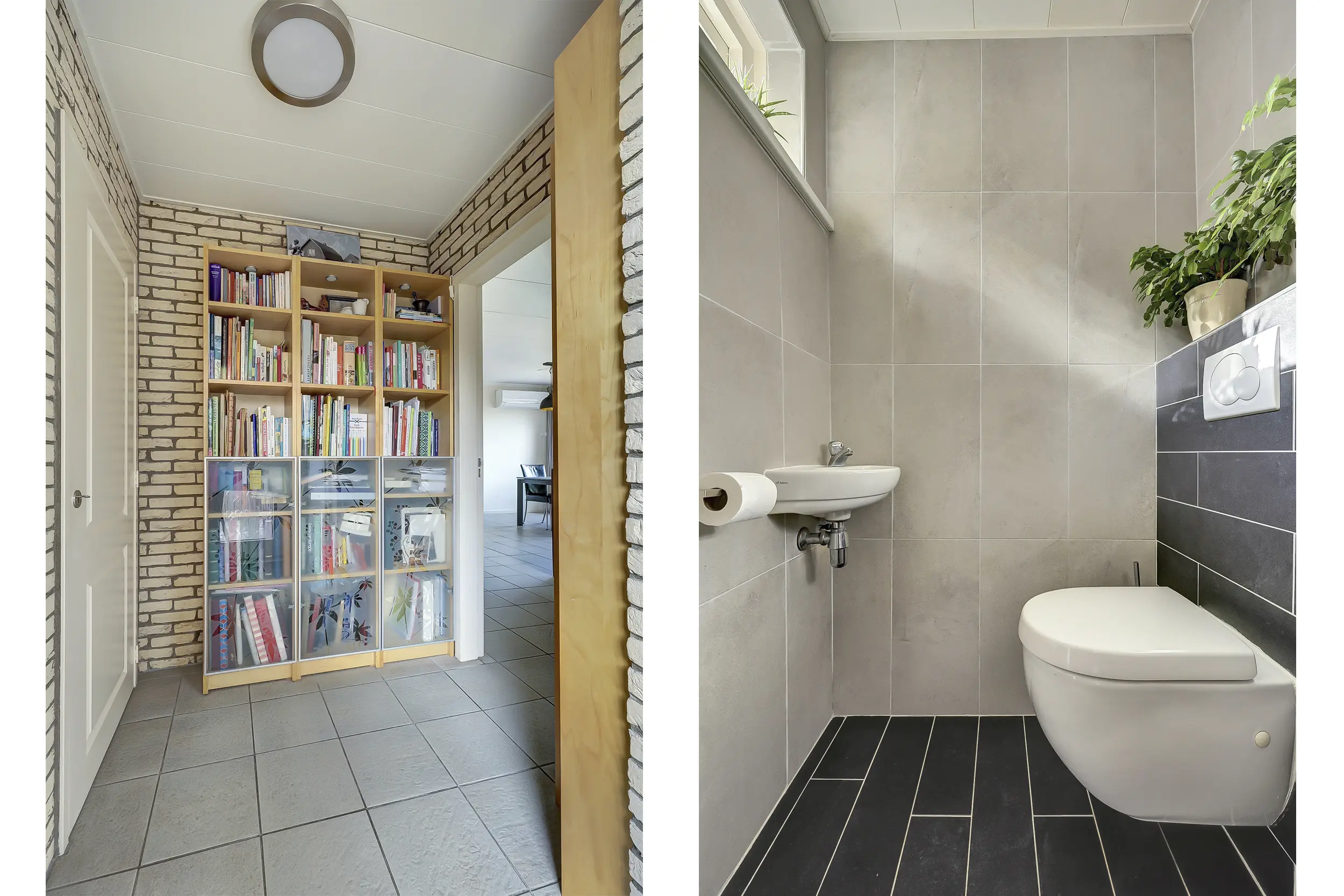 De entree is aan de zijkant van de woning. In de entree/hal vindt je de meterkast, garderobe en een modern toilet.