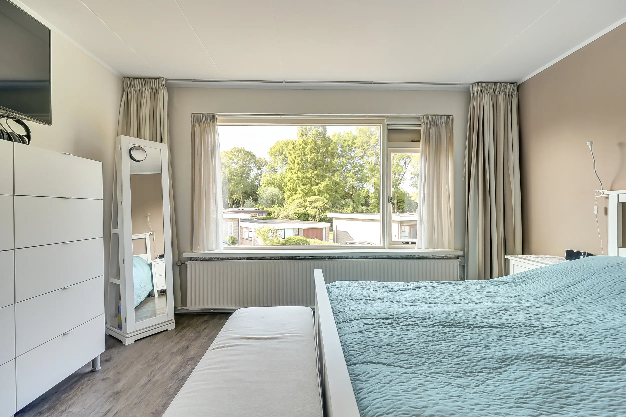 Via de open trap in de woonkamer kom je op de overloop. Vanuit hier zijn de drie slaapkamers bereikbaar waarvan de master is voorzien van een airco unit.