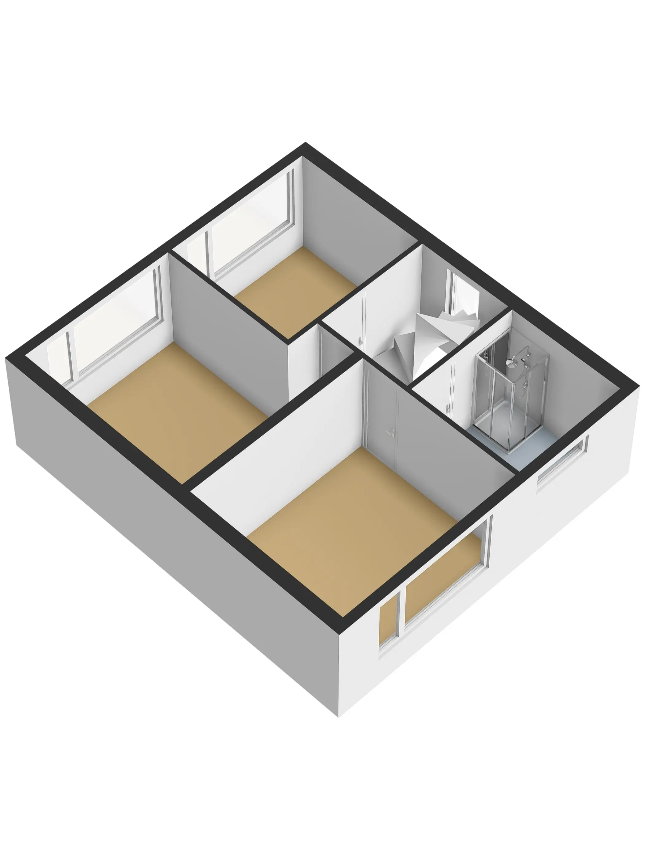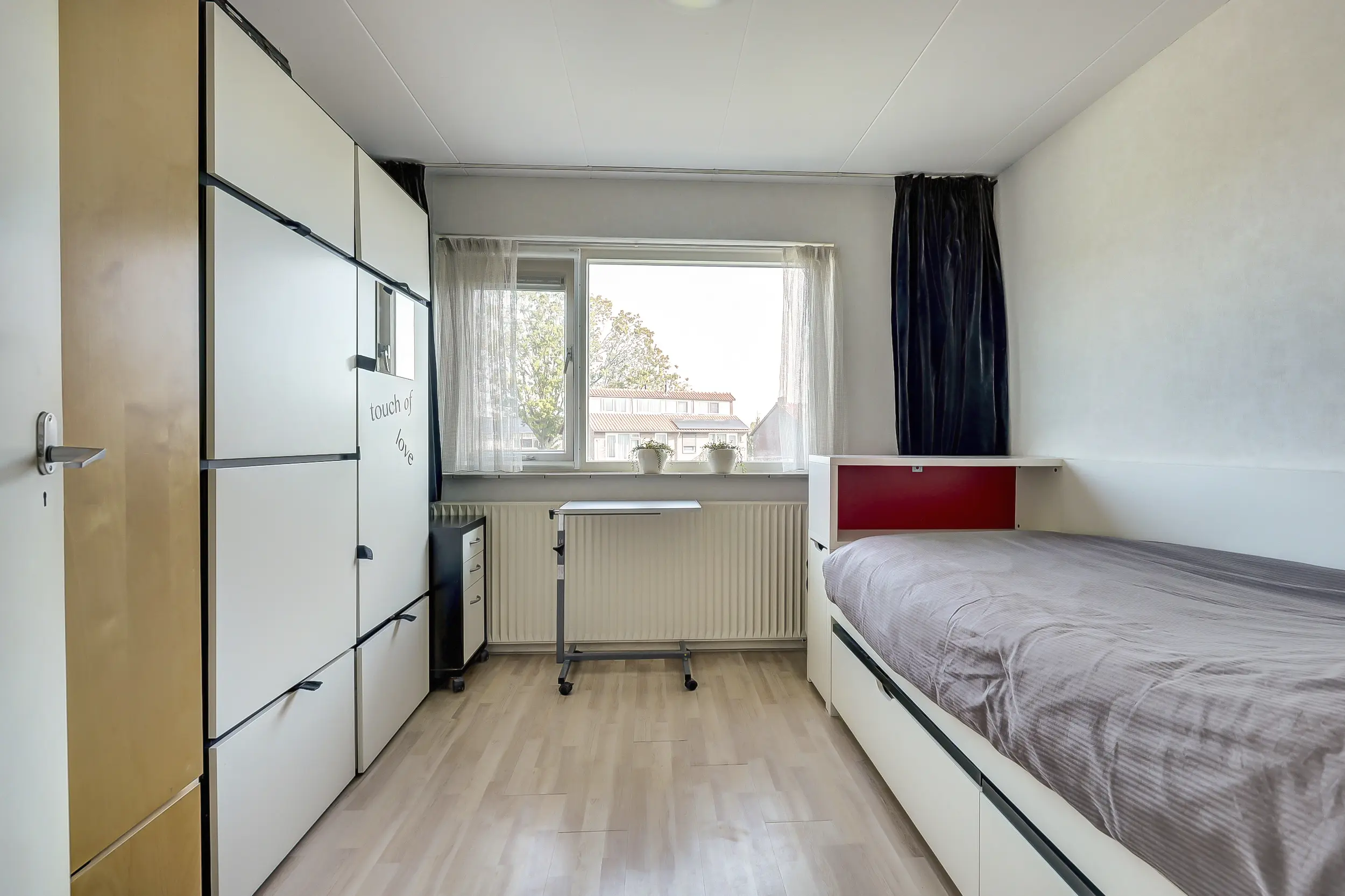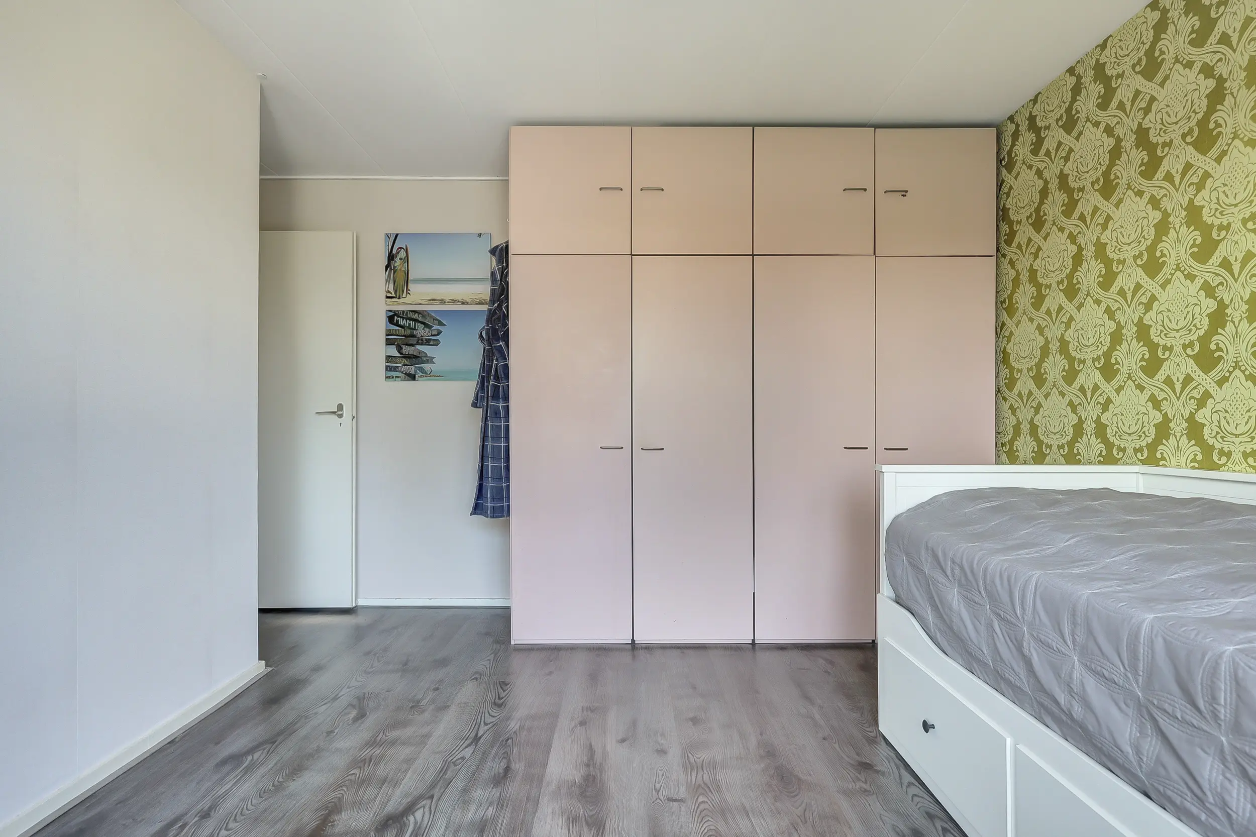 Via de vaste trap ga je naar de tweede verdieping die verrassend ruim is. Een overloop met bergruimte en twee kamers met dakkapel. Goed te gebruiken als slaap- en -of werkkamer.