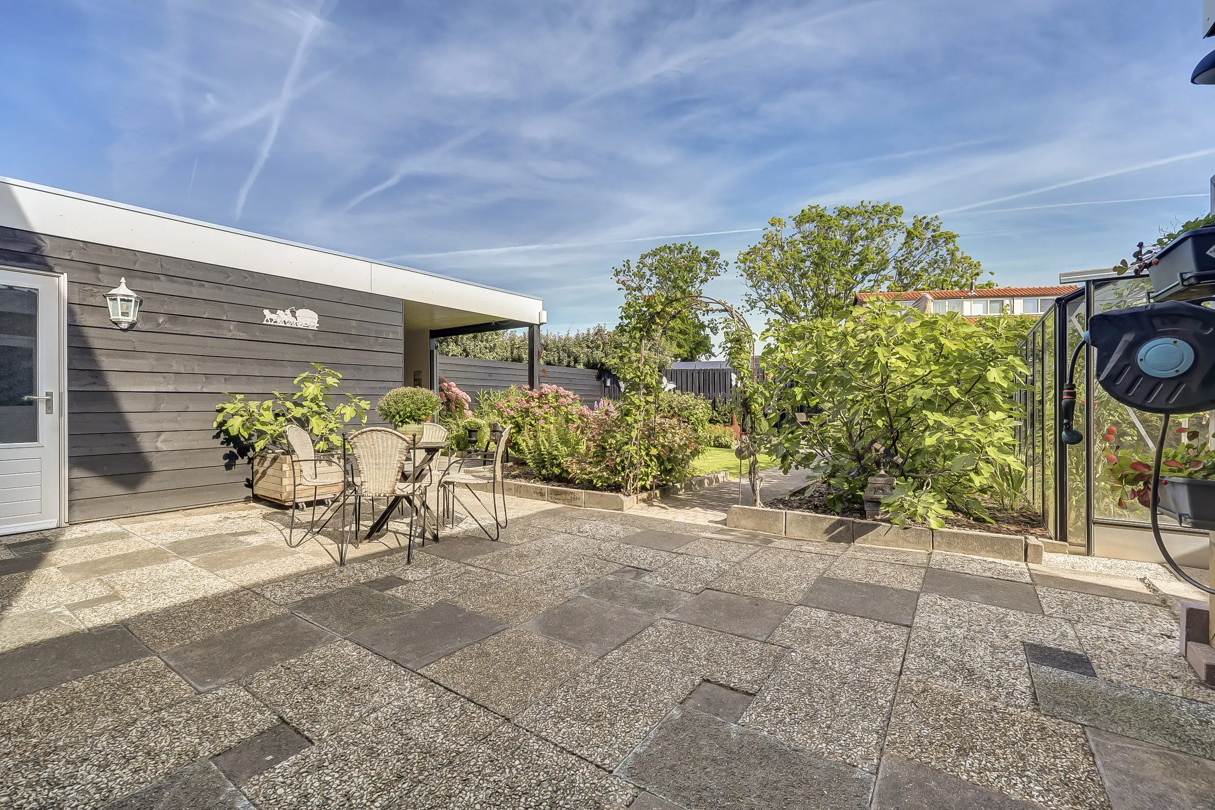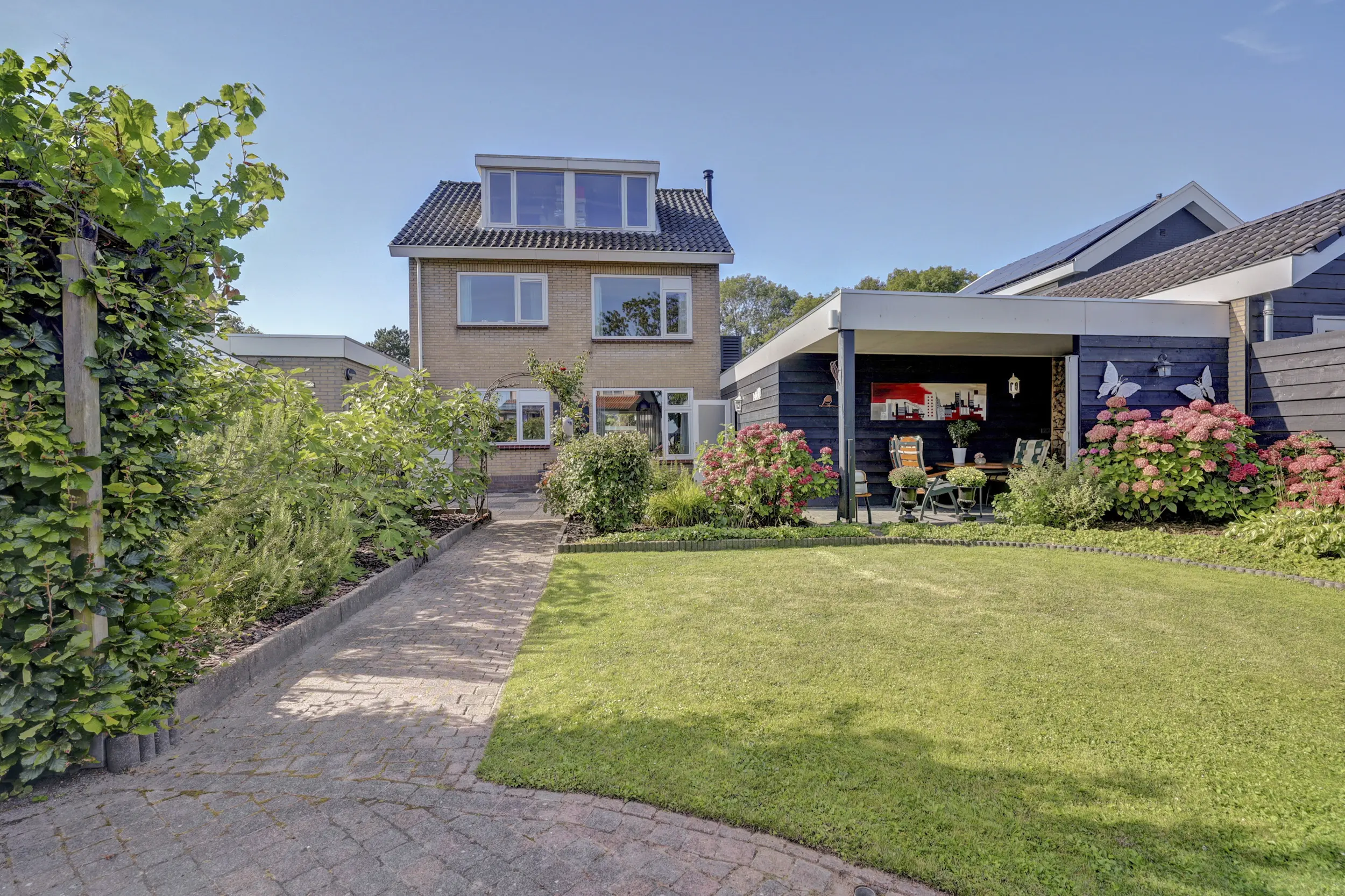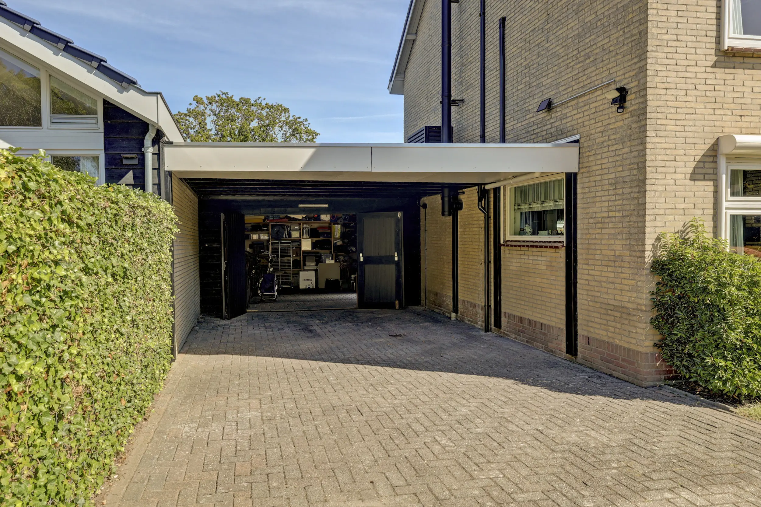 De woning is gelegen op een ruim perceel met parkeerruimte voor meerdere auto’s op eigen terrein. Daarbij is op de oprit een carport met daarachter de garage/berging met dubbele deuren en tuindeur naar de tuin. Een stenen berging is tevens in gebruik als verwarmingsruimte met een HR combiketel en hybride warmtepompboiler (2023). De verrassende grote achtertuin heeft onder meer een gazon, borders, een tuinkas, een tuinhuis en een sfeervolle overkapping waar vanuit je van dit alles kan genieten.