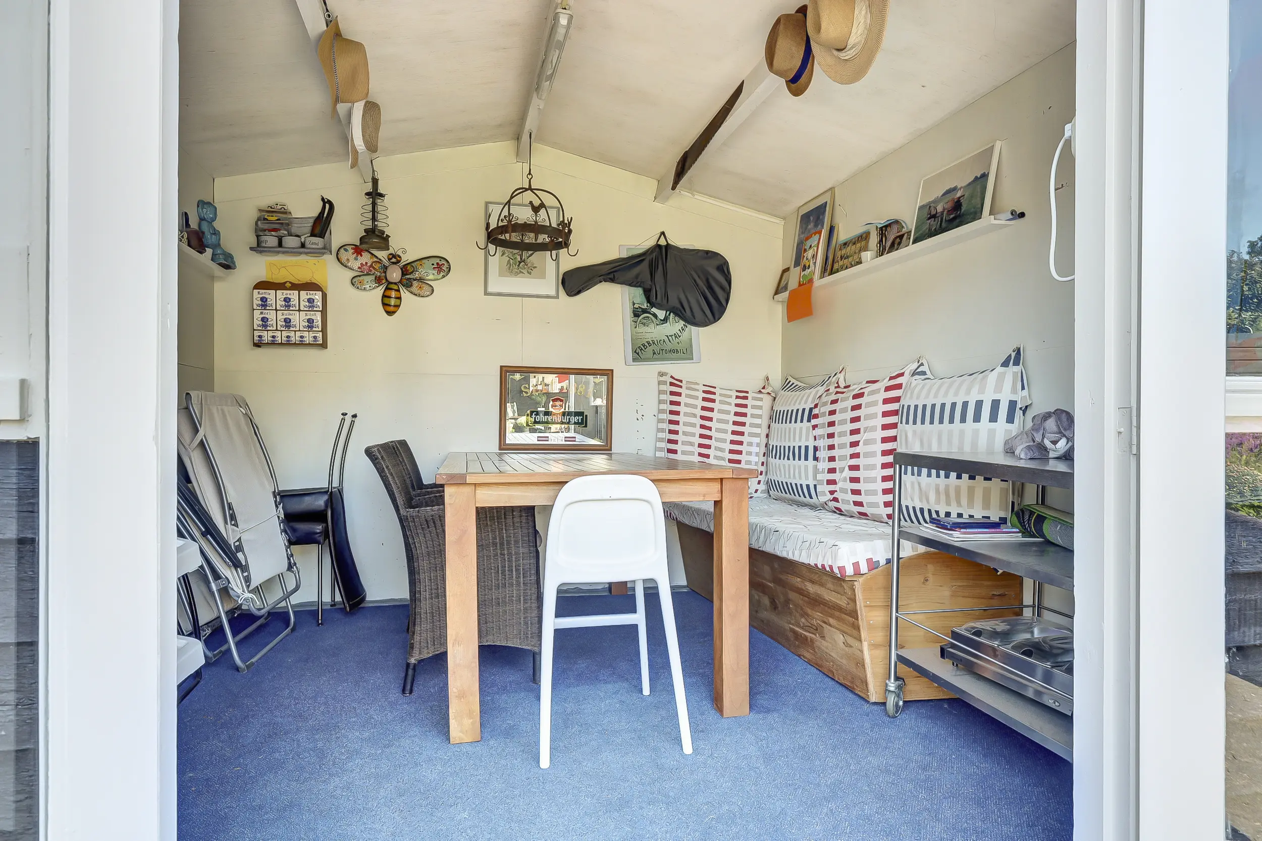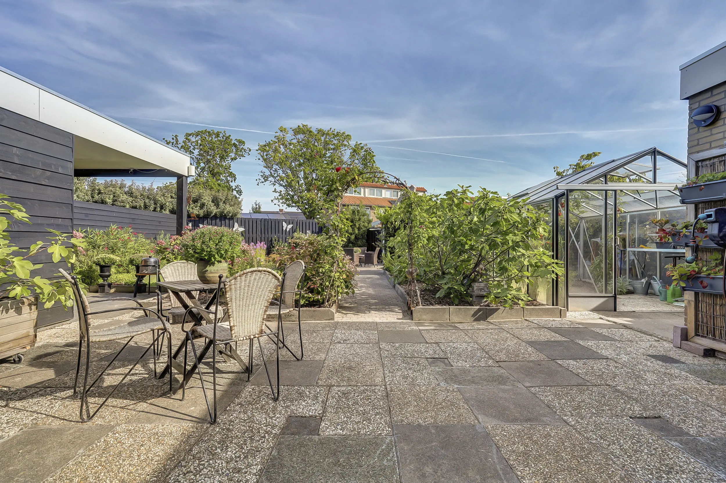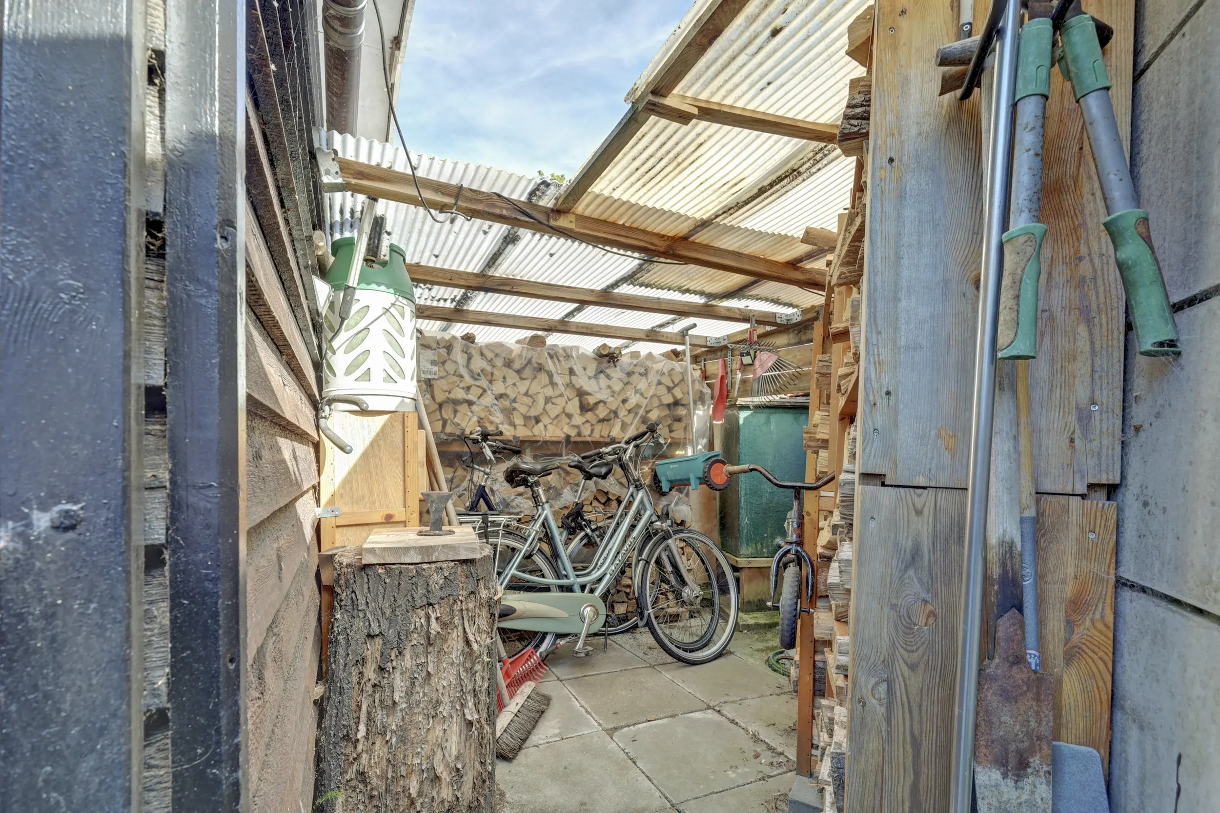 De woning is gelegen op een ruim perceel met parkeerruimte voor meerdere auto’s op eigen terrein. Daarbij is op de oprit een carport met daarachter de garage/berging met dubbele deuren en tuindeur naar de tuin. Een stenen berging is tevens in gebruik als verwarmingsruimte met een HR combiketel en hybride warmtepompboiler (2023). De verrassende grote achtertuin heeft onder meer een gazon, borders, een tuinkas, een tuinhuis en een sfeervolle overkapping waar vanuit je van dit alles kan genieten.