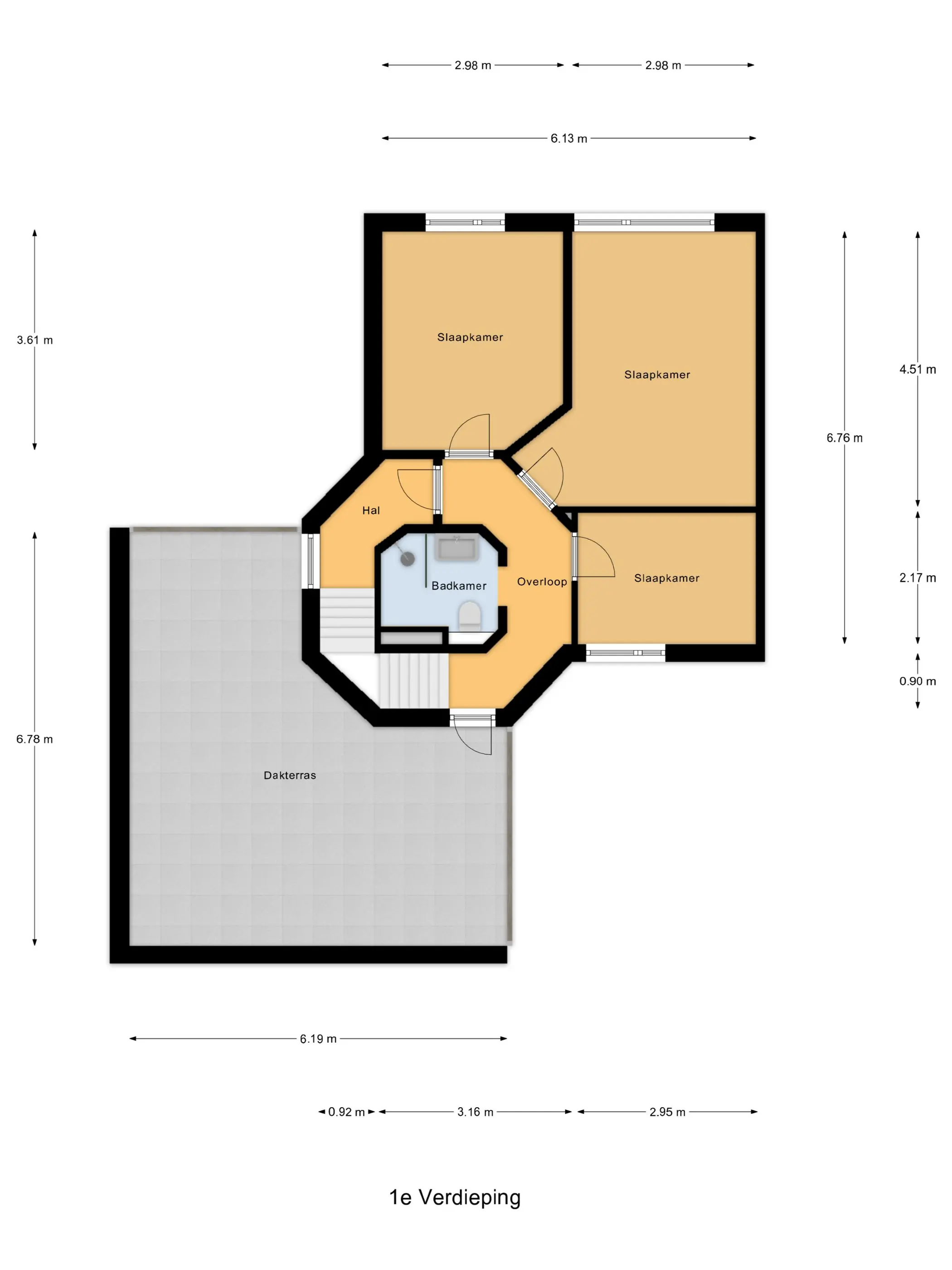 Deze verdieping heeft een unieke kamer welke rondom ramen heeft, de zogenaamde torenkamer! Ideaal als werkkamer of slaapkamer.