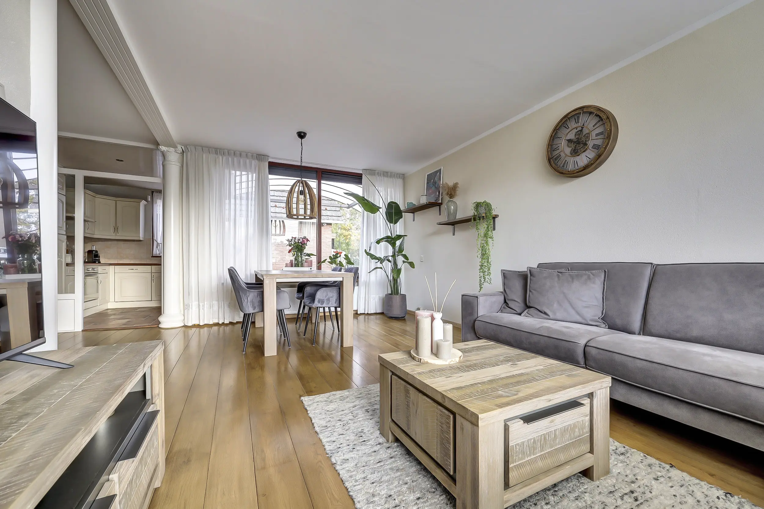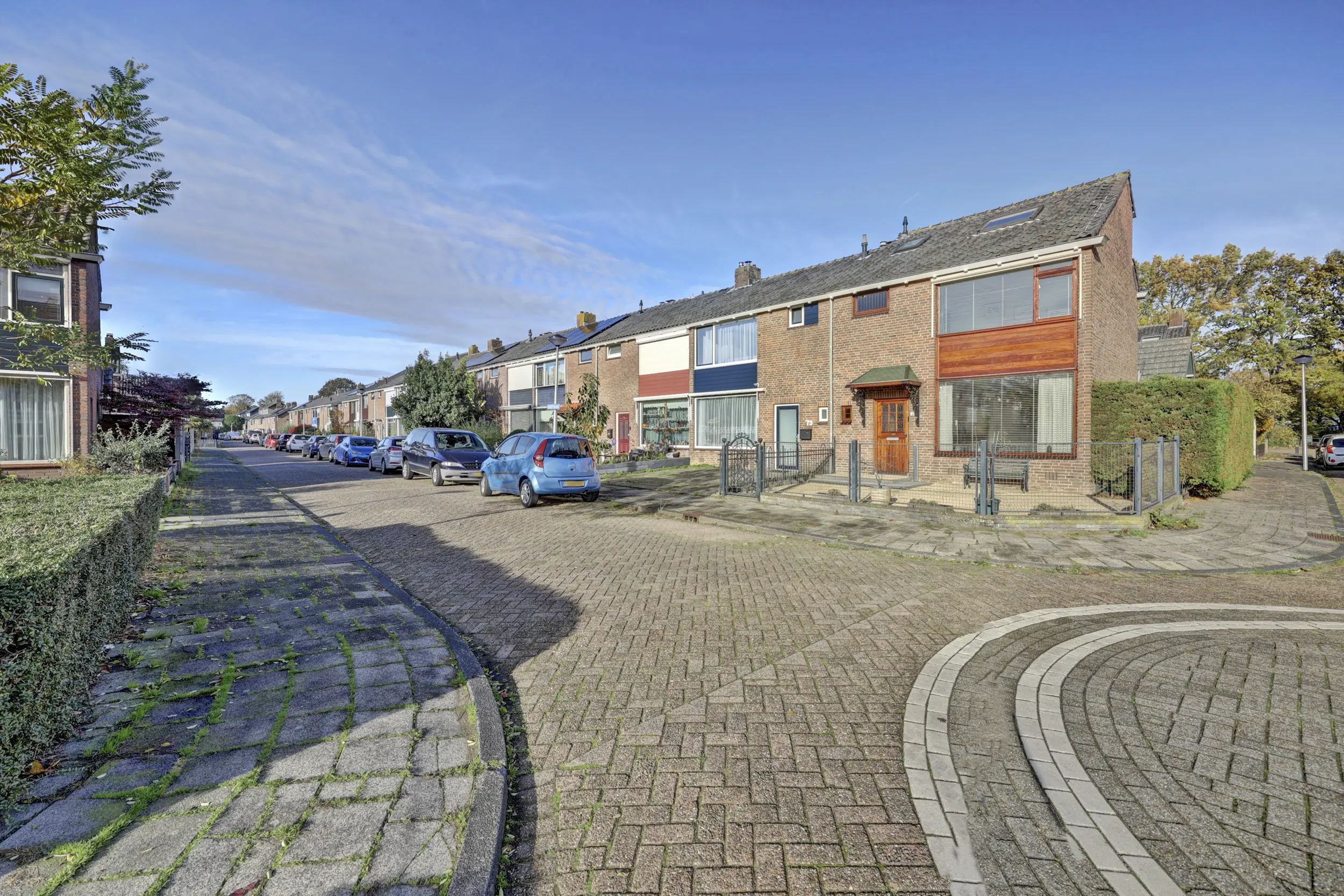 - Hoekwoning met voor-, zij-, en achtertuin.