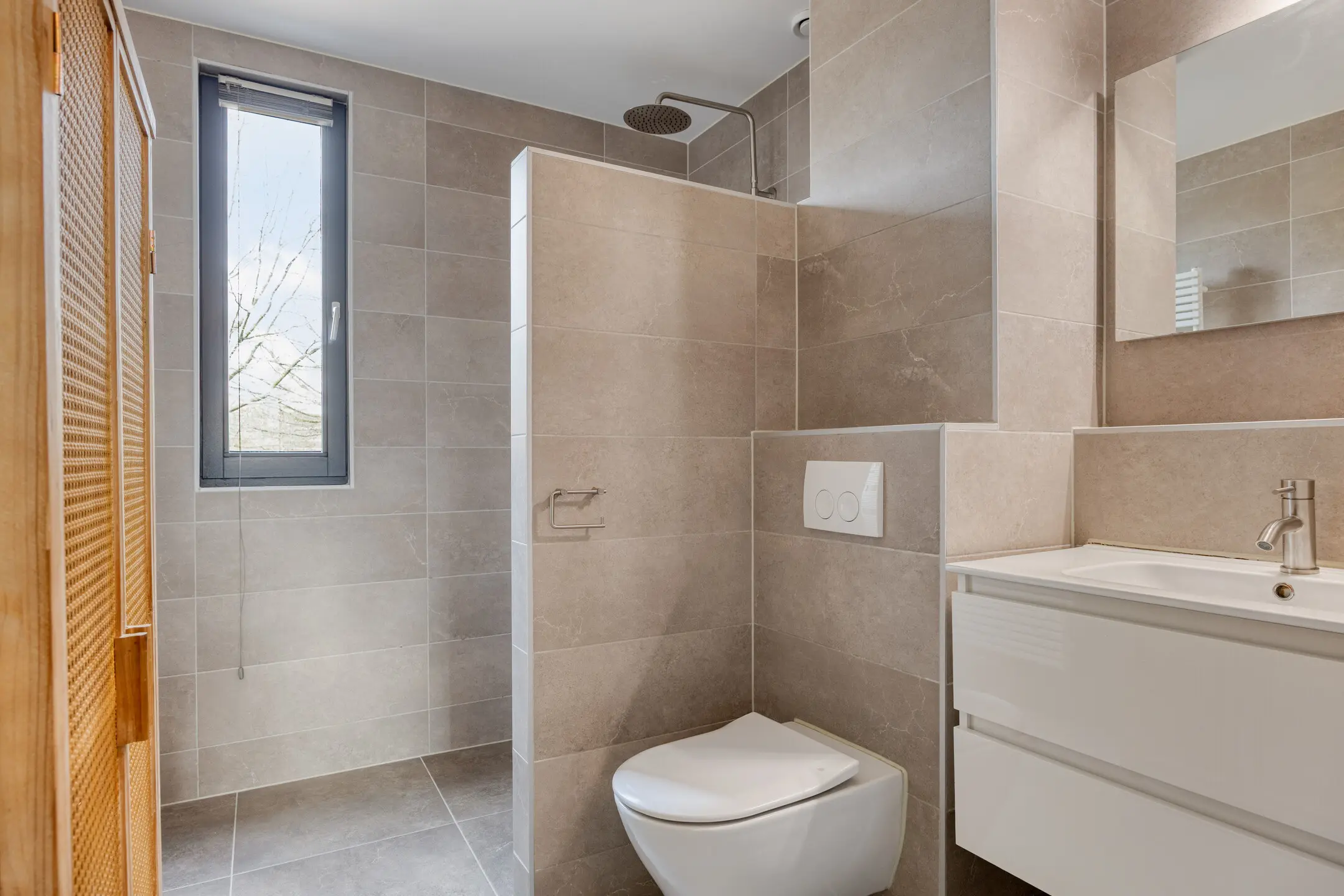 - Moderne badkamer met toilet, wastafelmeubel en inloopdouche