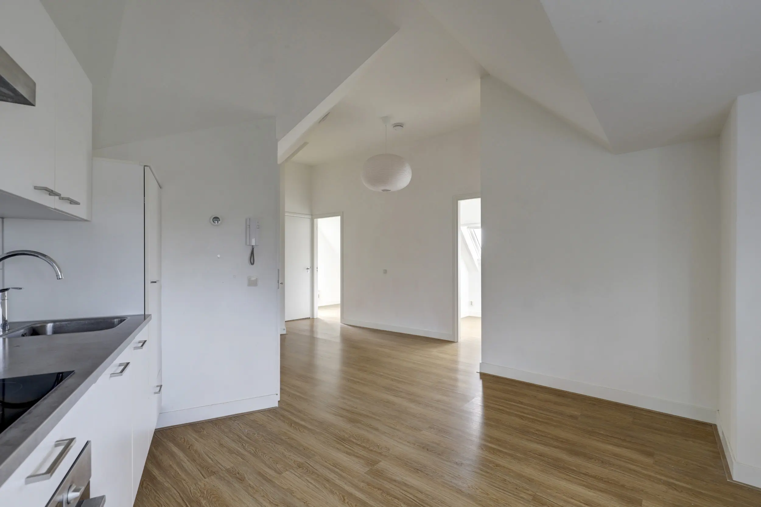 De woonkamer is aangenaam licht dankzij de grote raampartijen en de hoekligging. De open keuken sluit naadloos aan op de leefruimte en is voorzien van diverse inbouwapparatuur, ideaal voor dagelijks gebruik en om gezellig te koken.