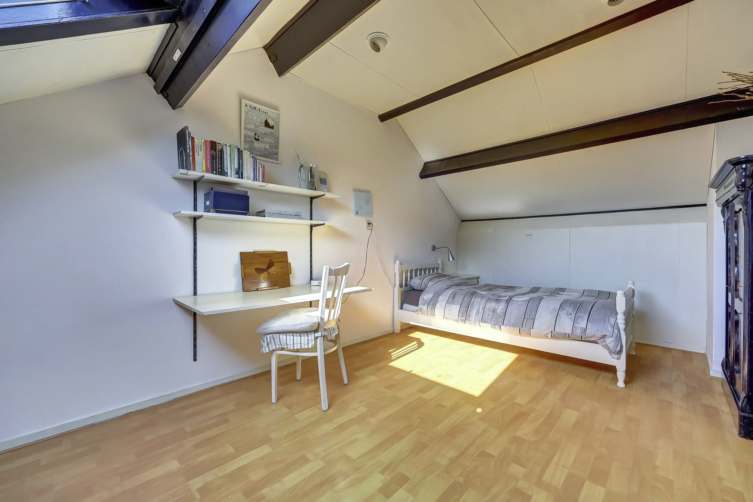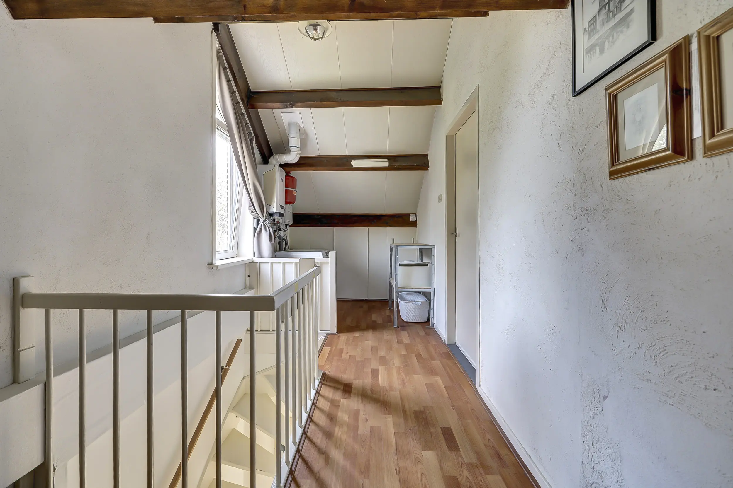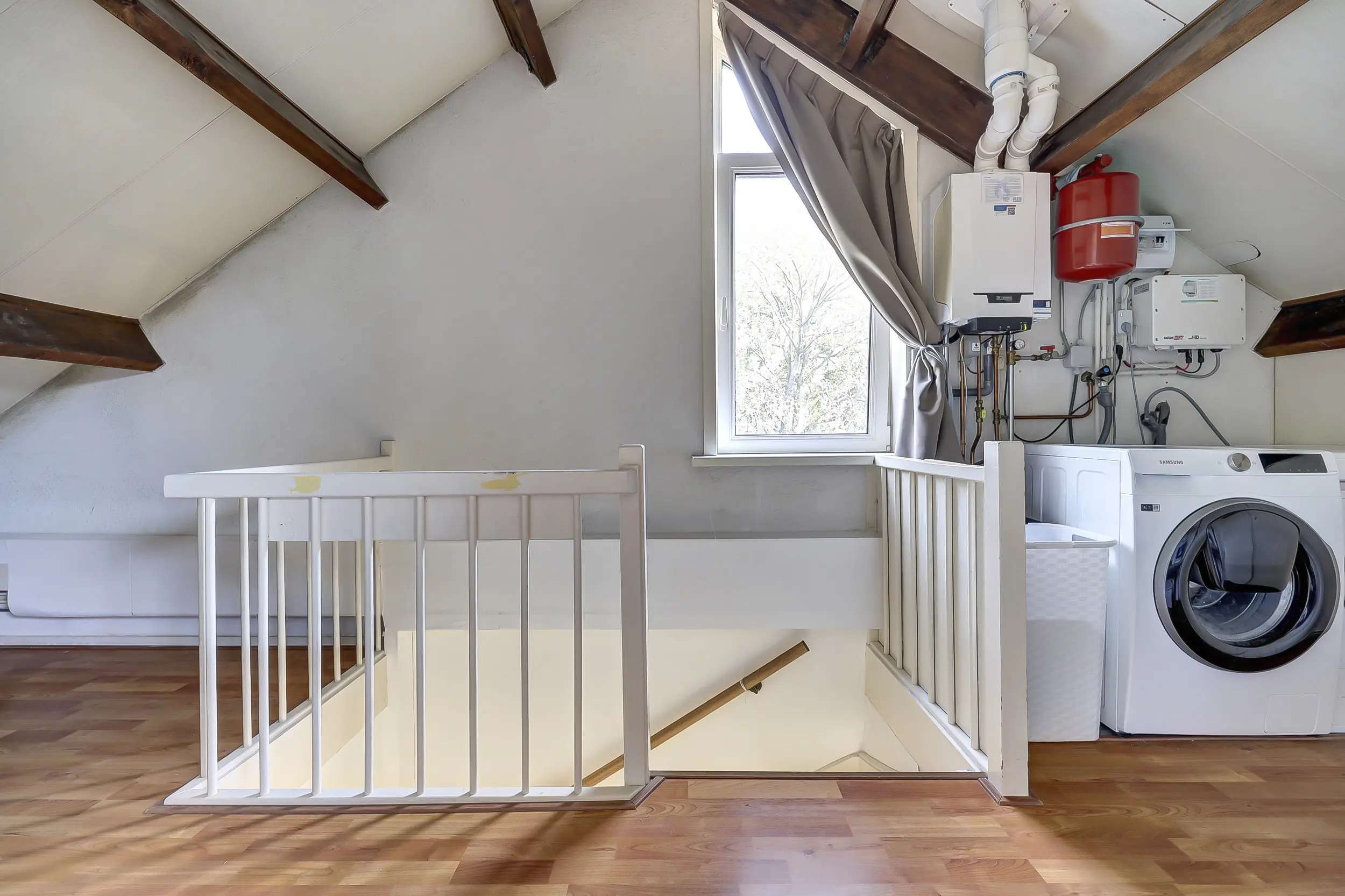 Een vaste trap brengt je naar de 2e verdieping met voorzolder waar de HR-combiketel is en ook de aansluiting voor de wasmachine en -droger en bergruimte. De vierde slaapkamer heeft knieschot bergingen en is voorzien van een dakraam.