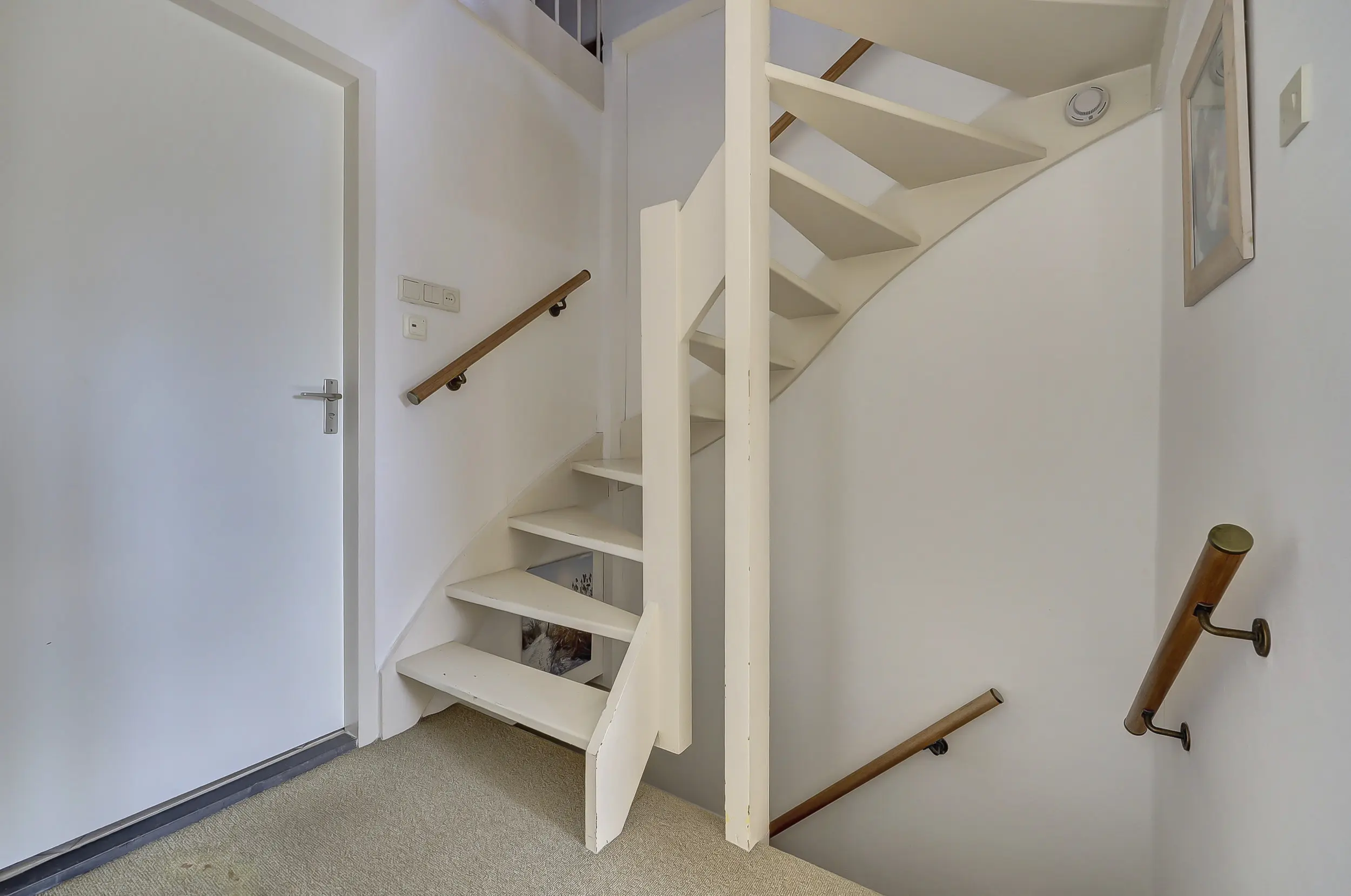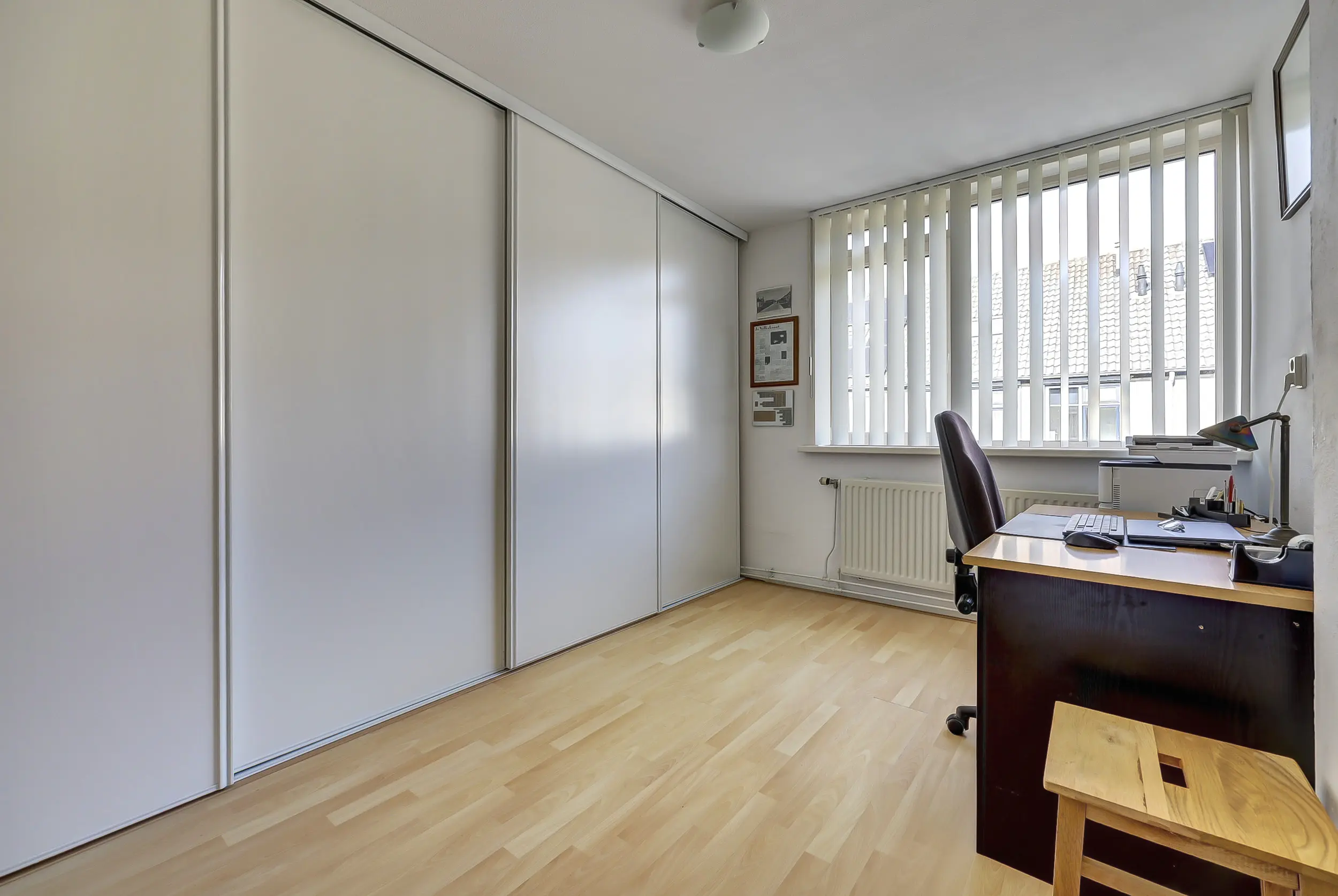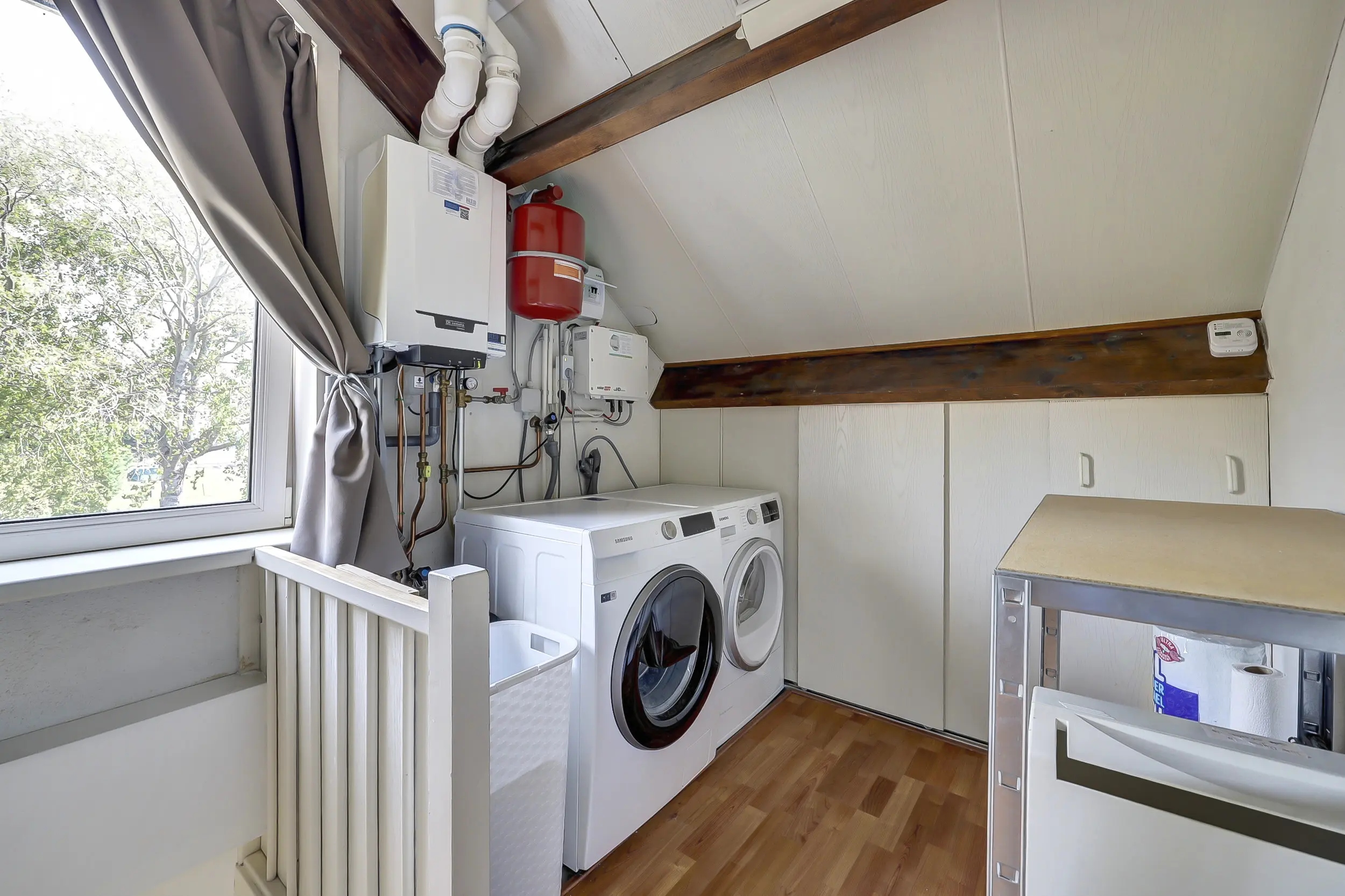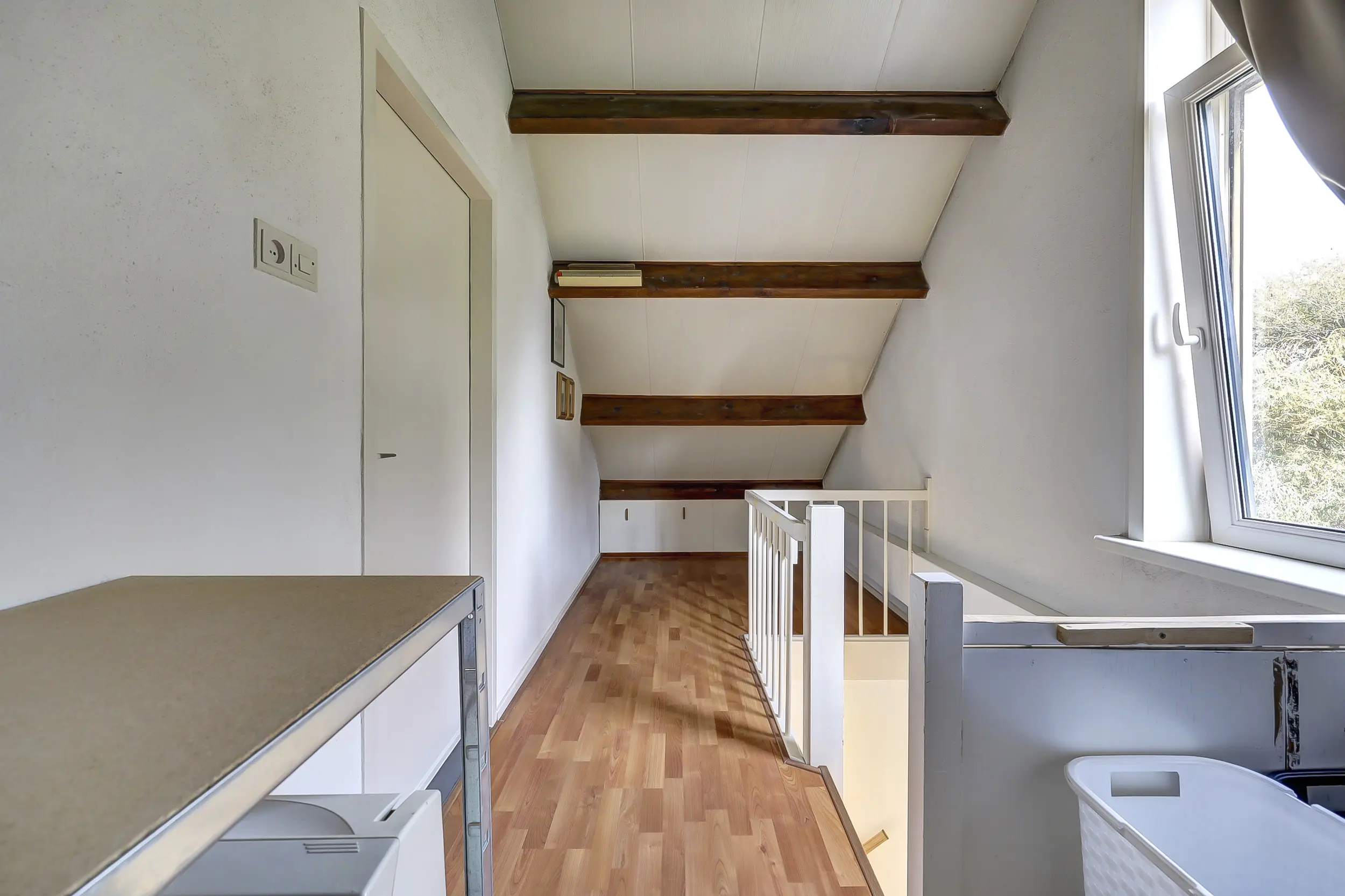 Een vaste trap brengt je naar de 2e verdieping met voorzolder waar de HR-combiketel is en ook de aansluiting voor de wasmachine en -droger en bergruimte. De vierde slaapkamer heeft knieschot bergingen en is voorzien van een dakraam.