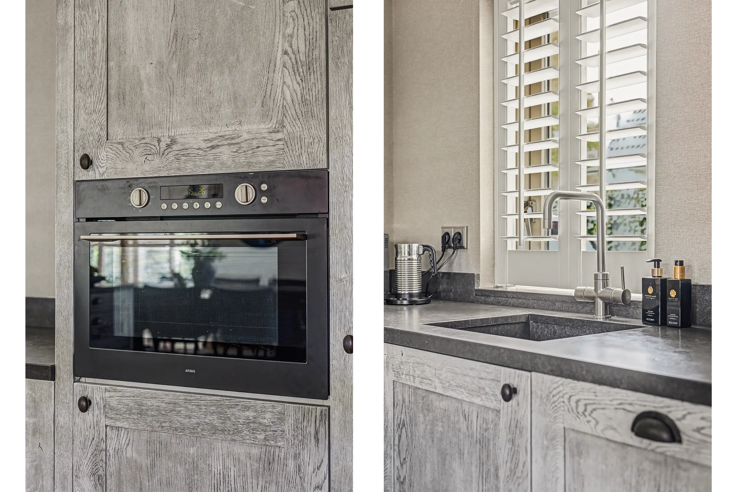 De open keuken ademt kwaliteit en is uitgevoerd met apparatuur als Quooker, vaatwasser, oven, koelkast en vriezer. Natuurlijk mogen we de de Rolls Royce onder de fornuizen niet vergeten: een La Cornue met dubbele oven en 5 branders. Hier waant elke zichzelf respecterende thuiskok zich in het paradijs!
