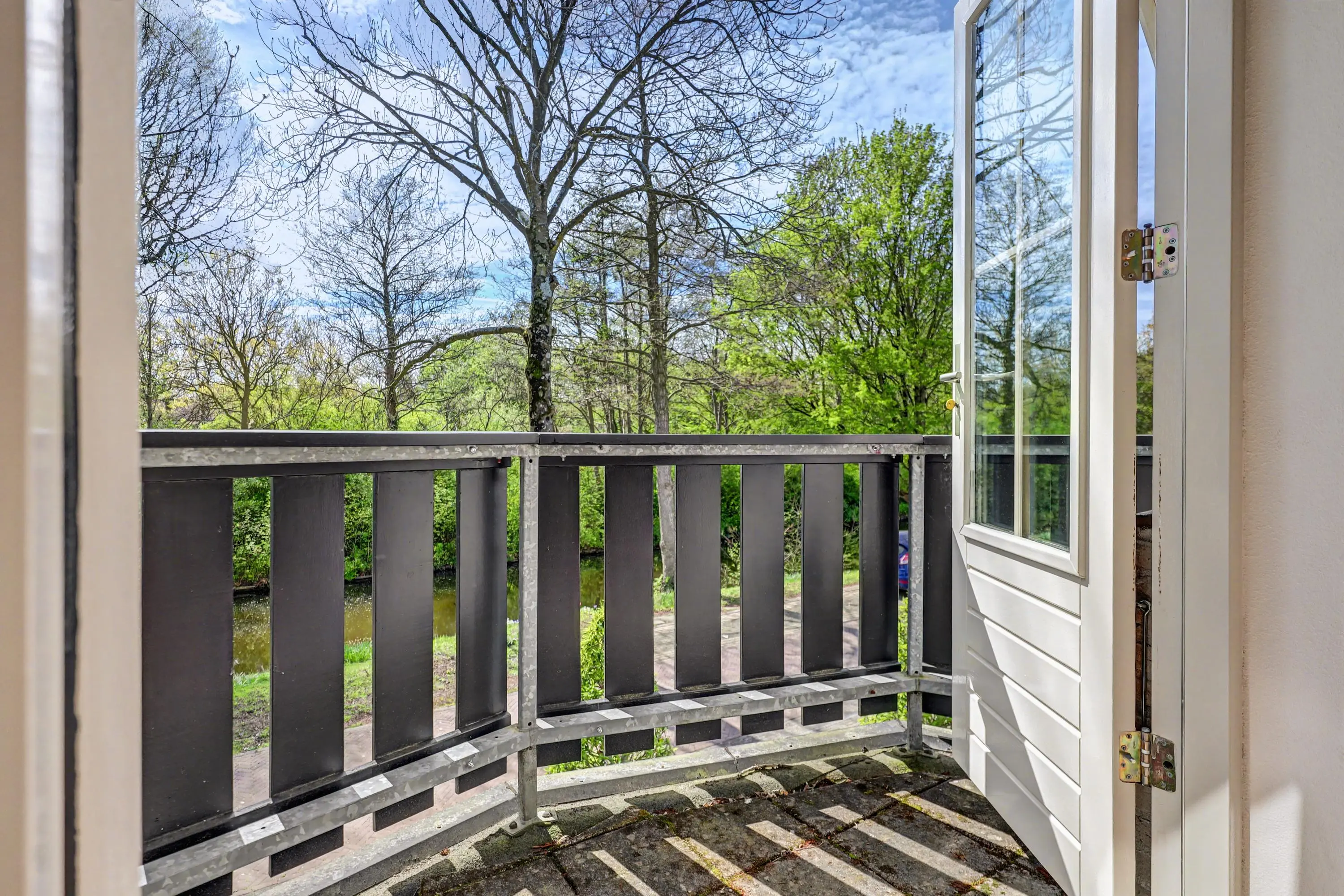 Aan de voorzijde van de woning tref je de grote hoofdslaapkamer met veel kastruimte en toegang tot het balkon.