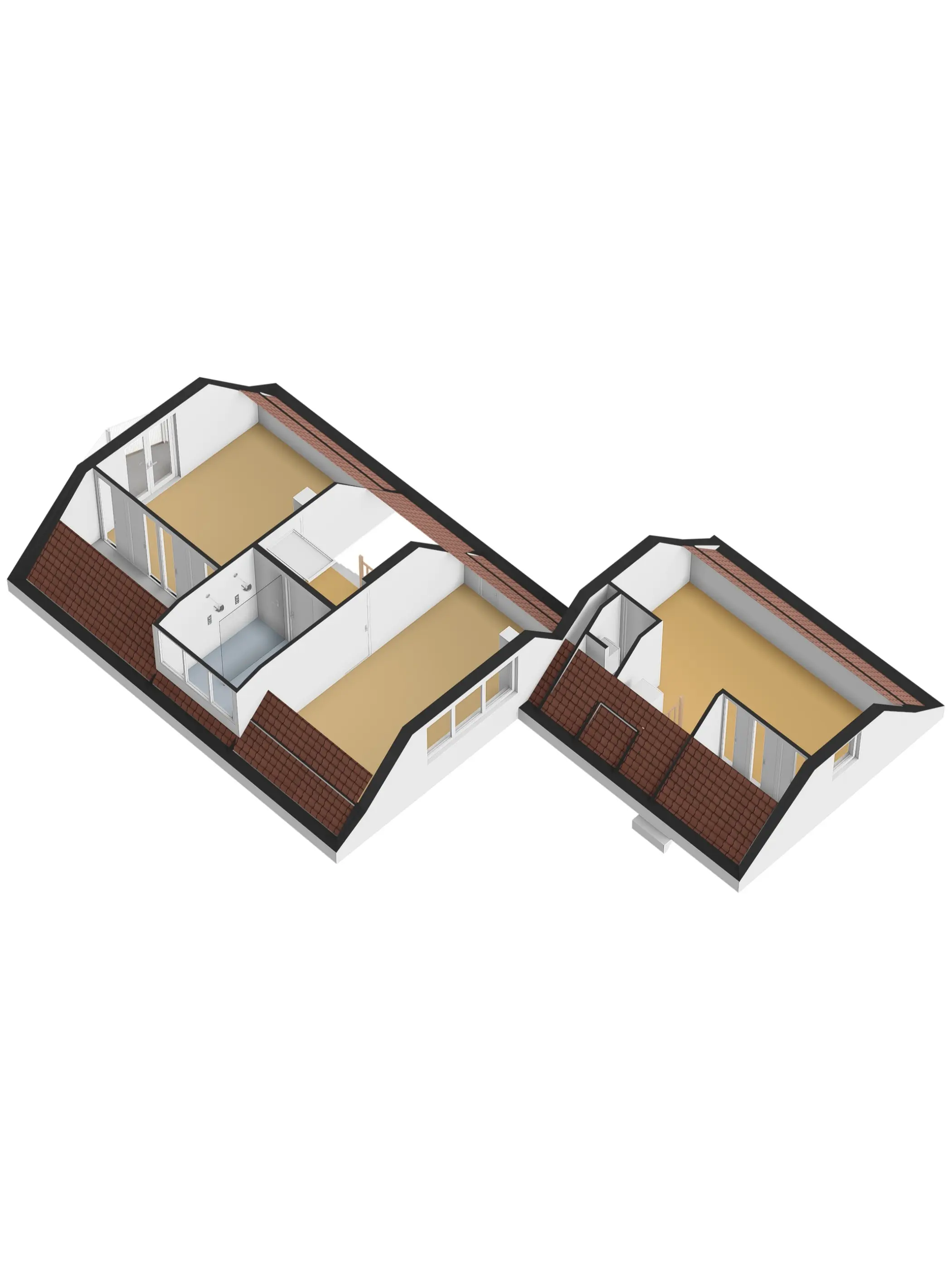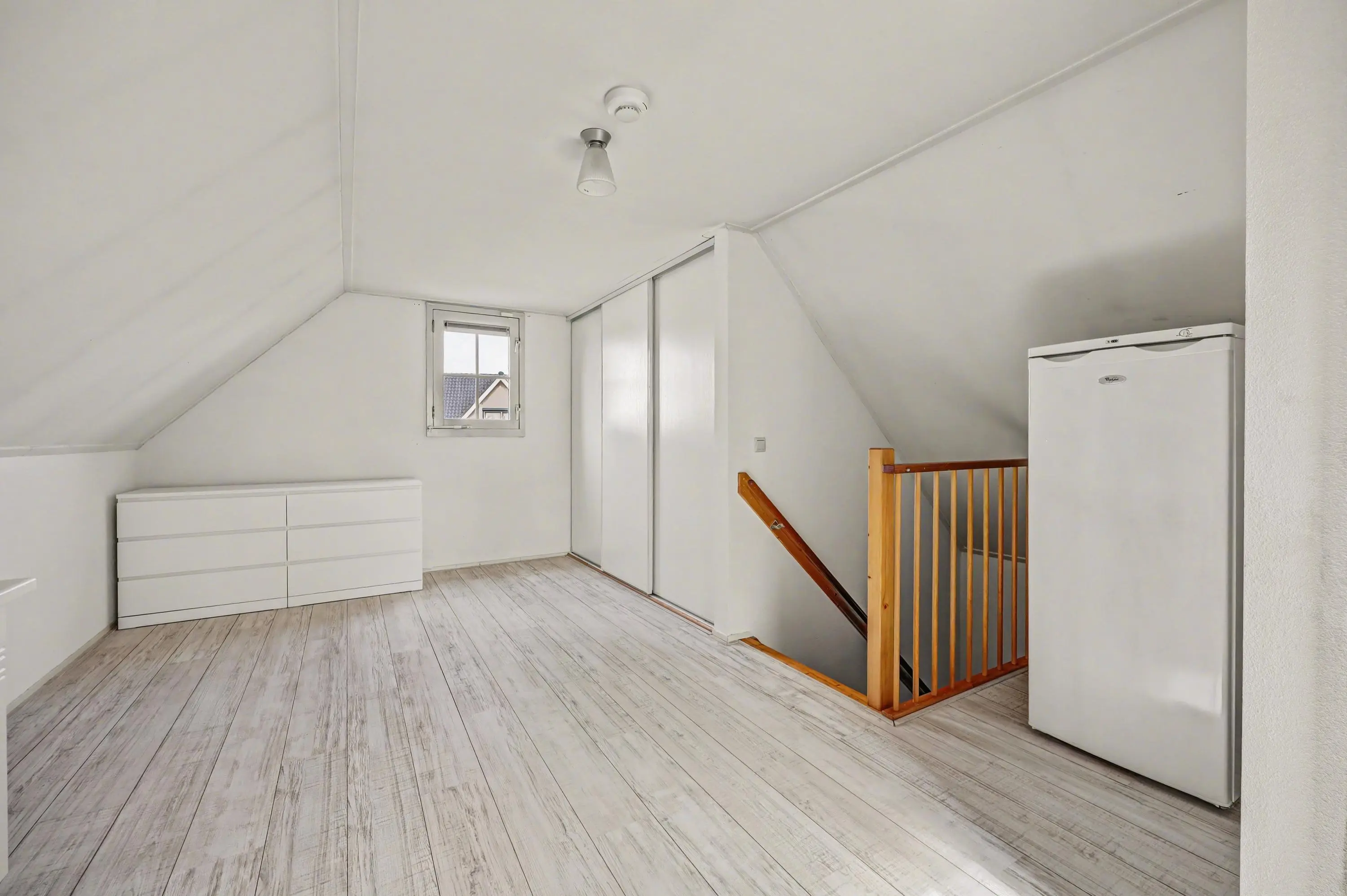 De slaapkamer aan de achterzijde is ook ruim van opzet en kan wanneer gewenst worden aangepast naar 2 slaapkamers.