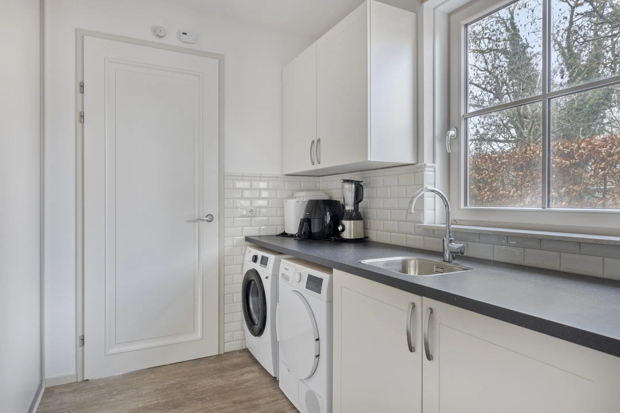 Via de keuken is de bijkeuken bereikbaar, een praktische ruimte voor extra opbergruimte, wasmachine-aansluiting of voorraadkasten. Door de logische indeling van de begane grond kunt u de ruimtes naar wens inrichten, bijvoorbeeld met een grotere eettafel voor gezinsmaaltijden of een speelhoek voor kinderen.