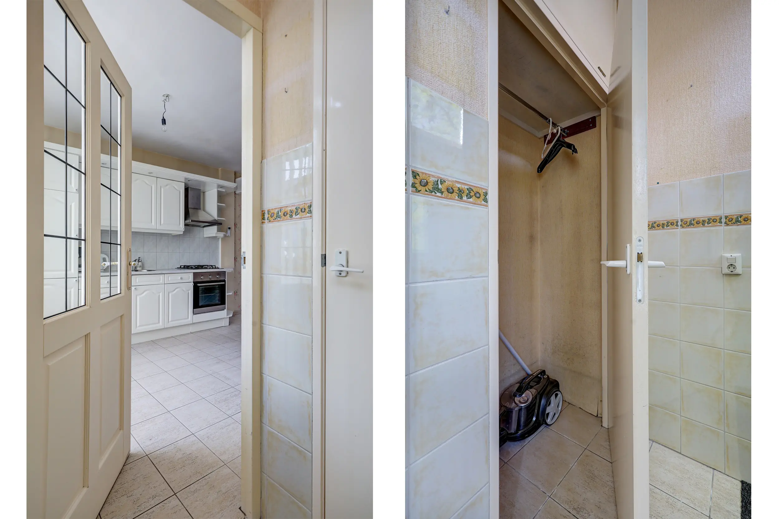 Entree, hal met garderobe en meterkast.