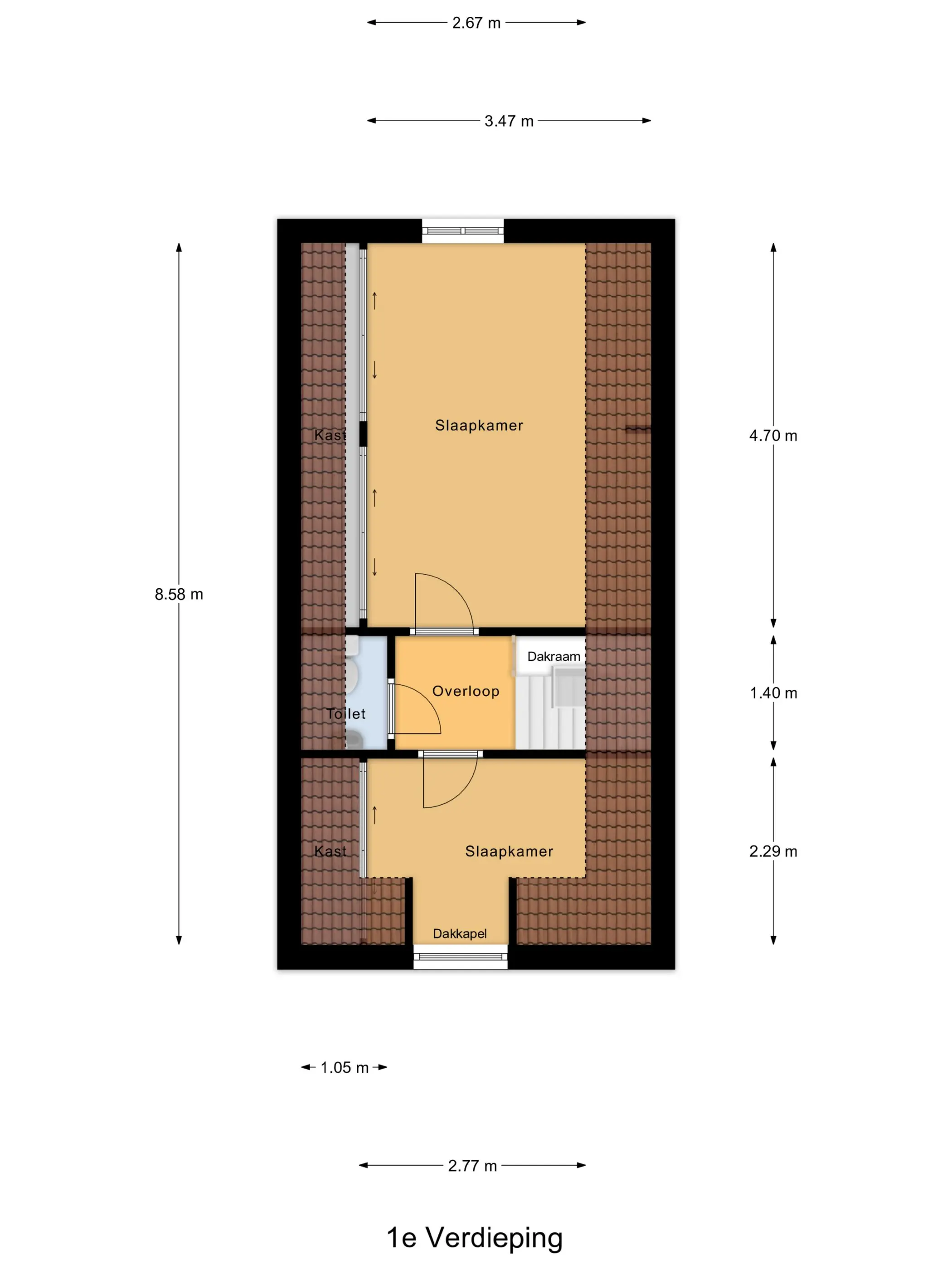 Slaapkamer 1 aan de voorzijde, voorzien van een dakkapel