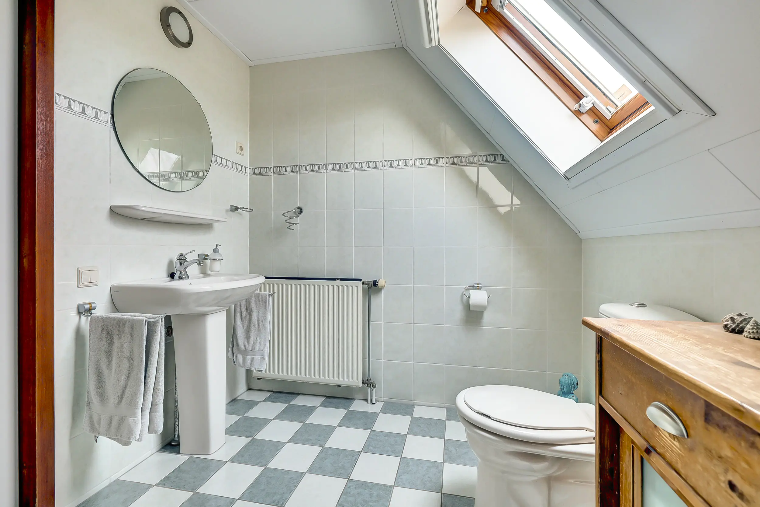 Hier tref je 4 ruime slaapkamers waarvan 1 met vaste kasten. De badkamer is voorzien van douche, toilet en wastafel.