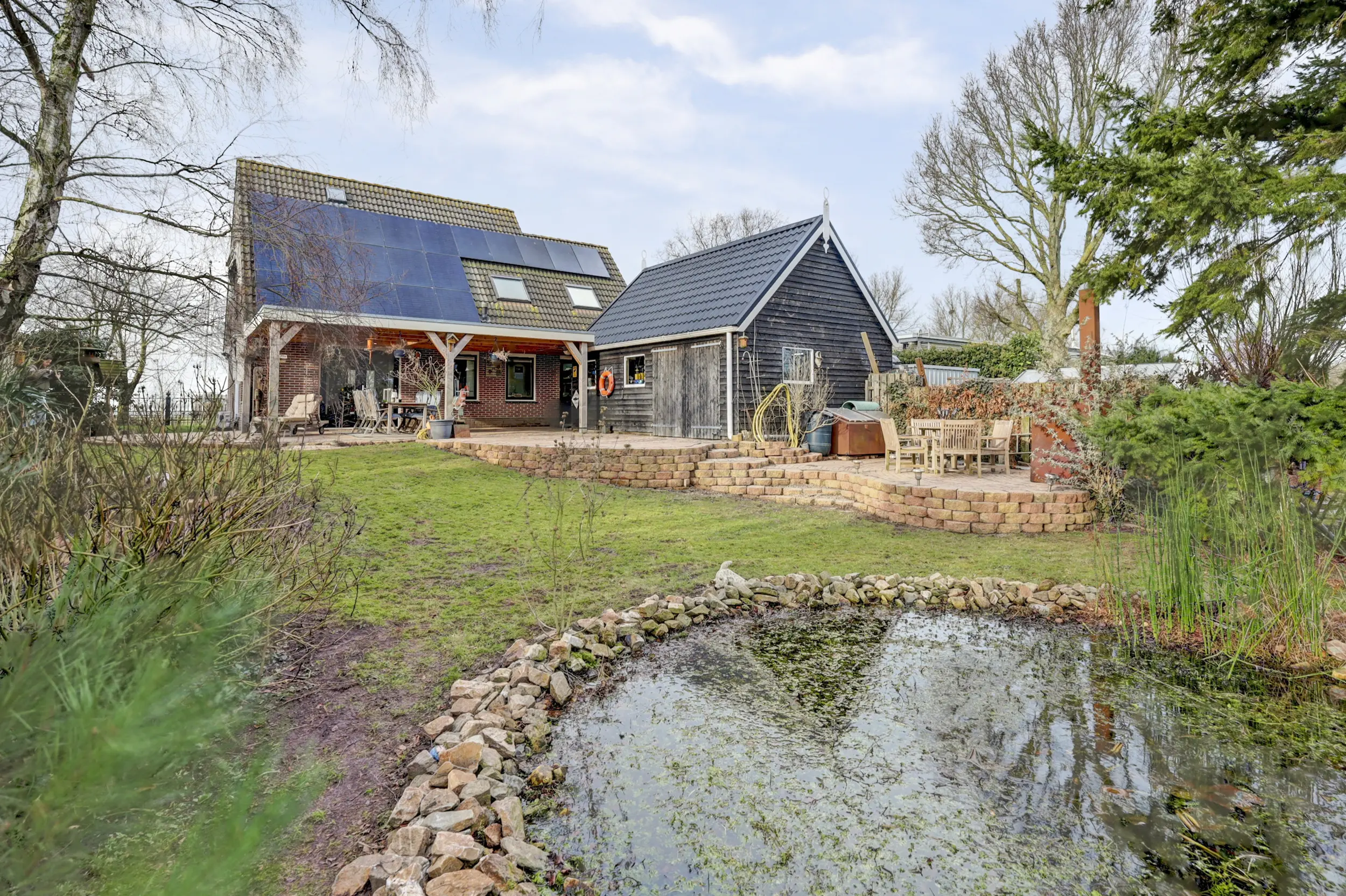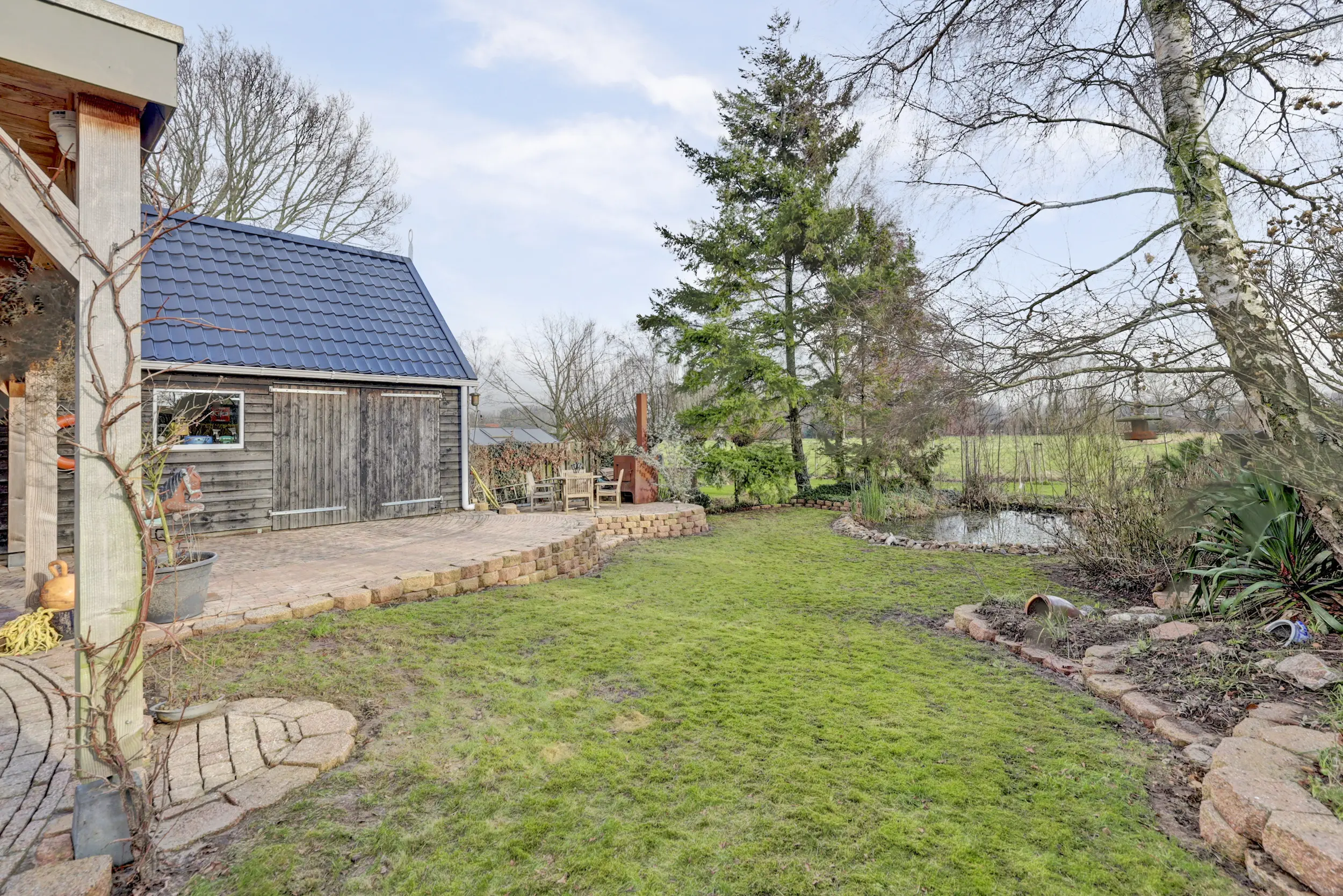 Vrijstaande woning met 2 garages, gelegen op 735 m2 eigen grond + een perceel eigen grond van 2.720 m2 recht tegenover de woning!