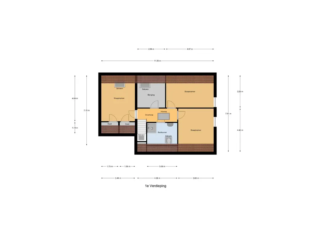Hier tref je 4 ruime slaapkamers waarvan 1 met vaste kasten. De badkamer is voorzien van douche, toilet en wastafel.