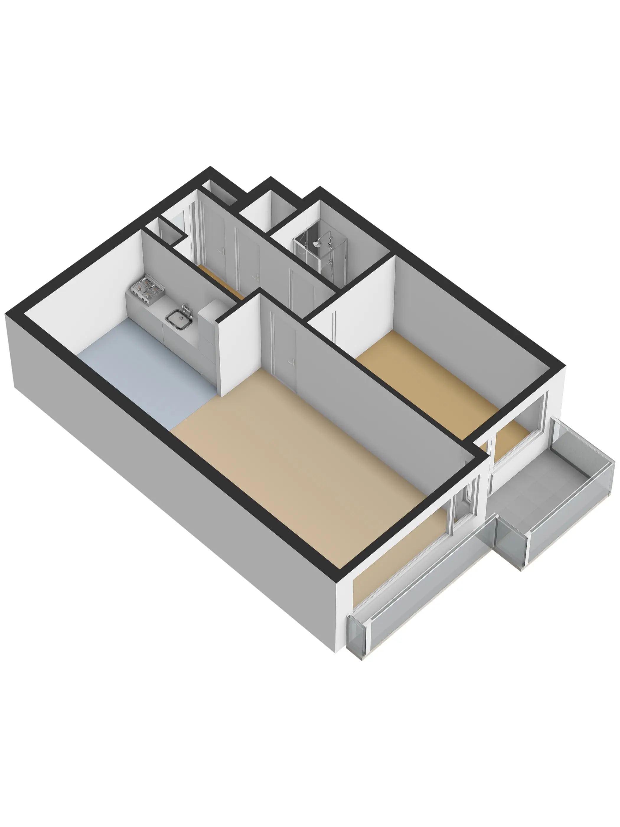 Aan de achterzijde van de woning bevindt zich de slaapkamer, die direct toegang biedt tot het balkon.