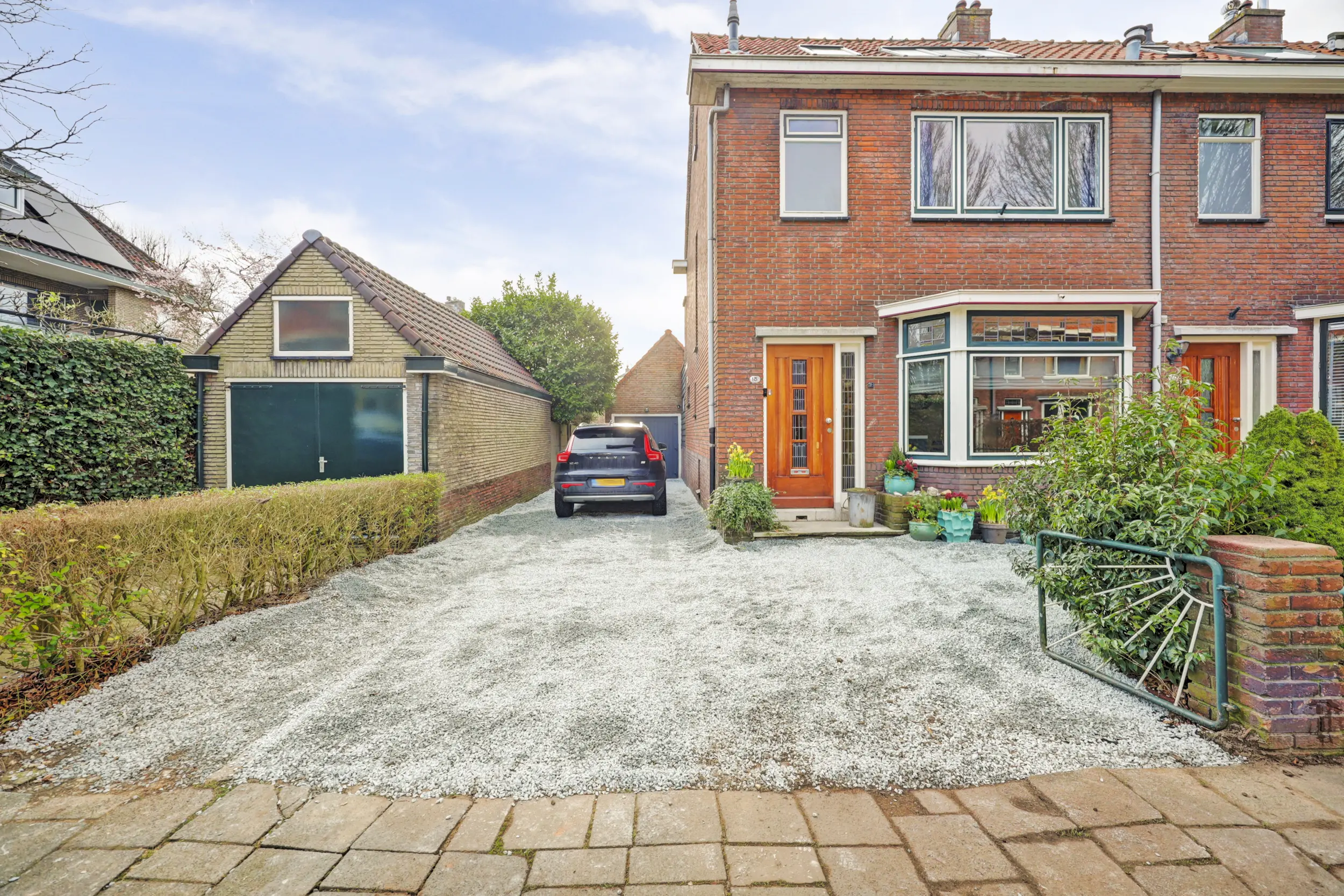 De woning beschikt over een voortuin en een zeer ruime, op het zuidoosten gelegen achtertuin van circa 120 m². Daarnaast is er een garage én een lang en breed pad vanaf de openbare weg, waardoor parkeren op eigen terrein voor twee tot zelfs drie auto’s mogelijk is. Een zeldzaam pluspunt in deze wijk.