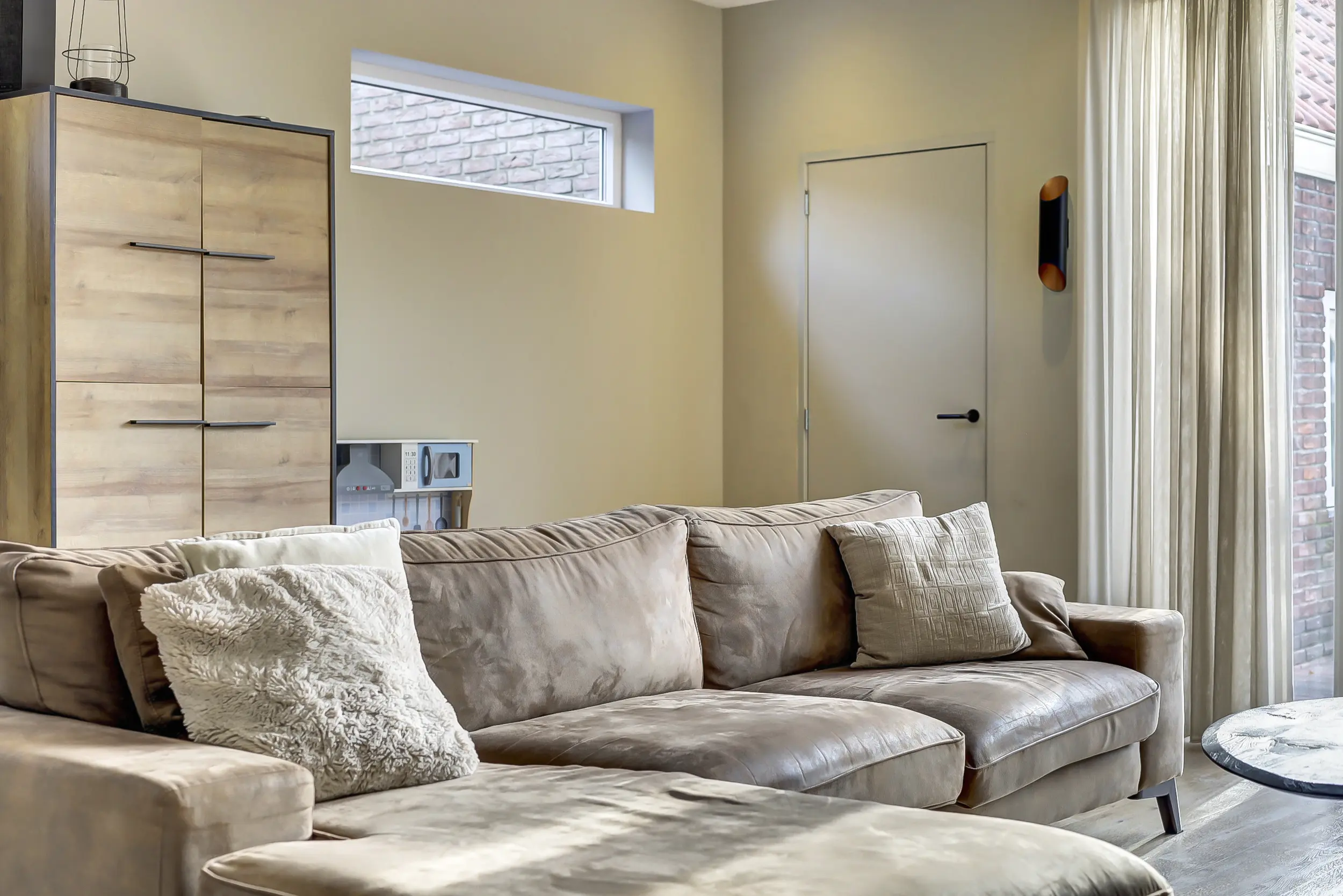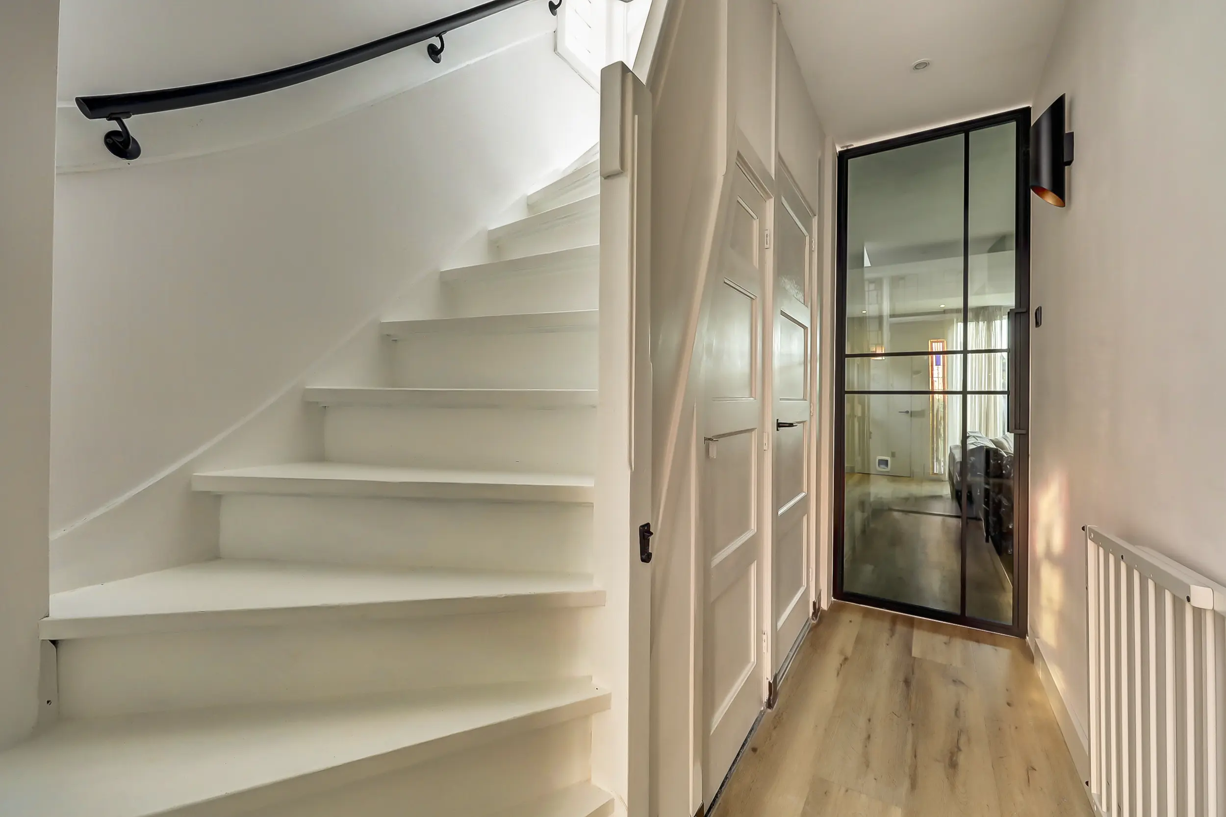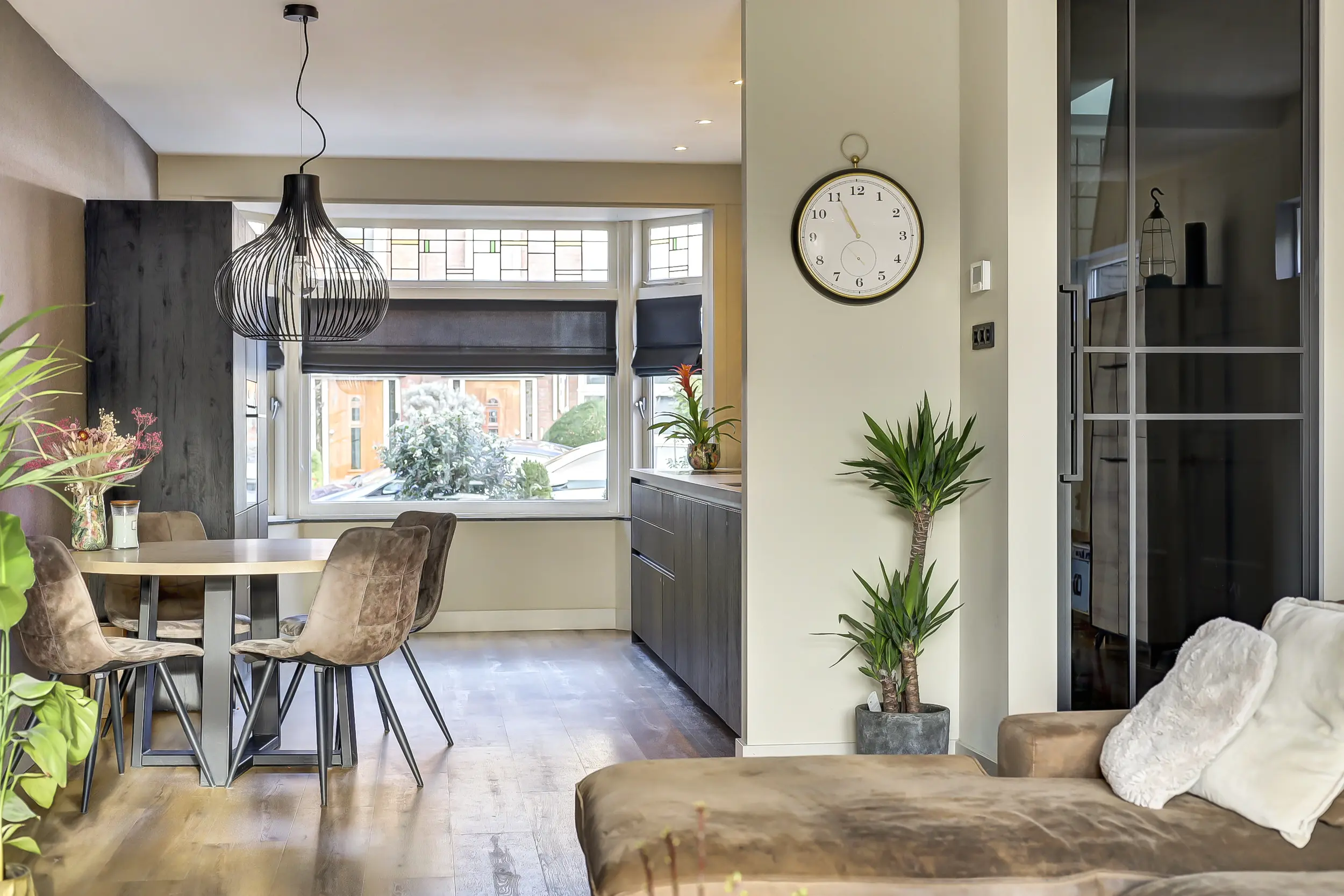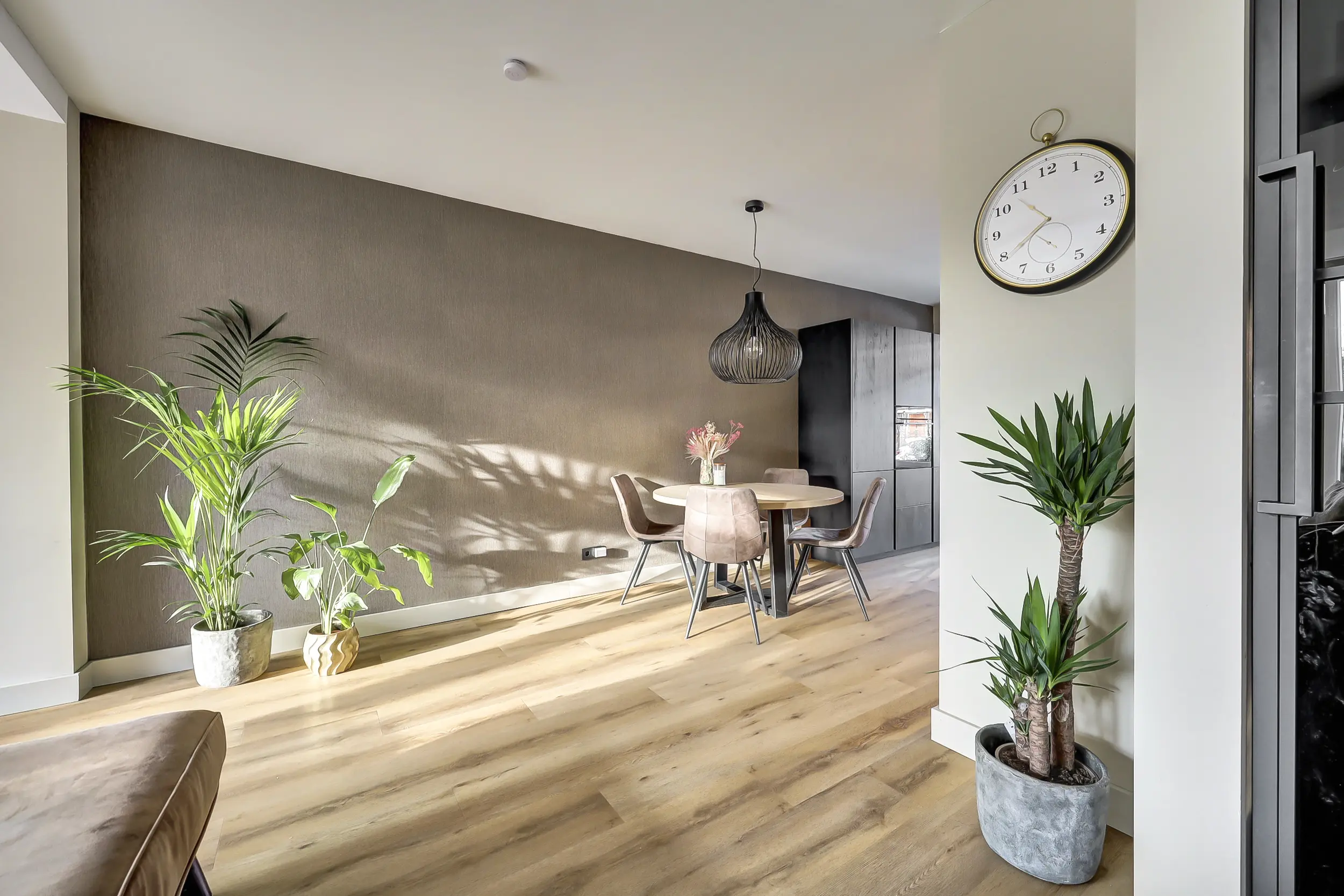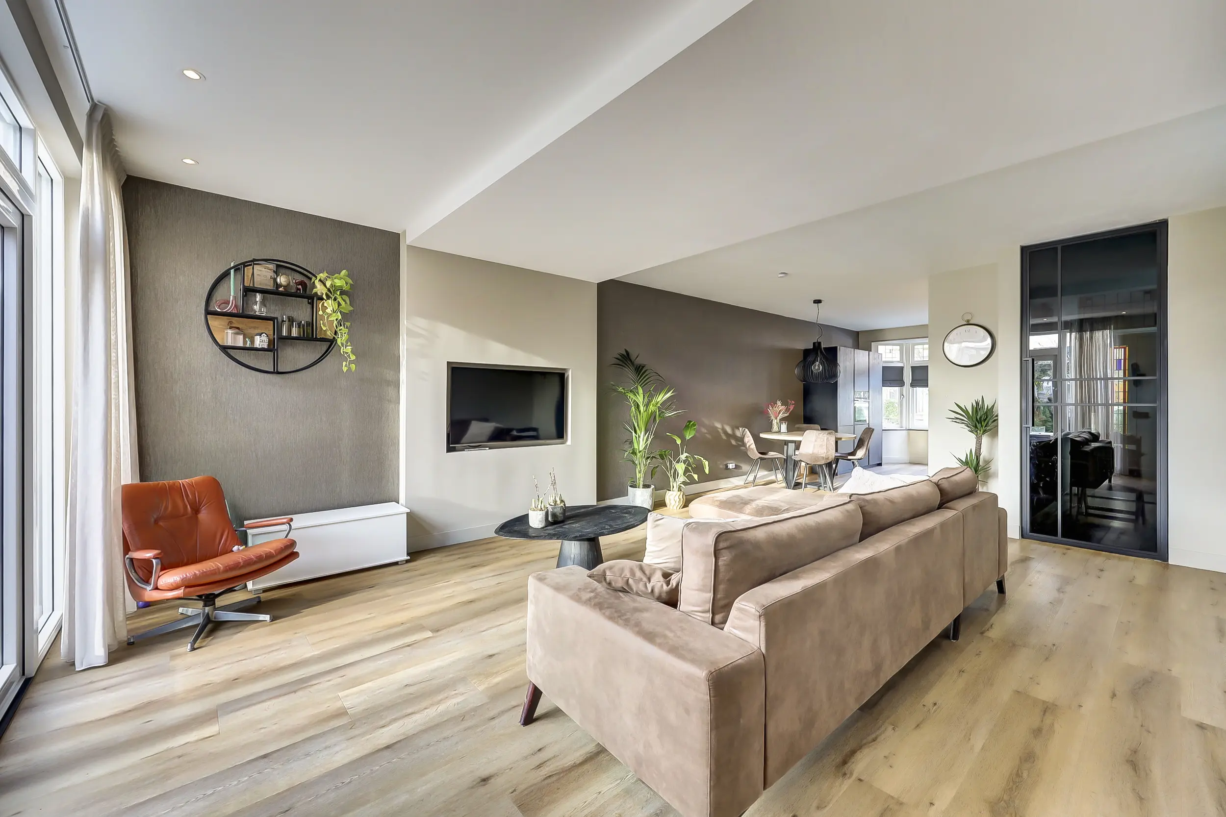 De woonkamer en keuken zijn nagenoeg volledig voorzien van vloerverwarming en staan via openslaande deuren in direct contact met de zonnige achtertuin. Hierdoor vloeien binnen en buiten moeiteloos in elkaar over en ontstaat een heerlijke leefruimte, ideaal voor zowel dagelijks wonen als het ontvangen van gasten. Door de uitbouw van de woonkamer is de garage nu intern bereikbaar.