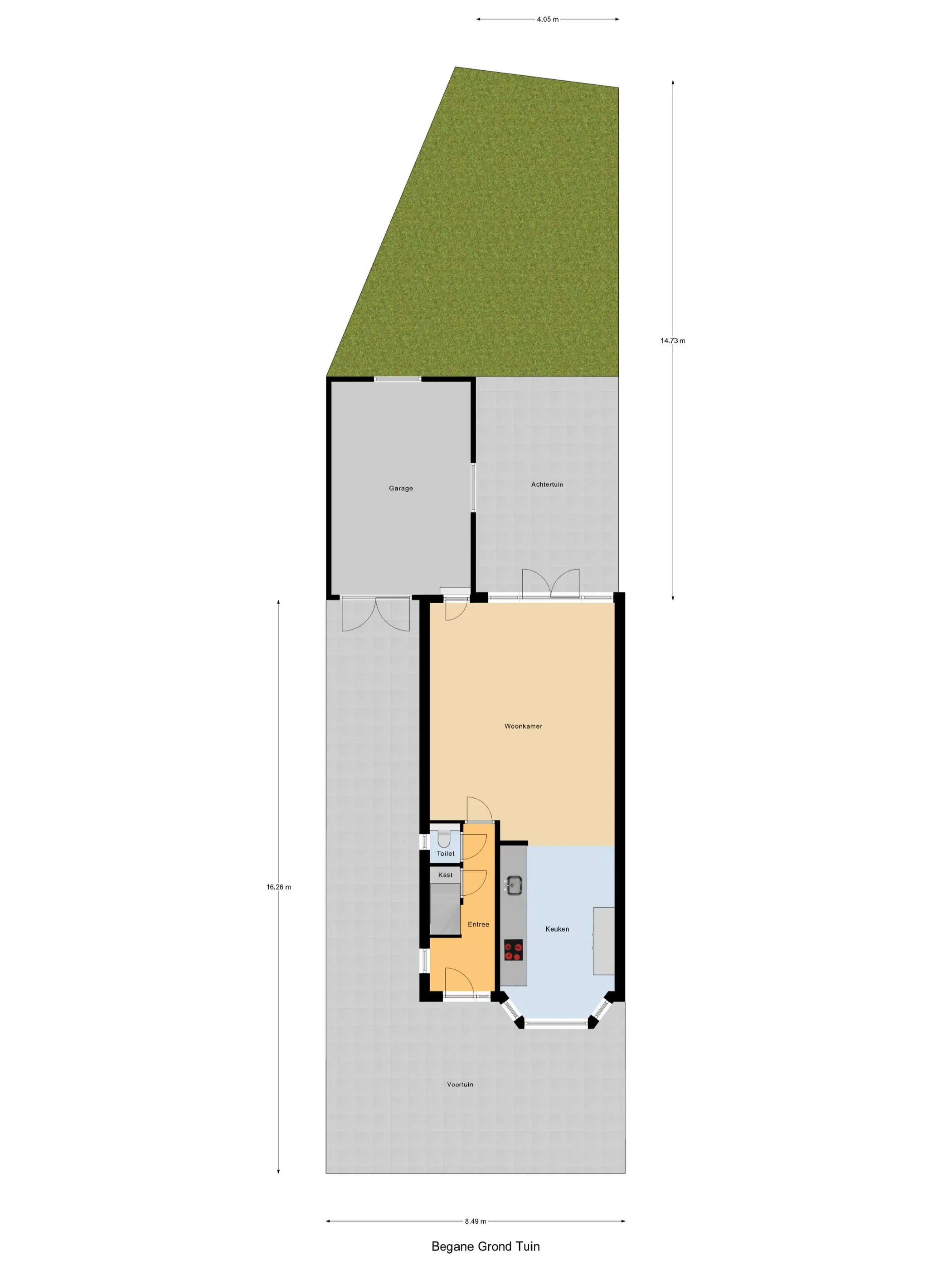 Voor-/zij- en achtertuin;